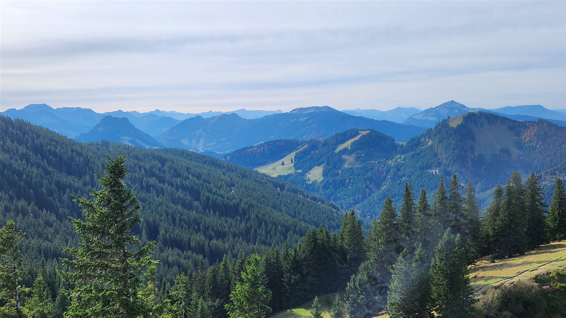 Der weitere Weg zum Gipfel erinnerte mich stark an das Hörnle bei Bad Kohlgrub. Vom Gipfel reicht der Blick insbesondere hinunter zum Grüntensee. Die Aussichtsplattform an der Ostseite des Gipfelaufbaus hätte man sich meines Erachtens sparen können.
