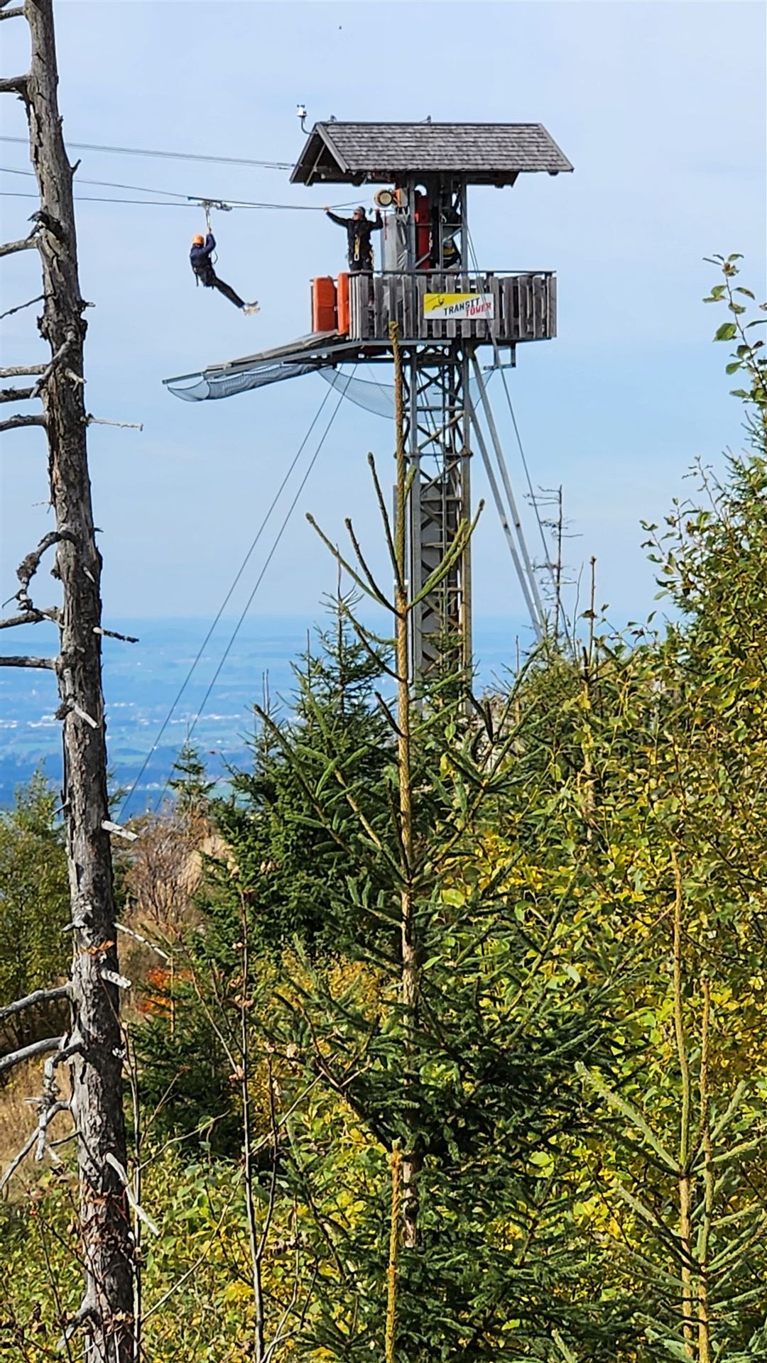 Unterwegs wird zwei Mal eine Zipline gekreuzt, genaugenommen der AlpspitzKICK. Möchte man damit zur Mittelstation schweben, müsste man allerdings zur Einkleidung an die Mittelstation. Dort kann man dann auch den Rucksack lagern. Das erfuhr ich aber erst an der Bergstation. Es hätte mich durchaus gereizt, einmal mit der Zipline hinunter zu schweben, 45 Euro ohne Benutzung der Alpspitz-Bahn sind aber auch eine Hausnummer. Mit Bahnbenutzung kostet es 51 Euro.