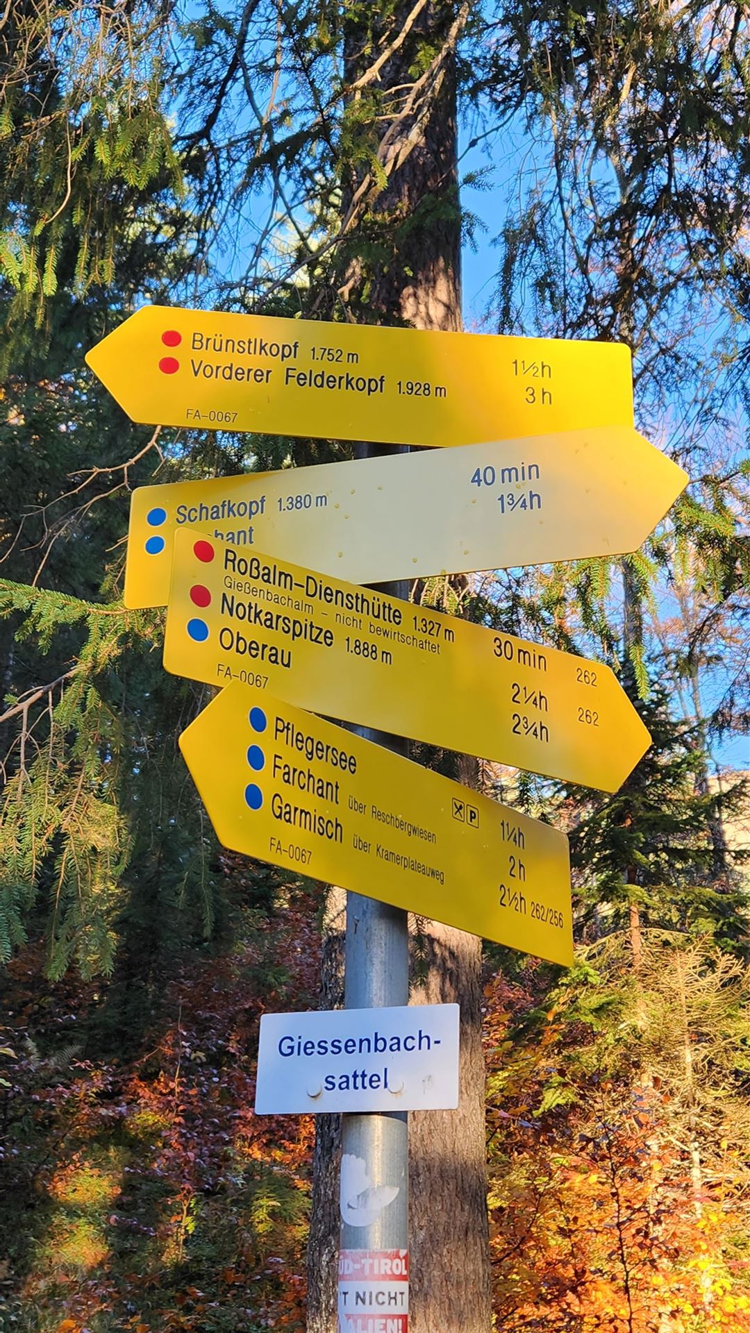Beschilderung am Giessenbachsattel -