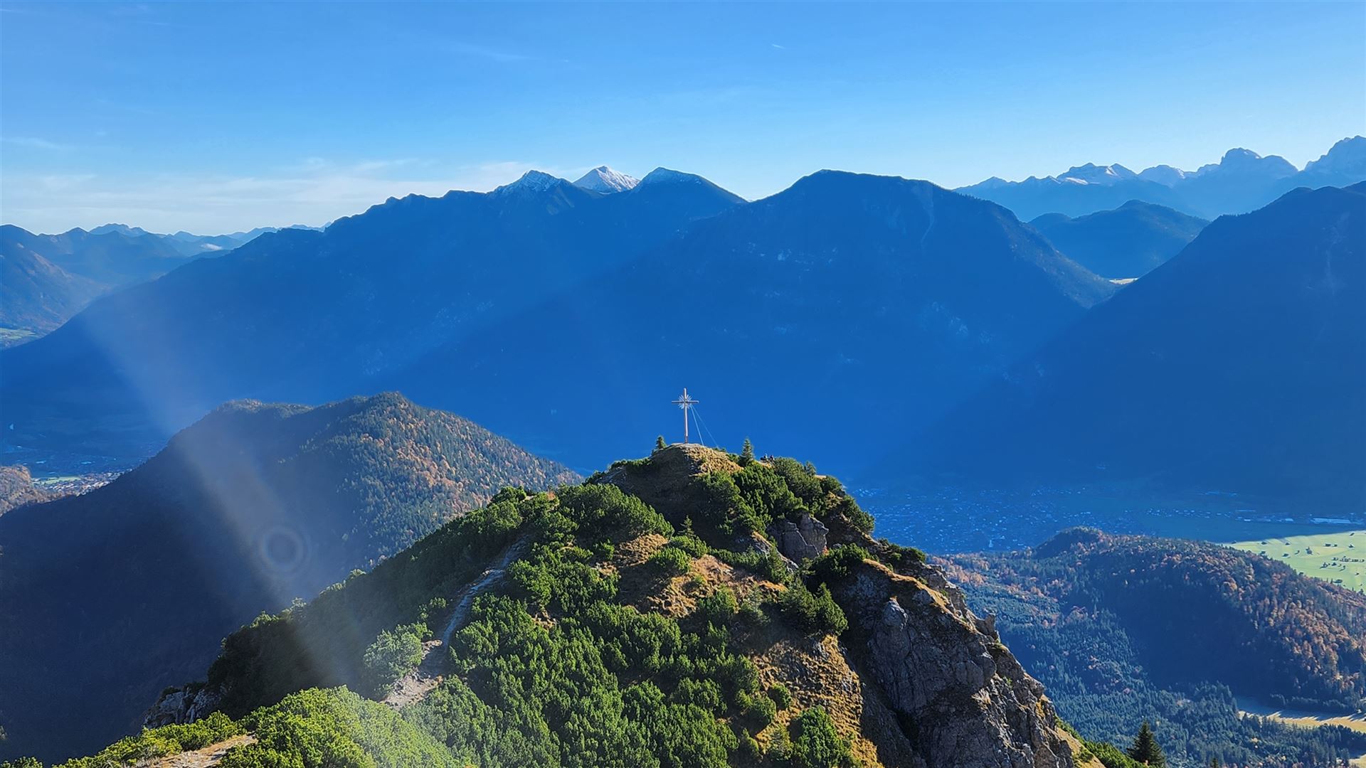 Das Brünstlkreuz, im Hintergrund der Vordere Felderkopf -