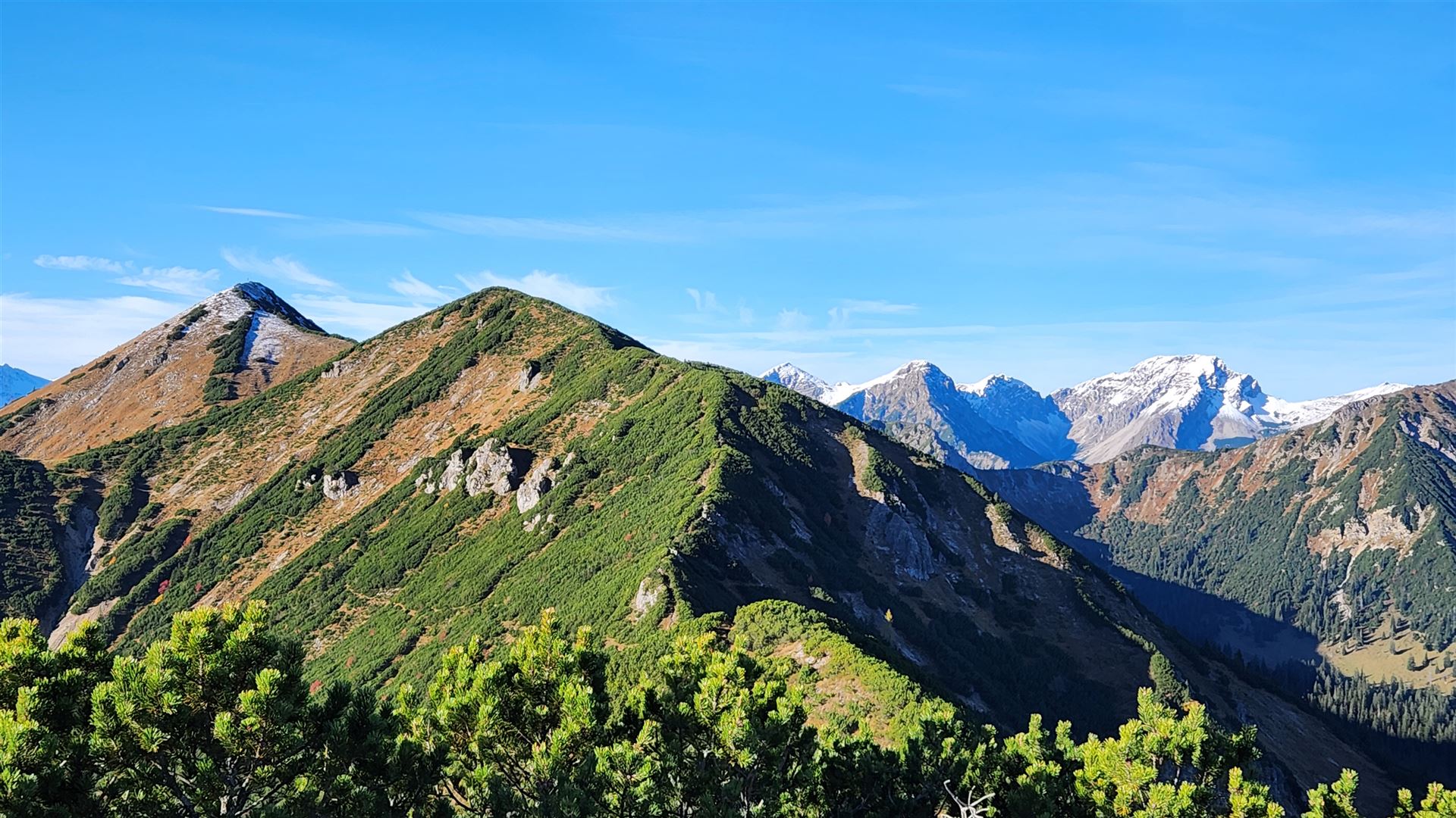 Im Westen der Vordere Felderkopf, rechts hinten die Kreuzspitze -