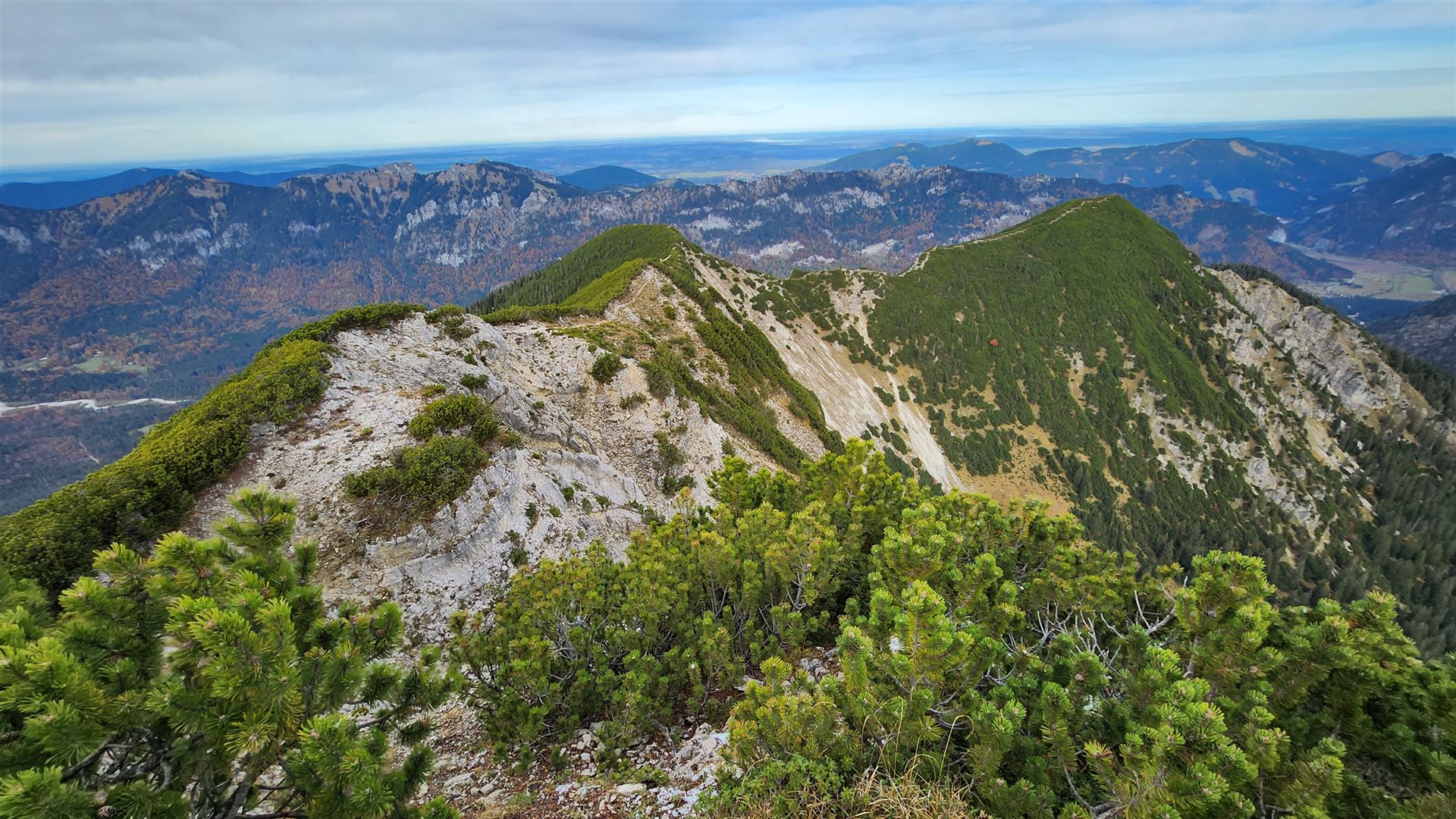 Blick vom Brünstlkopf auf den Kramer, im Hintergrund die Alpspitze -