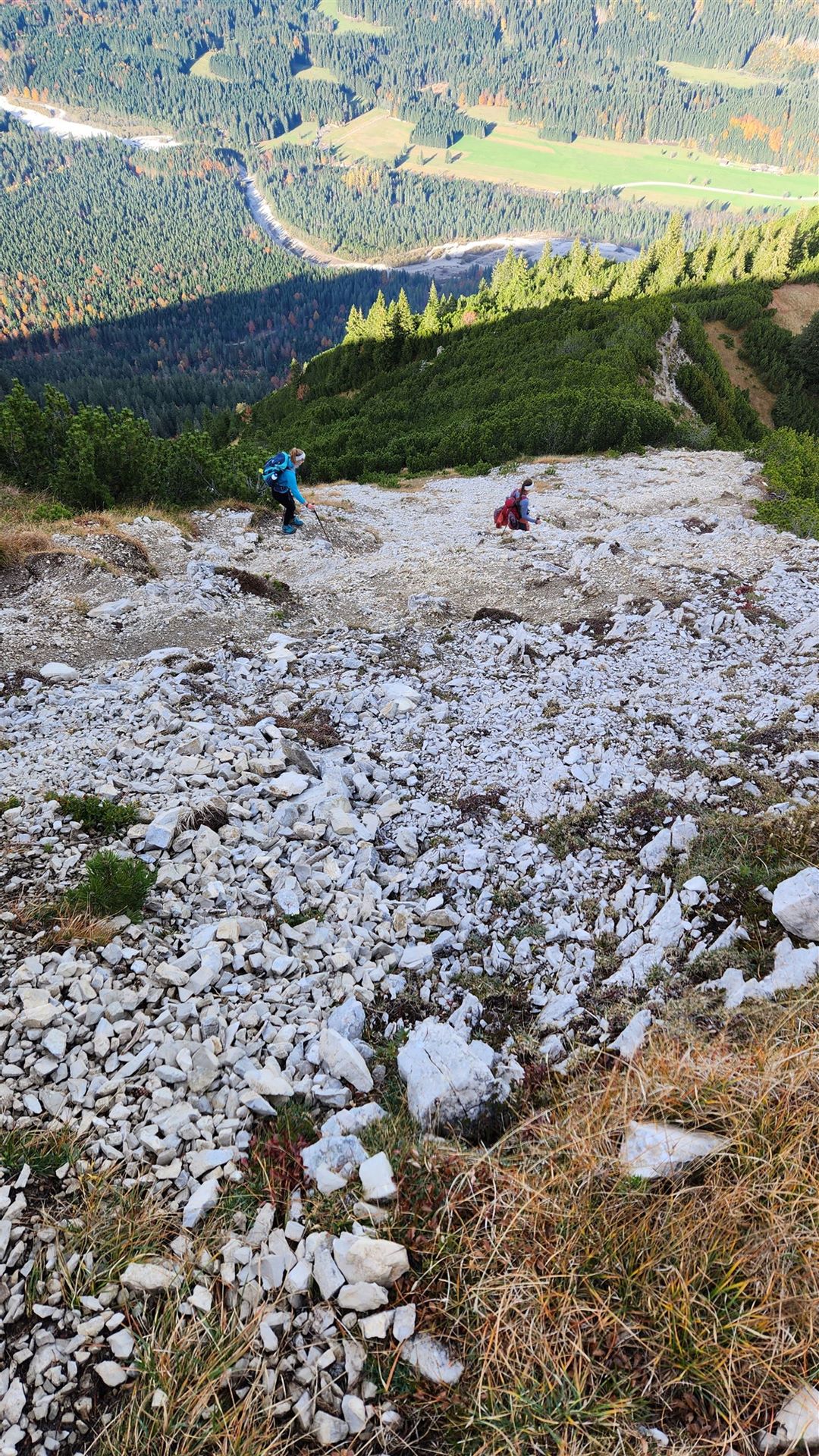 Du gehst vom Kienjoch zurück zur Abzweigung und wählst den Normalweg hinunter nach Graswang.
