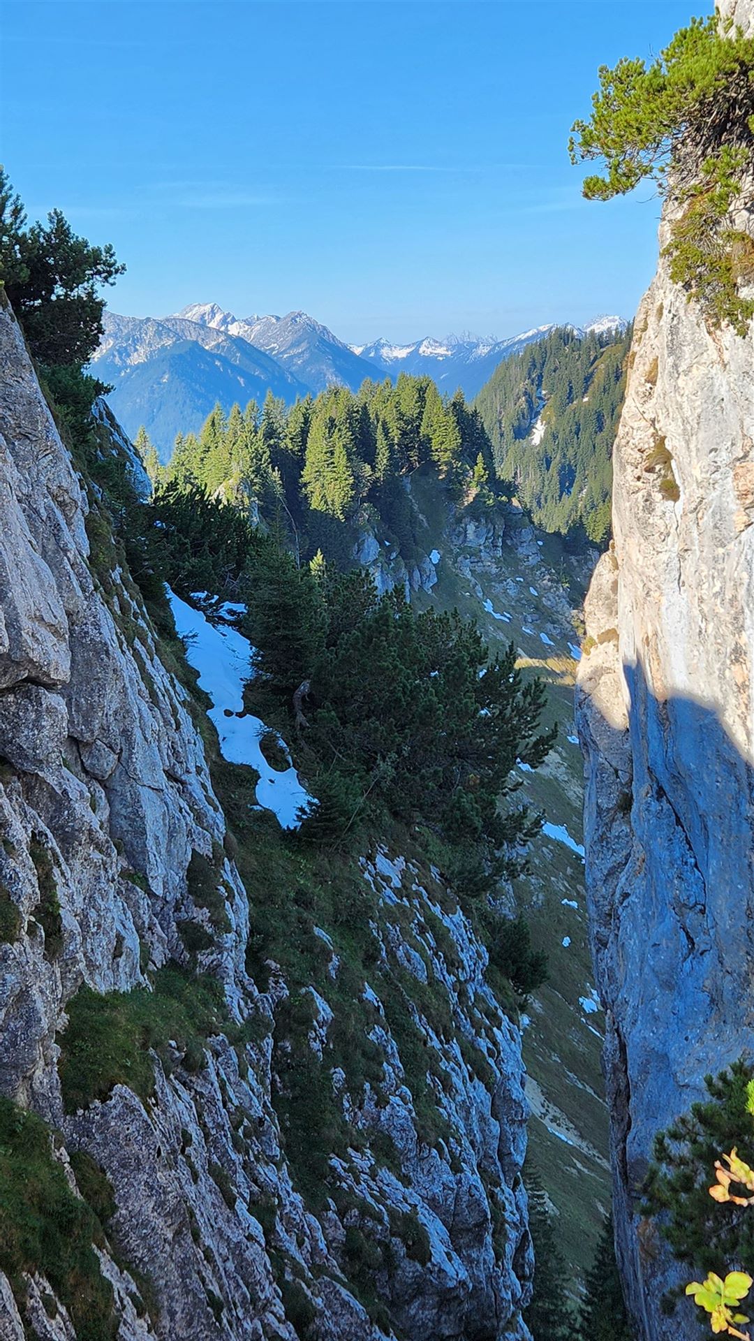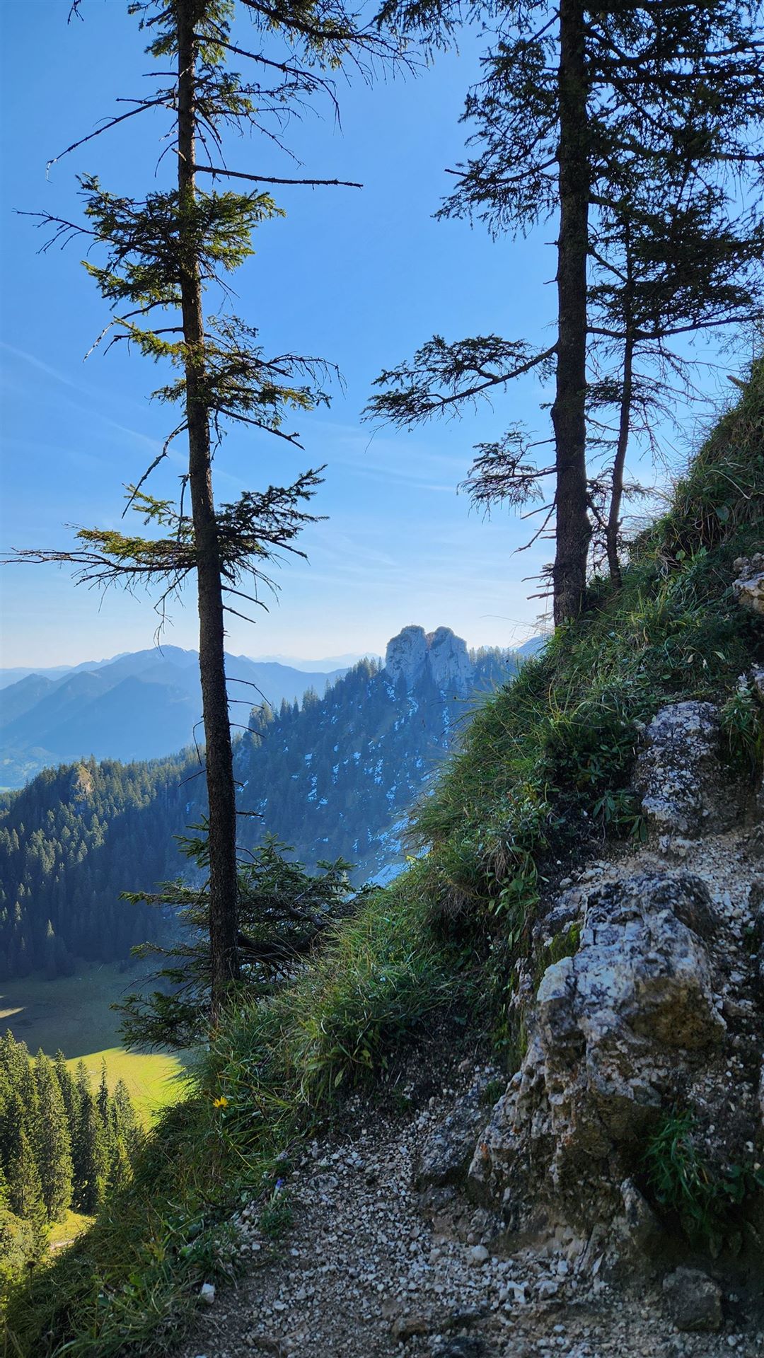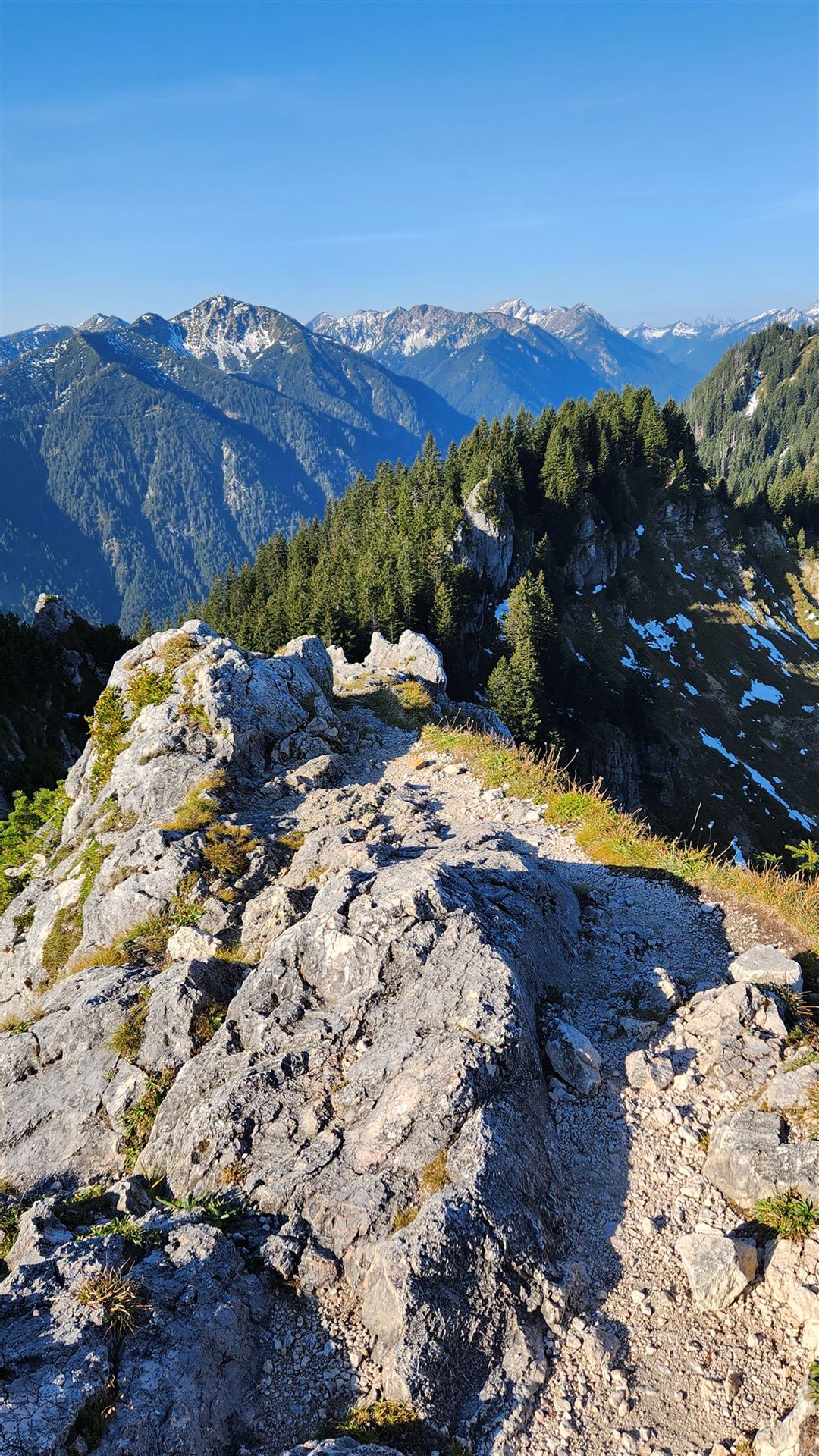 Vom Gipfel des Ettaler Manndl auf 1633 m reicht der Rundblick über das Alpenvorland, das Estergebirge, das Karwendel, das Wettersteingebirge und die Ammergauer Alpen, im Osten seien vor allem der Heimgarten, der Schafreuter, der Guffert und ganz nah der Osterfeuerkopf erwähnt. Wie so oft zeigte mir die Gipfel-App auch die 90 Kilometer entfernte Elmauer Halt (2344 m) im Kaisergebirge an. Da muss ich dann irgendwann mal hin.