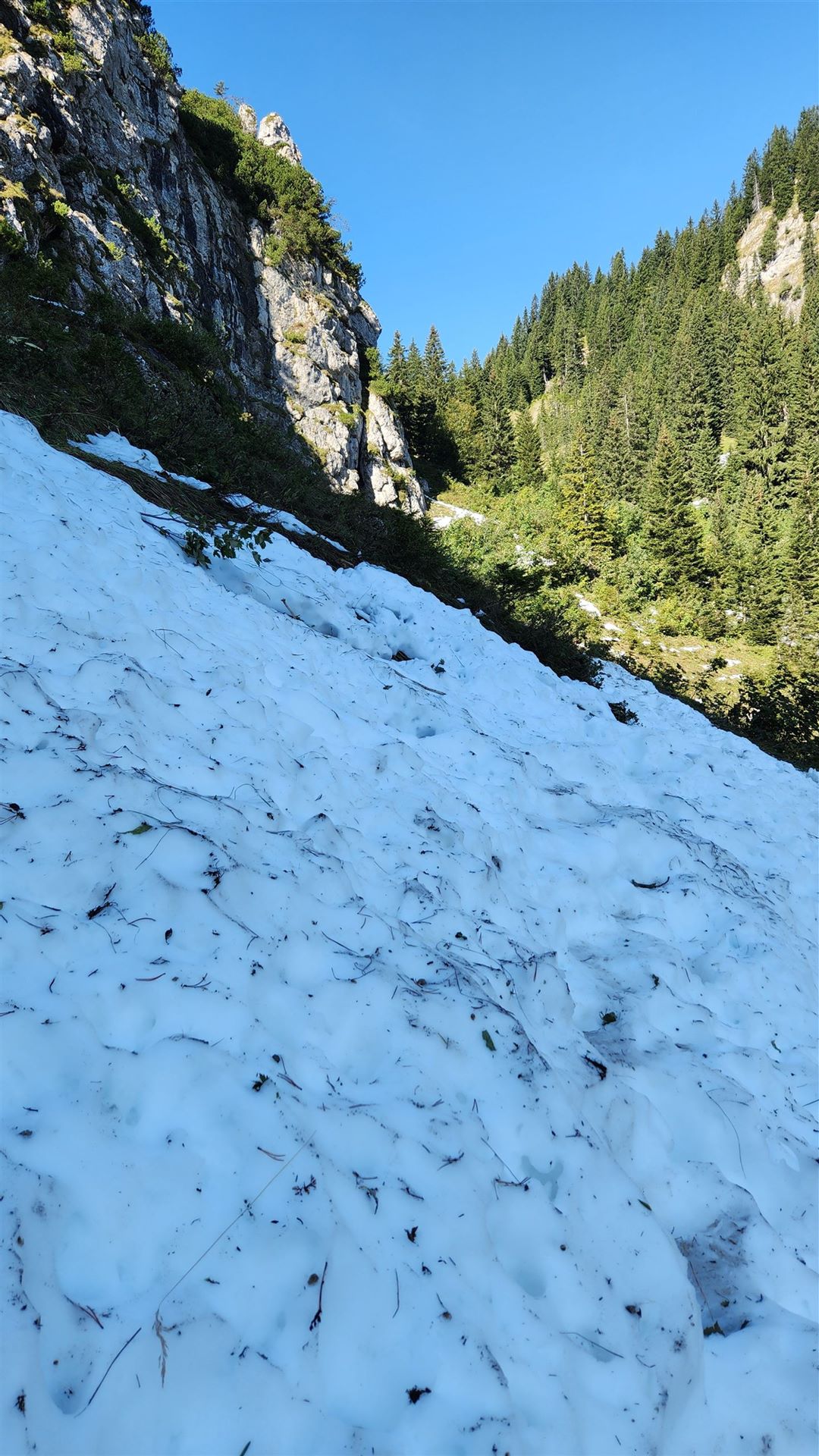Nach dem Klettersteig folgte ich dem Weg weiter, der rund um das Ettaler Manndl führt. Der Soilasee führte zurzeit kein Wasser. Danach ging der Weg wieder bergauf, auch über einige Restschneefelder, denn dieses Jahr hatte es bereits Mitte September einen Wintereinbruch.