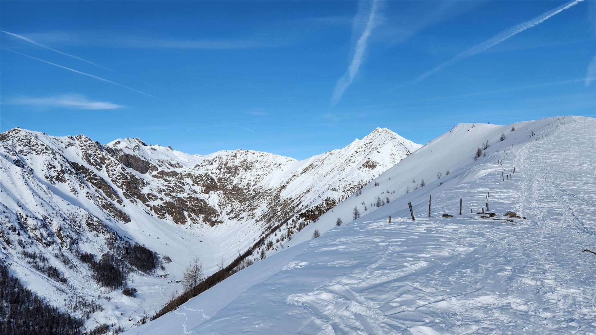 Auf der Suche nach einer schönen Winterwanderung sind wir einfach nach Mühlbach (Rio di Pusteria) am Beginn des Pustertals bei Brixen gefahren, ohne großen Plan. In Mühlbach haben wir die Abzweigung nach Meransen/Vals bzw. Skigebiet Gitschberg/Jochtal genommen. Nach einer 7 km langen Bergfahrt fragten wir in Meransen nach einer schönen Winterwanderung und wurden auf den Parkplatz Altfasstal hingewiesen. Und das war ein Volltreffer, wie sich bald darauf herausstellte.