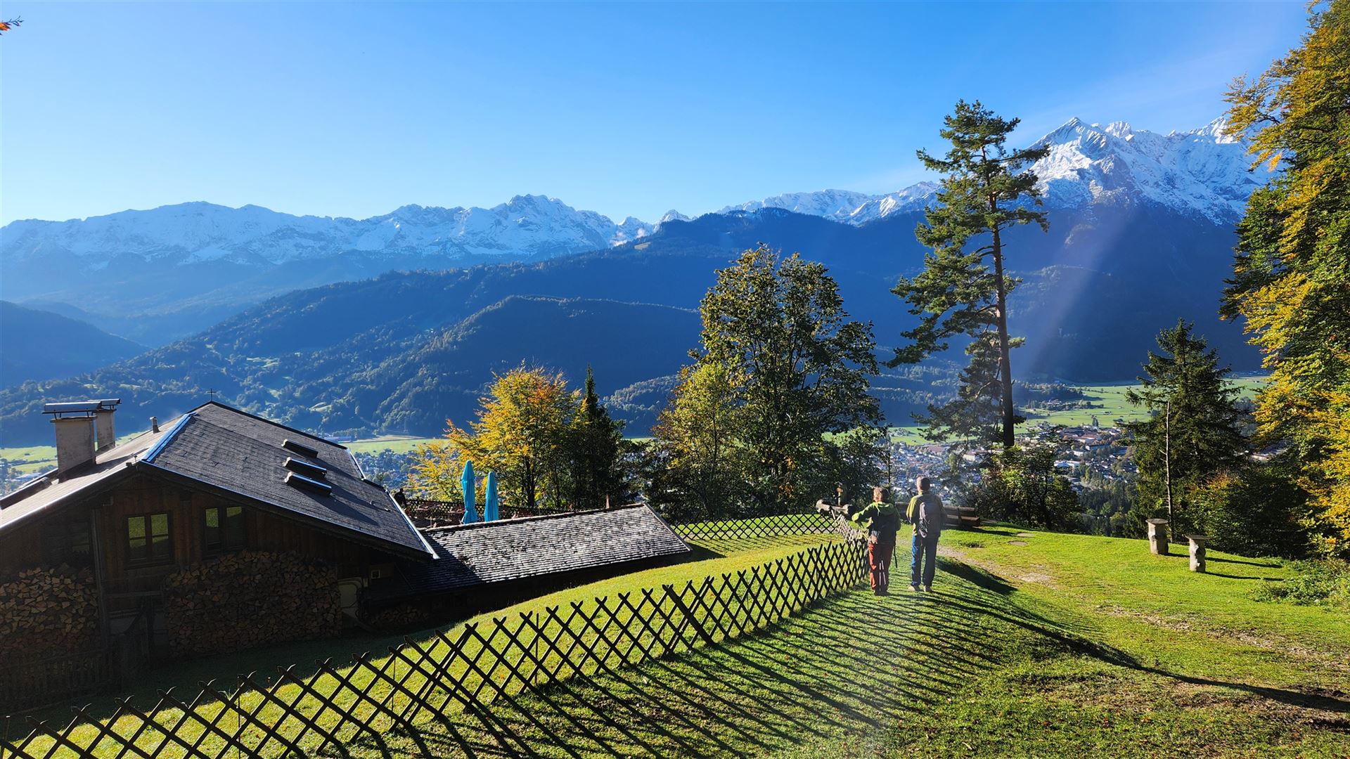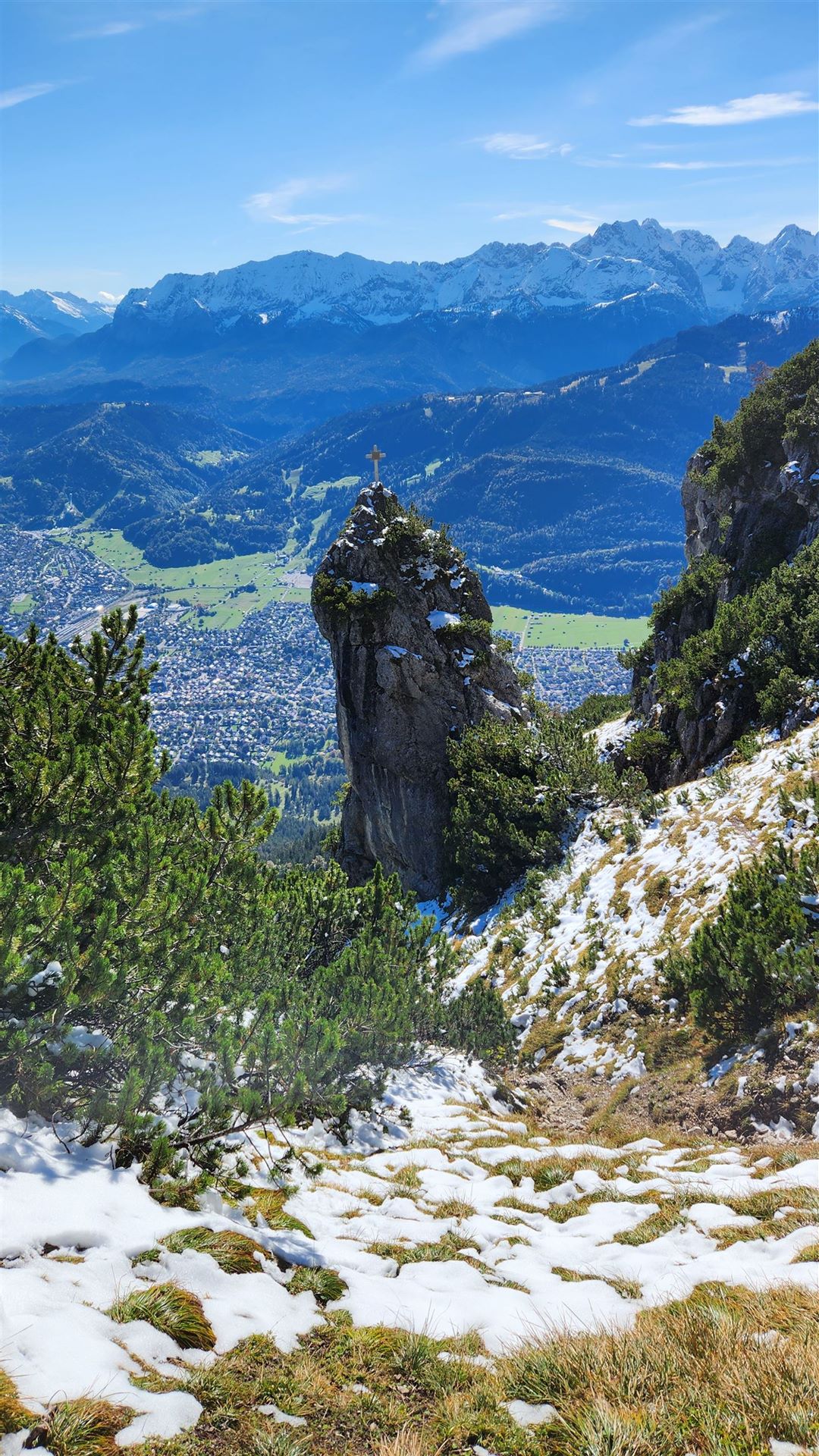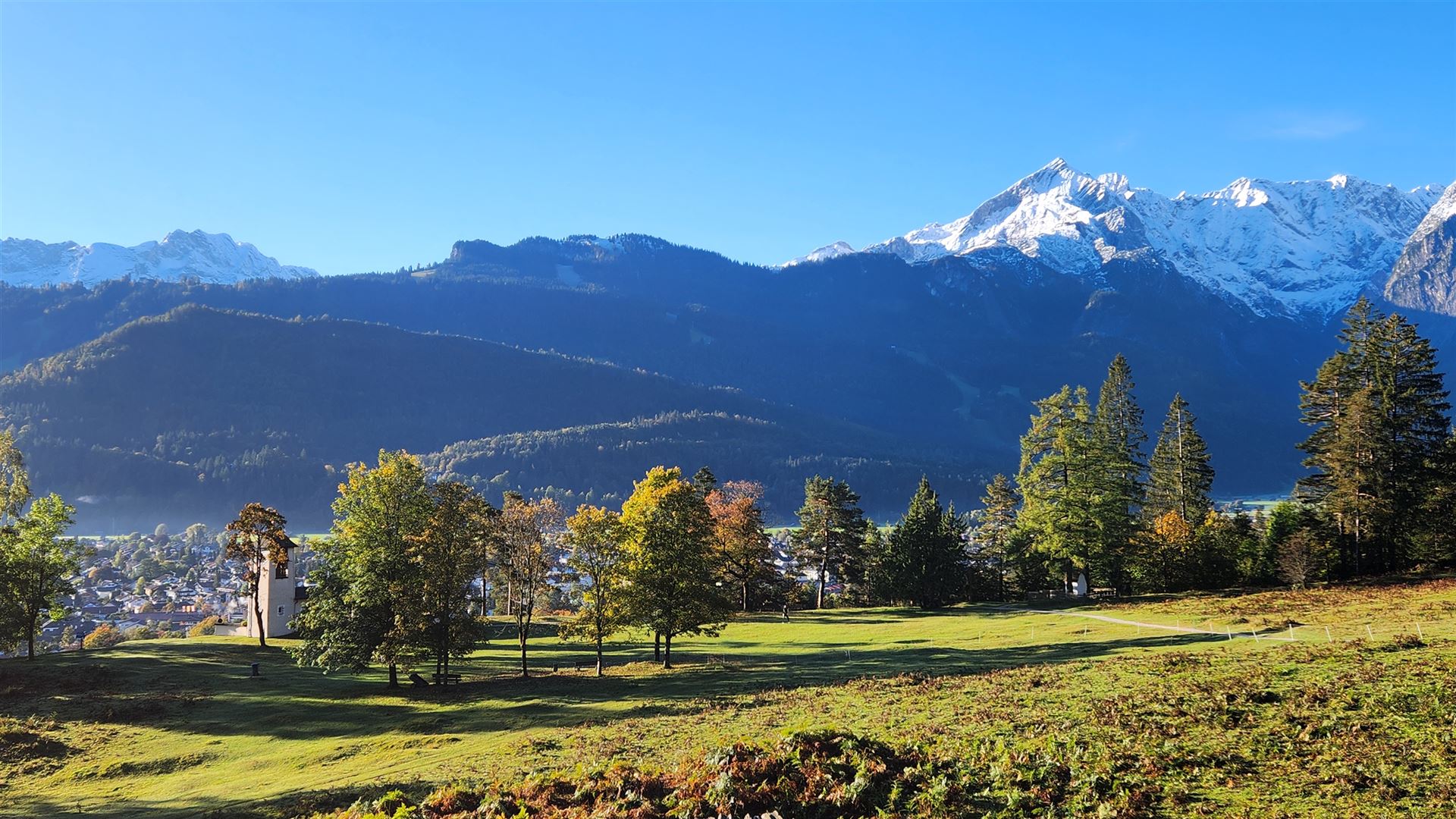 Wenn später die Kriegergedächtniskapelle wieder auf dem Weg liegt, kann auch dieser ein kurzer Besuch abgestattet werden. Die Kapelle zieren zahlreiche Gedenktafeln für gefallene Soldaten. Der Blick auf Garmisch-Partenkirchen ist auch sehr schön.