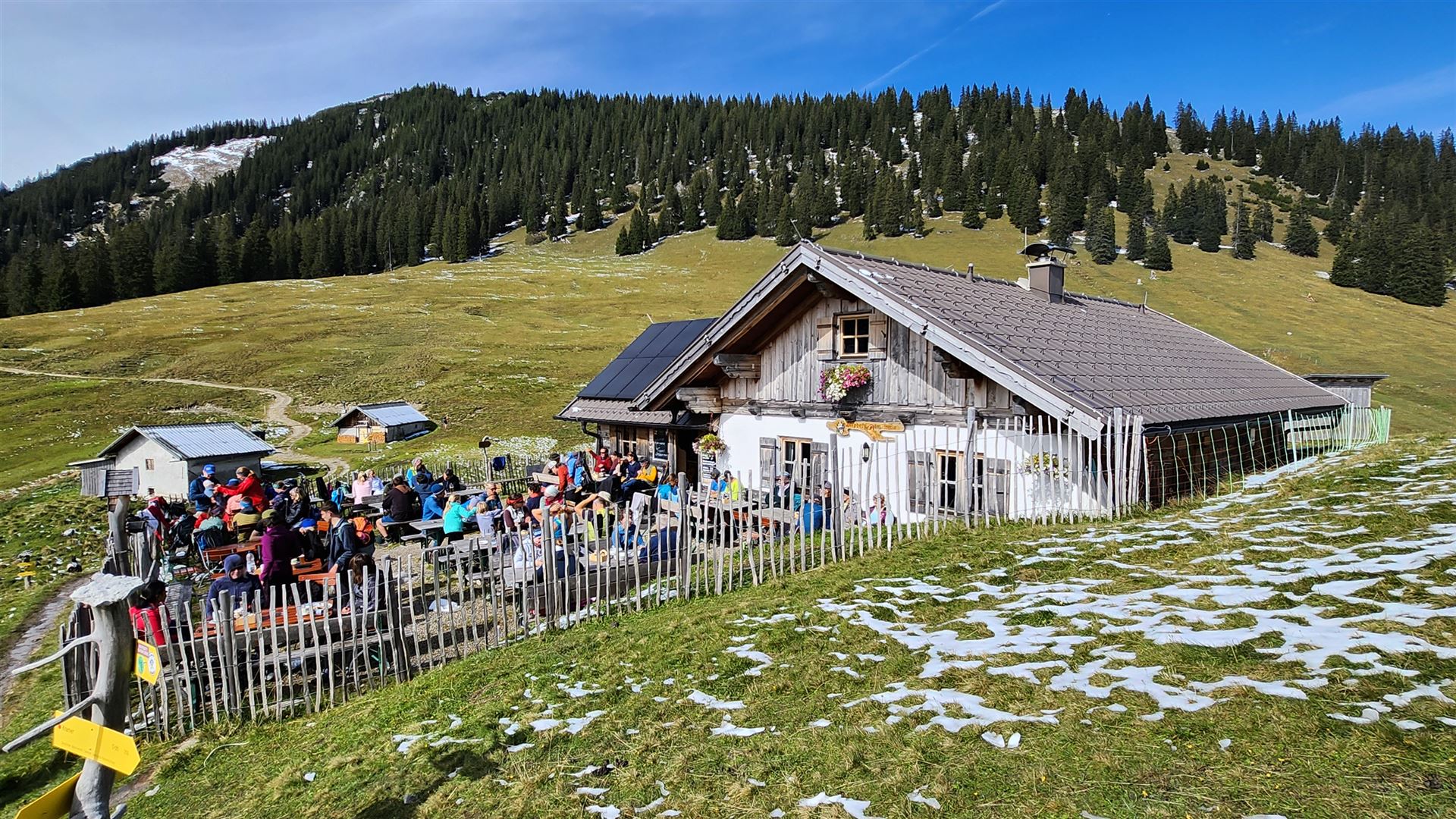 Der Rückweg über das Gelbe Gewänd und den Kramerplateauweg zieht sich dann etwas. Bei der Windbeutelalm (Almhütte) kann man nicht nur Rast machen, sondern, wie der Name sagt, einen der berühmten Windbeutel genießen. Ein Kneipp-Becken lädt zu einer Abkühlung ein.