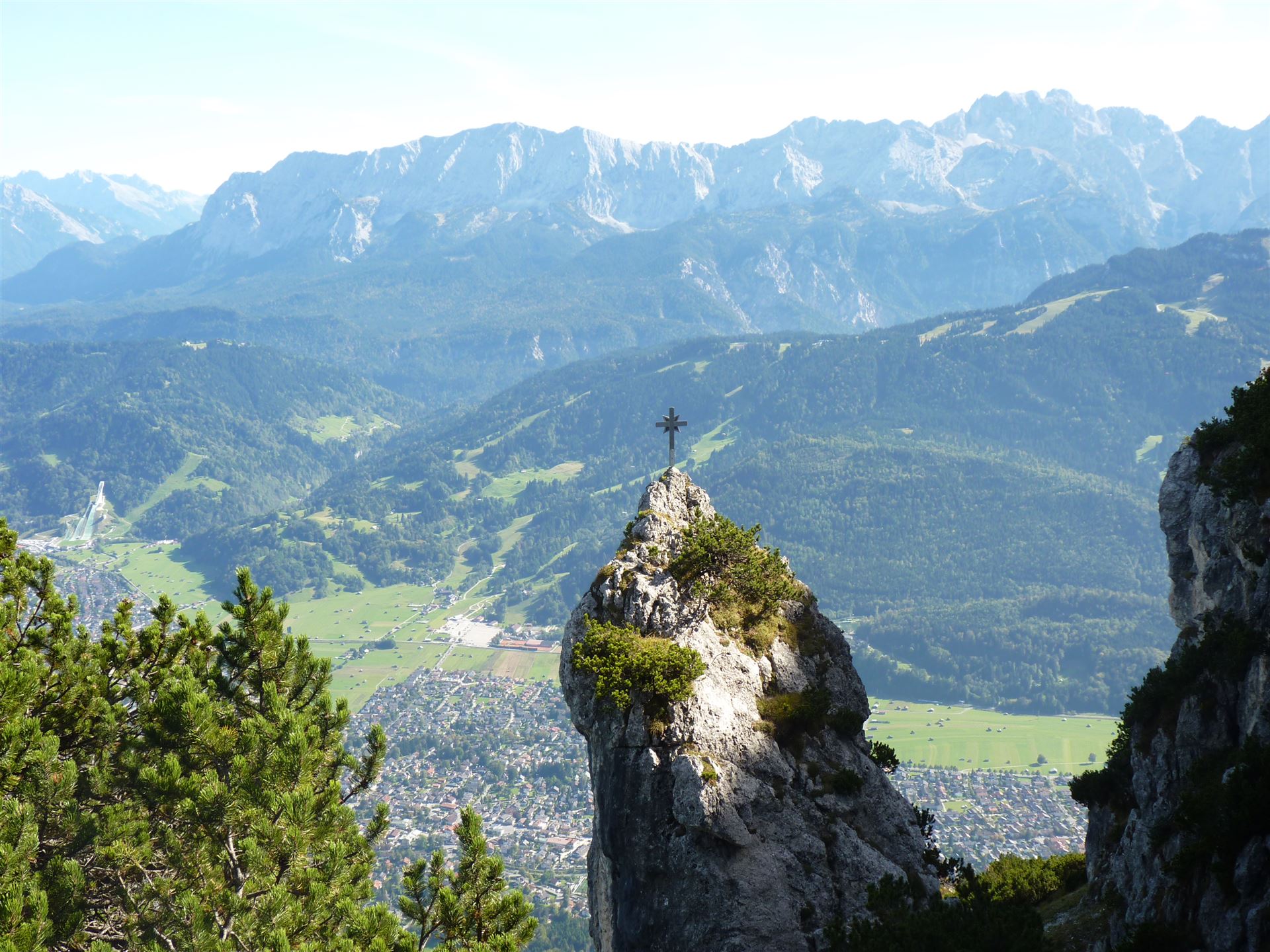 Der Kramer bzw. die Kramerspitz bzw. die Kramerspitze ist meines Erachtens der schönste Aussichtsberg von Garmisch-Partenkirchen. Mit 1985 m kratzt der Kramer an der 2000-Meter-Grenze. Auf dem Gipfelbuch stehen allerdings 1982 m. Das liegt vielleicht daran, dass das Gipfelkreuz etwas niedriger liegt als die benachbarte Erhebung.