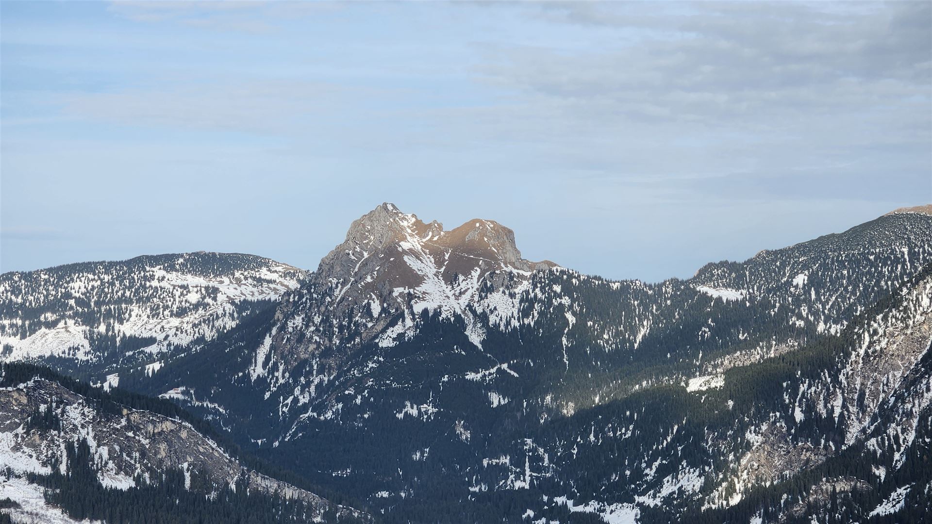 Startpunkt der Tour ist der Parkplatz an der Talstation der Neunerköpfle-Bahn, wo man von einem riesengroßen Mammut begrüßt wird. Von dort führen eine Gondel und ein Schlepplift nach oben. Die meiste Zeit blieben wir auf dem Forstweg, denn auf den abkürzenden Steigen lag schon recht viel Schnee. Die Steige sind dann eher was für den Sommer, um dem Forstweg aus dem Weg zu gehen. Da der Forstweg, der über die Usseralpe auf 1630 m bis zum Gipfel auf 1864 m führt, durchgehend schneebedeckt war, wurde es eine schöne Winterwanderung. Im Sommer meide ich Forstwege nach Möglichkeit.