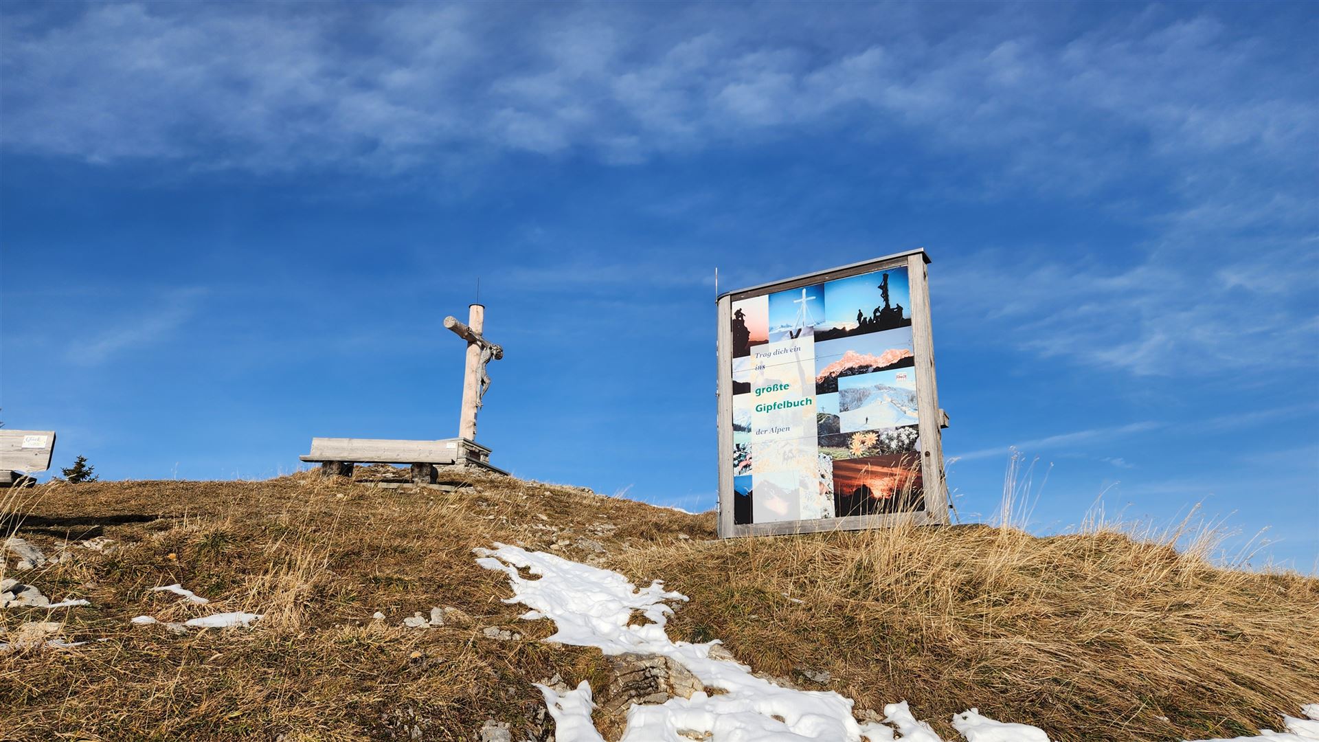 Die Idee für das Neunerköpfle kam auf, als ich gestern einen Artikel über die Geschichte des Gipfelbuchs gelesen habe. Dort war dann auch vom größten Gipfelbuch der Alpen die Rede. Da ich für heute ohnehin eine weniger anstrengende Familientour vorgesehen hatte, machte mich das neugierig. Das übergroße Gipfelbuch als Marketing-Gag ist also voll aufgegangen.
