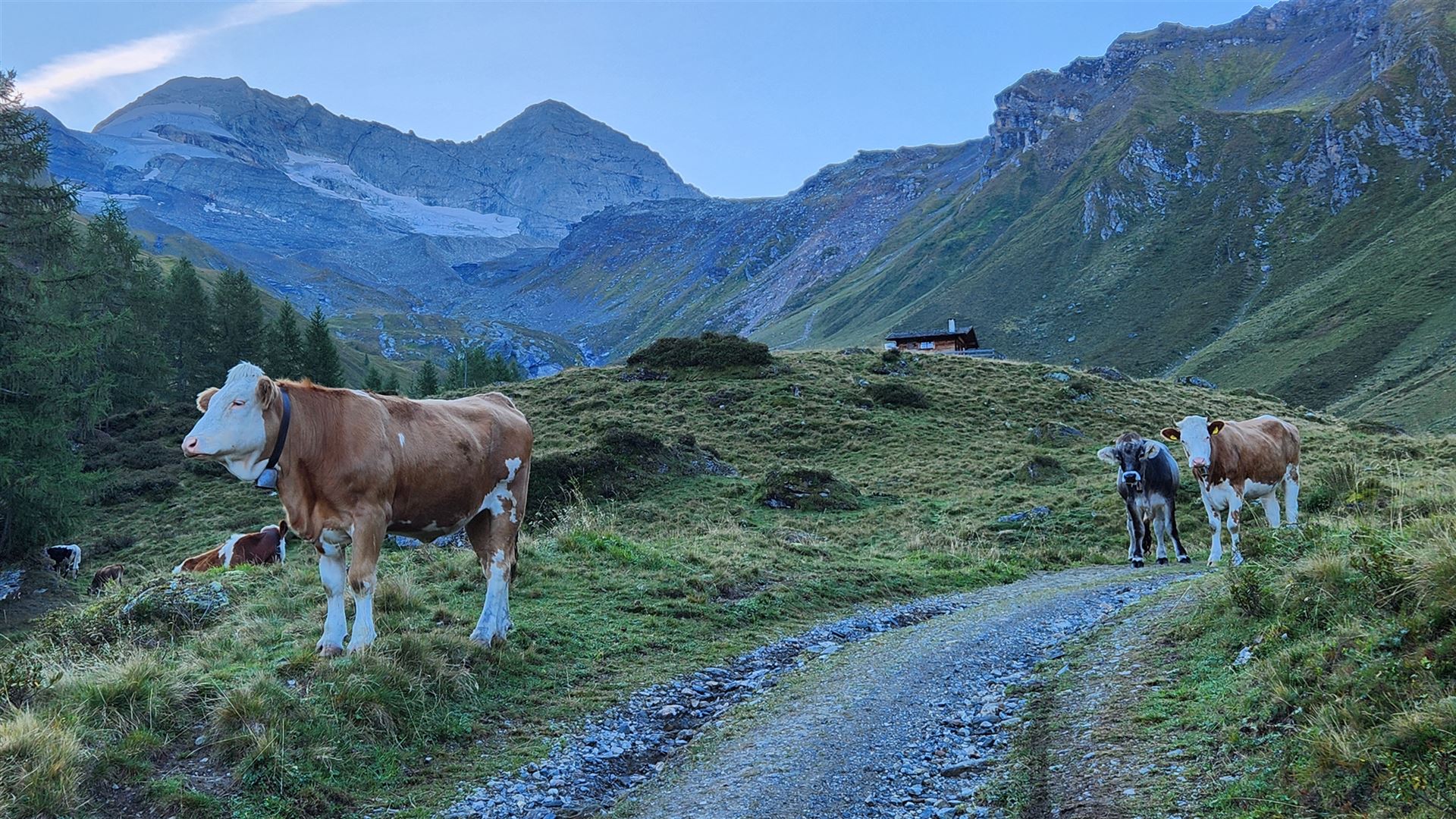 Der Rückweg ins Tal über die Wiesen zog sich erwartungsgemäß. Nach insgesamt 9 ½ Stunden war ich wieder am Parkplatz Wildlahner angekommen. Natürlich hätte ich die Tour auch in 7 Stunden schaffen können. Aber meine Fotopausen und das Abchecken der Gipfel rundum mit meinen Gipfel-Apps ist durchaus zeitaufwendig. Auch war ich ca. 1 Stunde auf der Geraer Hütte. Aber die Zeit ist mir sowieso egal, wenn nicht gerade ein Gewitter aufzieht oder die Dunkelheit naht. Berge sind zum Genießen da, nicht für Rekorde. Die Rekordjagd einiger Zeitgenossen sehe ich deshalb mit großer Skepsis. Aber bitte, wem es gefällt. Solange die Bergwacht nicht gerufen werden muss.