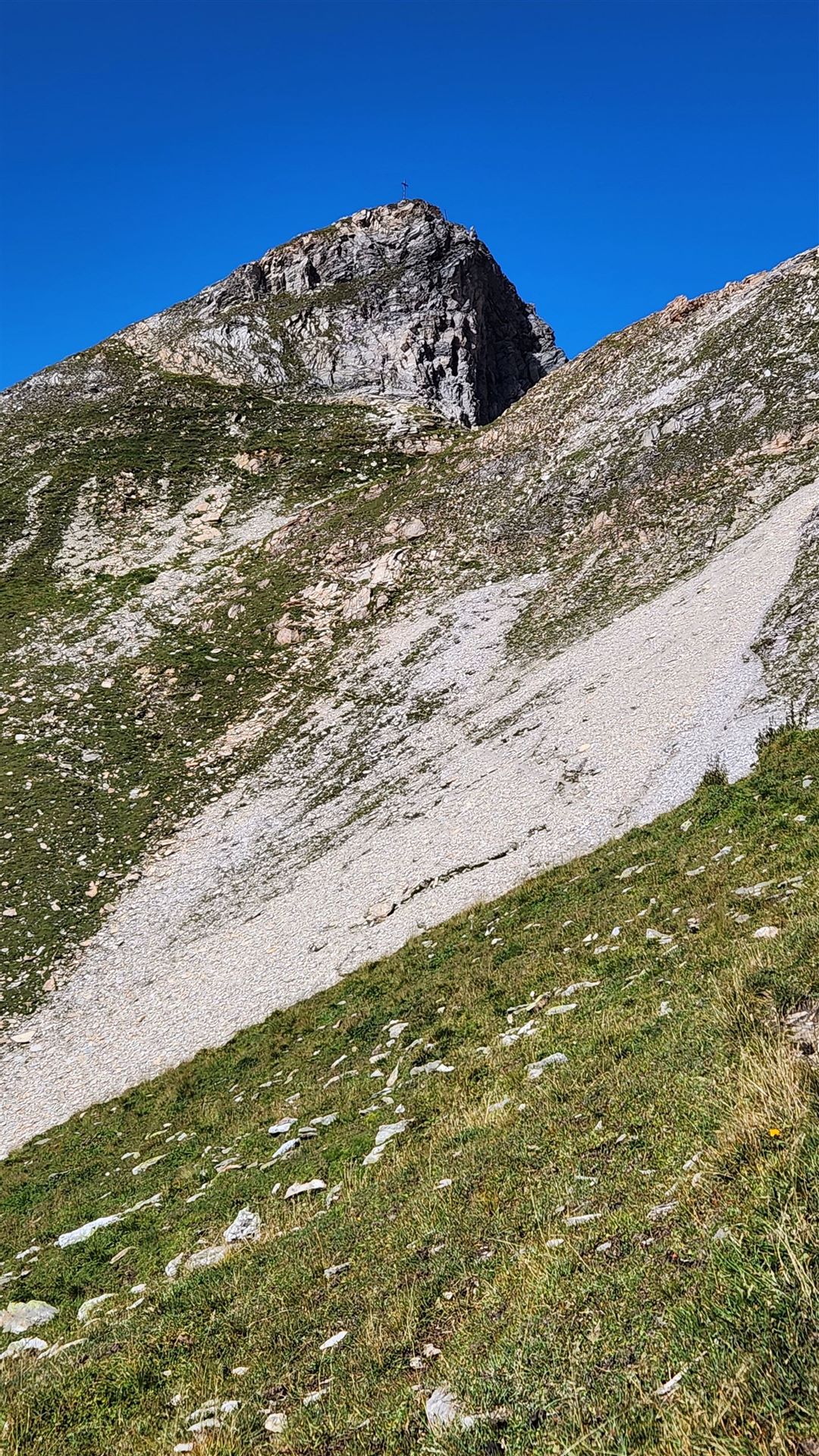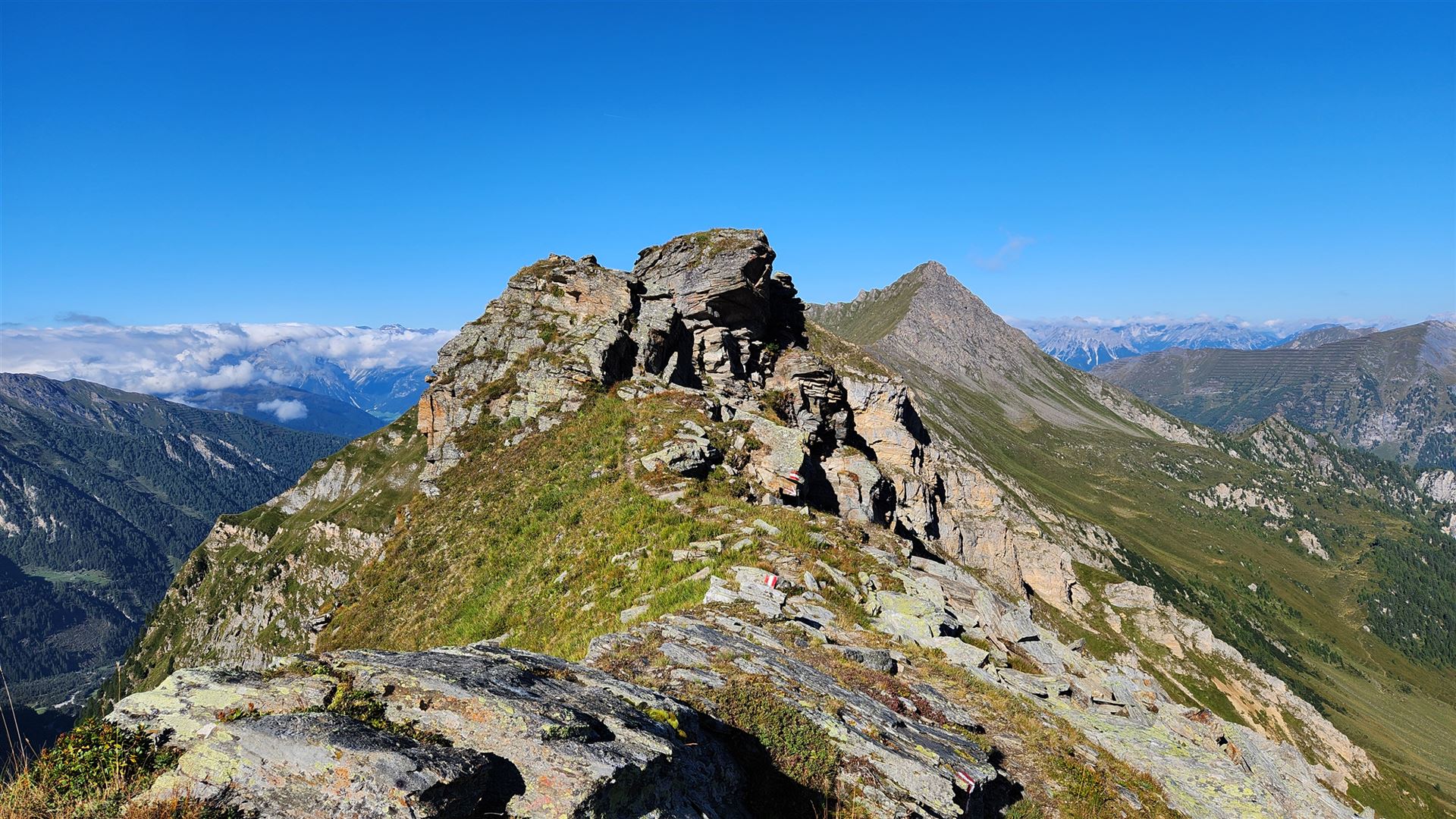 Der Aufstieg zur Schoberspitz war allerleichteste Kraxelei, die letzten Meter zum Gipfel ein Wiesenanstieg. Aber nett. Immerhin hat die Schoberspitz auch 2602 m Höhe.