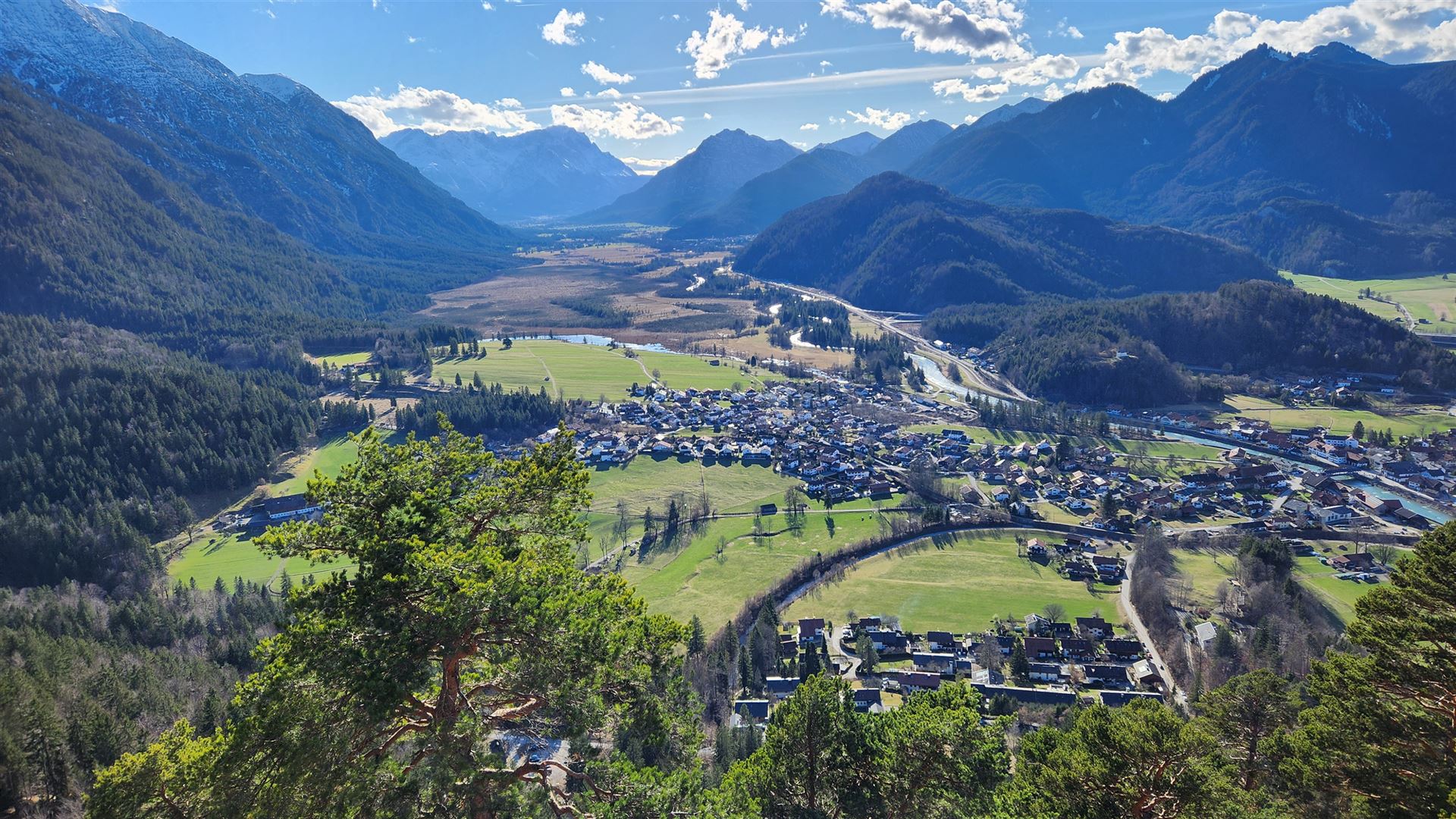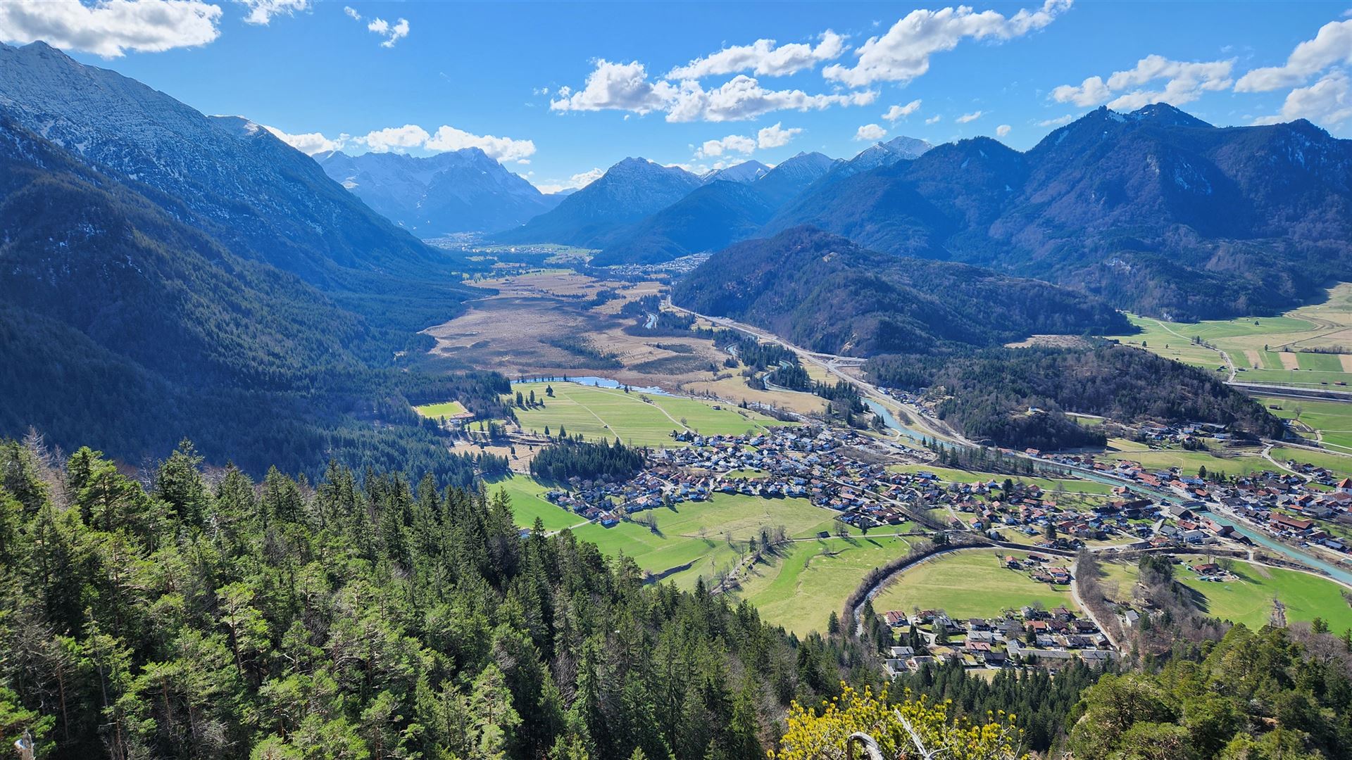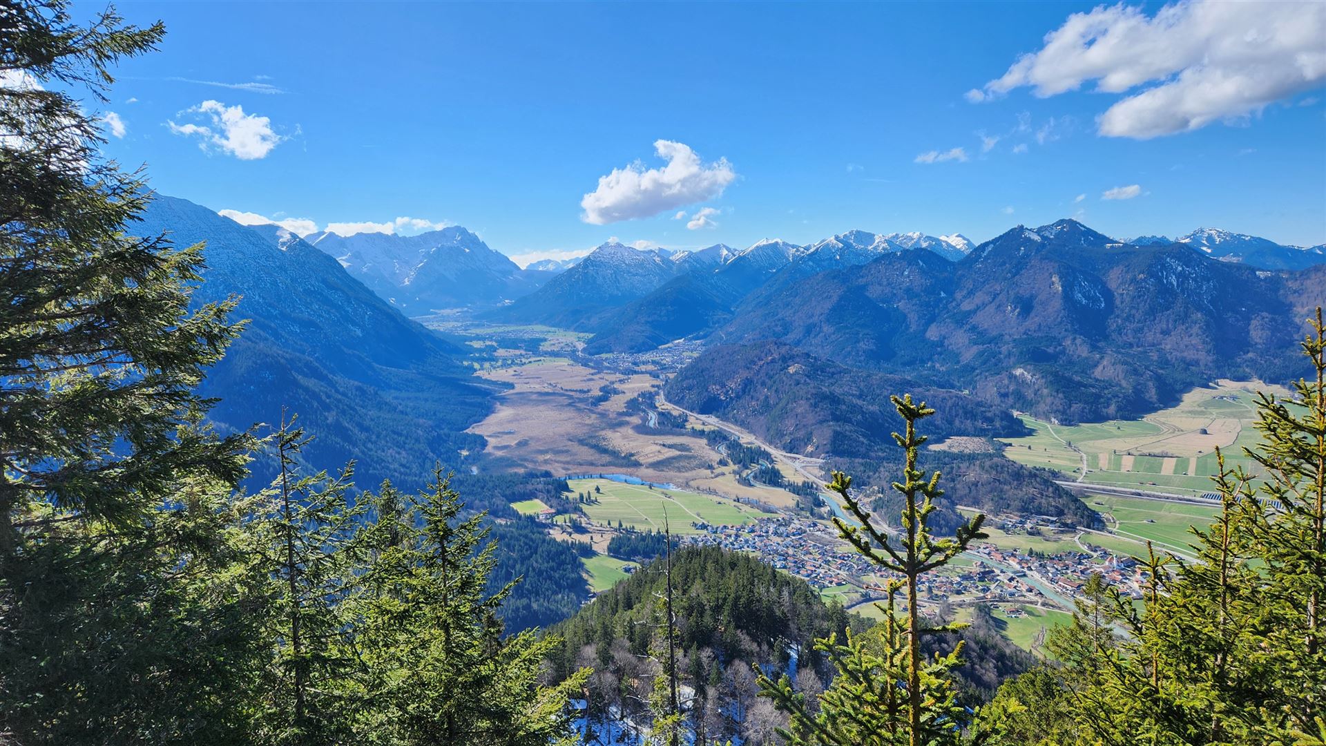 Kaum ein anderer Berg bietet einen derartigen Panoramablick ins Loisachtal bis zur Zugspitze wie der Osterfeuerkopf bei Eschenlohe. Mit 1357 m ist der Berg zwar nicht hoch und bei Eschenlohe nur als besserer Hügel auszumachen, im Verhältnis dazu bietet er aber enorm viel.