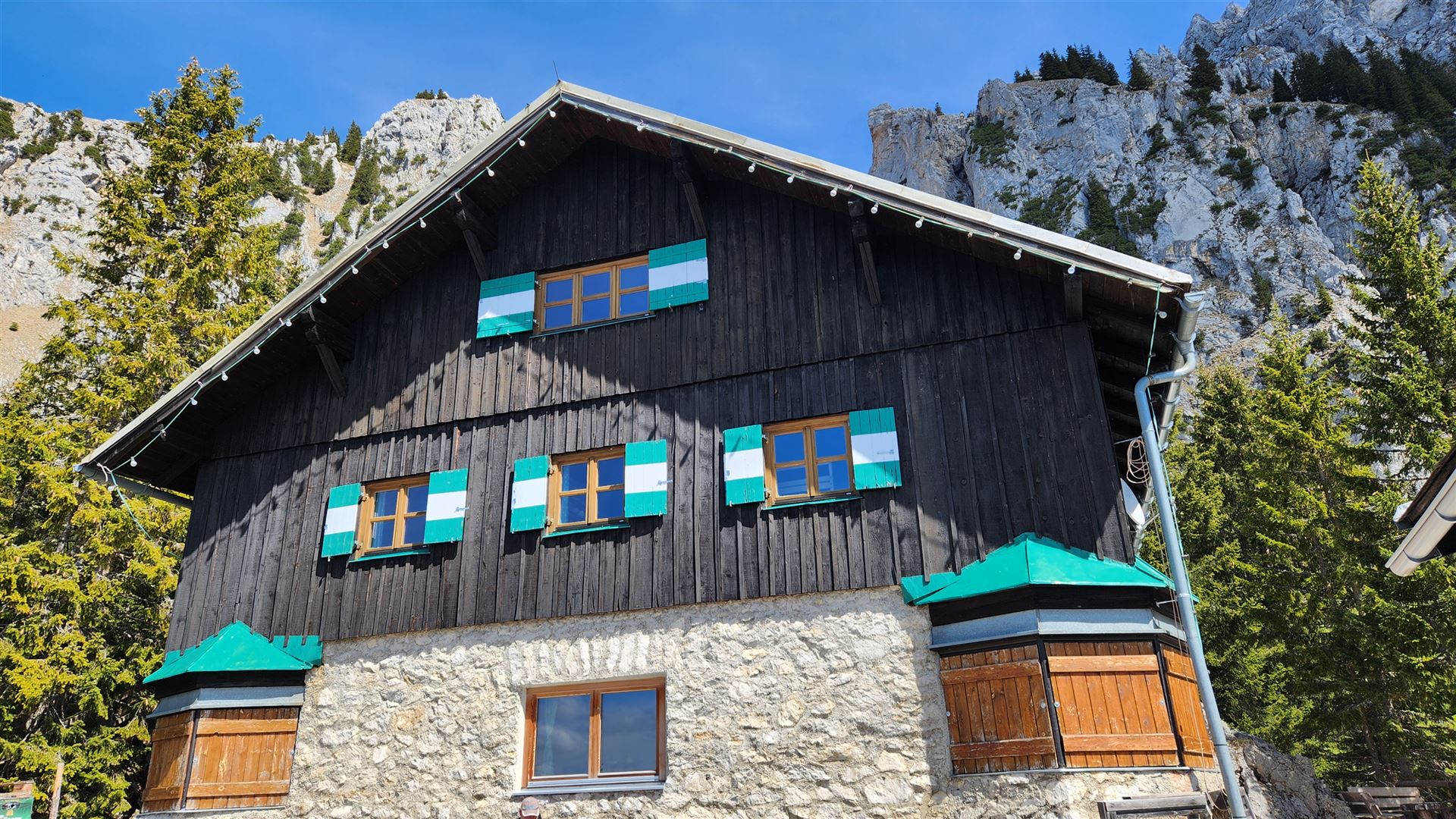 Dem geteerten Weg folgt man dann nur kurz bergauf, dann beginnt schon der schöne Steig hinauf zum Säulinghaus. Der Steig kürzt den Forstweg fast durchgehend ab. Einmal muss man dem Schild "Zum Steig" folgen, um auf dem richtigen Weg zu bleiben. Bis zum Säulinghaus sind 2 Stunden ausgeschildert, ich habe mit normalem Tempo nur 1½ Stunden benötigt. Das Säulinghaus auf 1720 m wird von der Sektion Augsburg der Naturfreunde betrieben. Hinter dem Haus gibt es ein Notlager namens „Sumpfpatscha”, warum auch immer.
