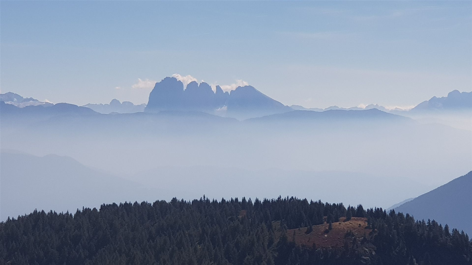 Am 2118 m hohen Gipfel mit seinem schmalen Gipfelkreuz kann man das gesamte Dolomitenpanorama überblicken, vom Haunold bis zum Rosengarten: Monte Elmo (Helm), Dreischusterspitze, Kronplatz, Hohe Gaisl, Dürrenstein (bei der Plätzwiese), Monte Cristallo, Tofana di Mezzo, Heiligkreuzkofel, Peitlerkofel, Furchetta und Sass Rigais (Geisler, Villnösstal), Langkofel, Plattkofel, Rosengarten mit Kesselkogel und Vajolet-Türmen und Latermar-Stock.