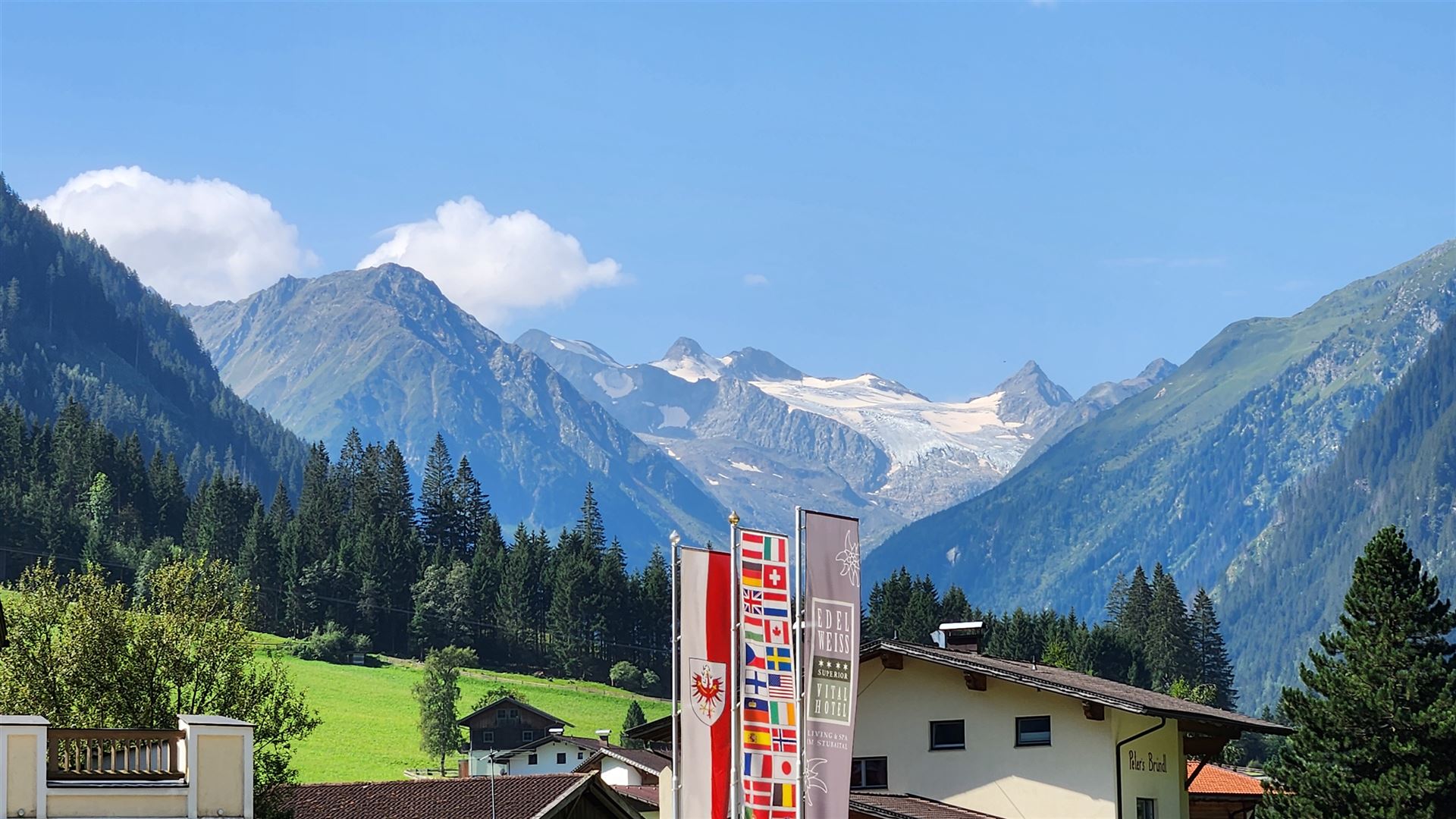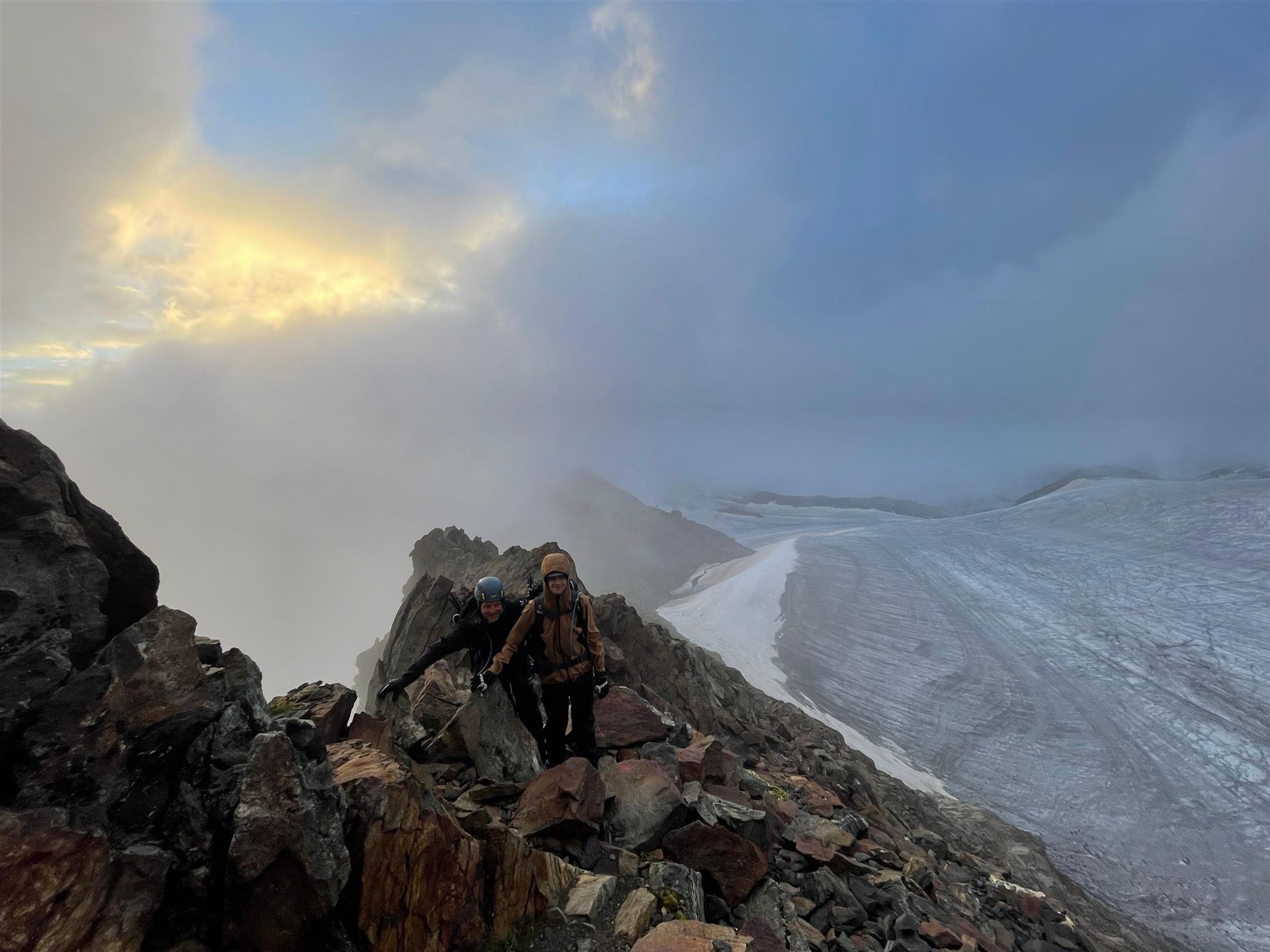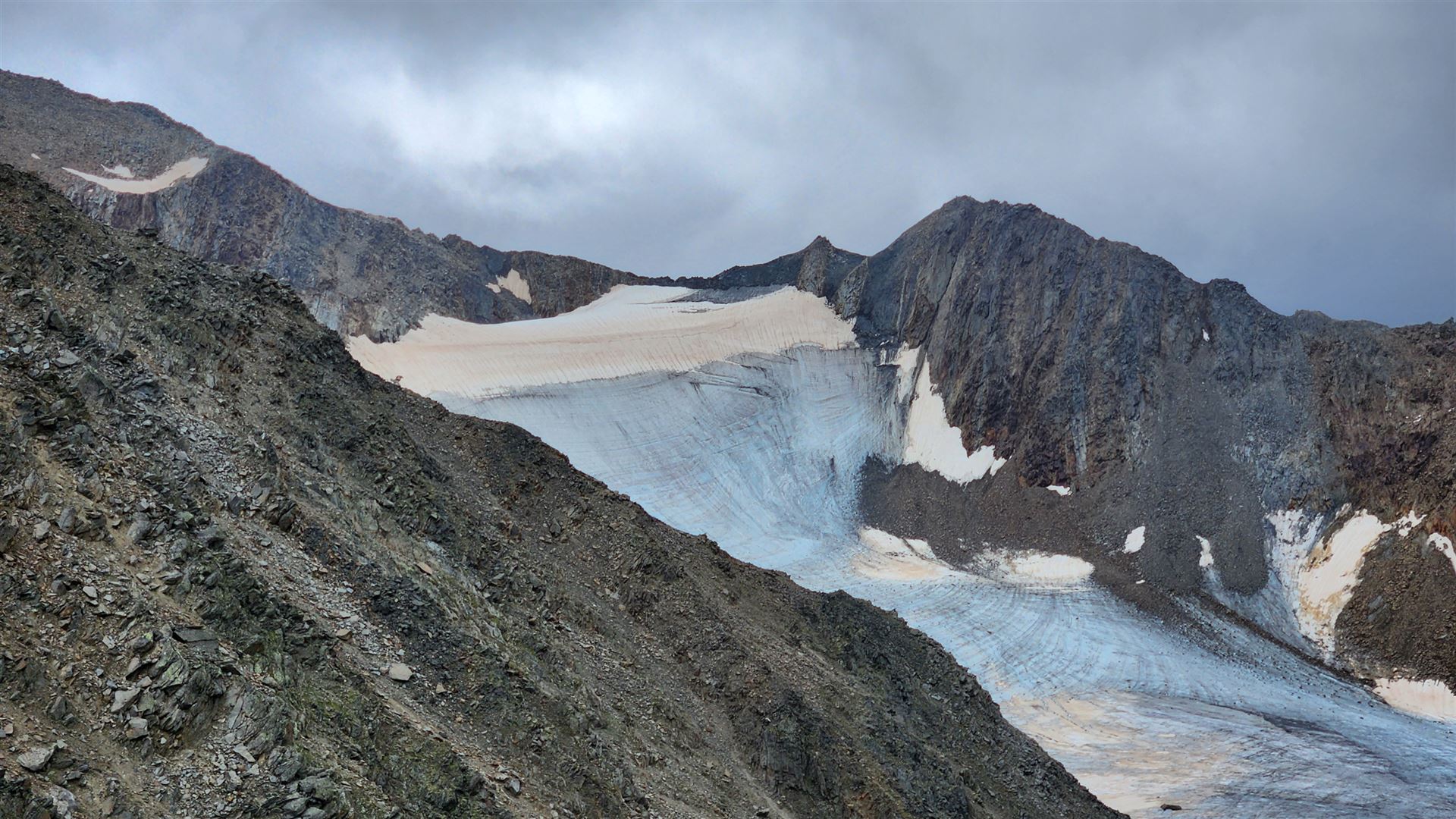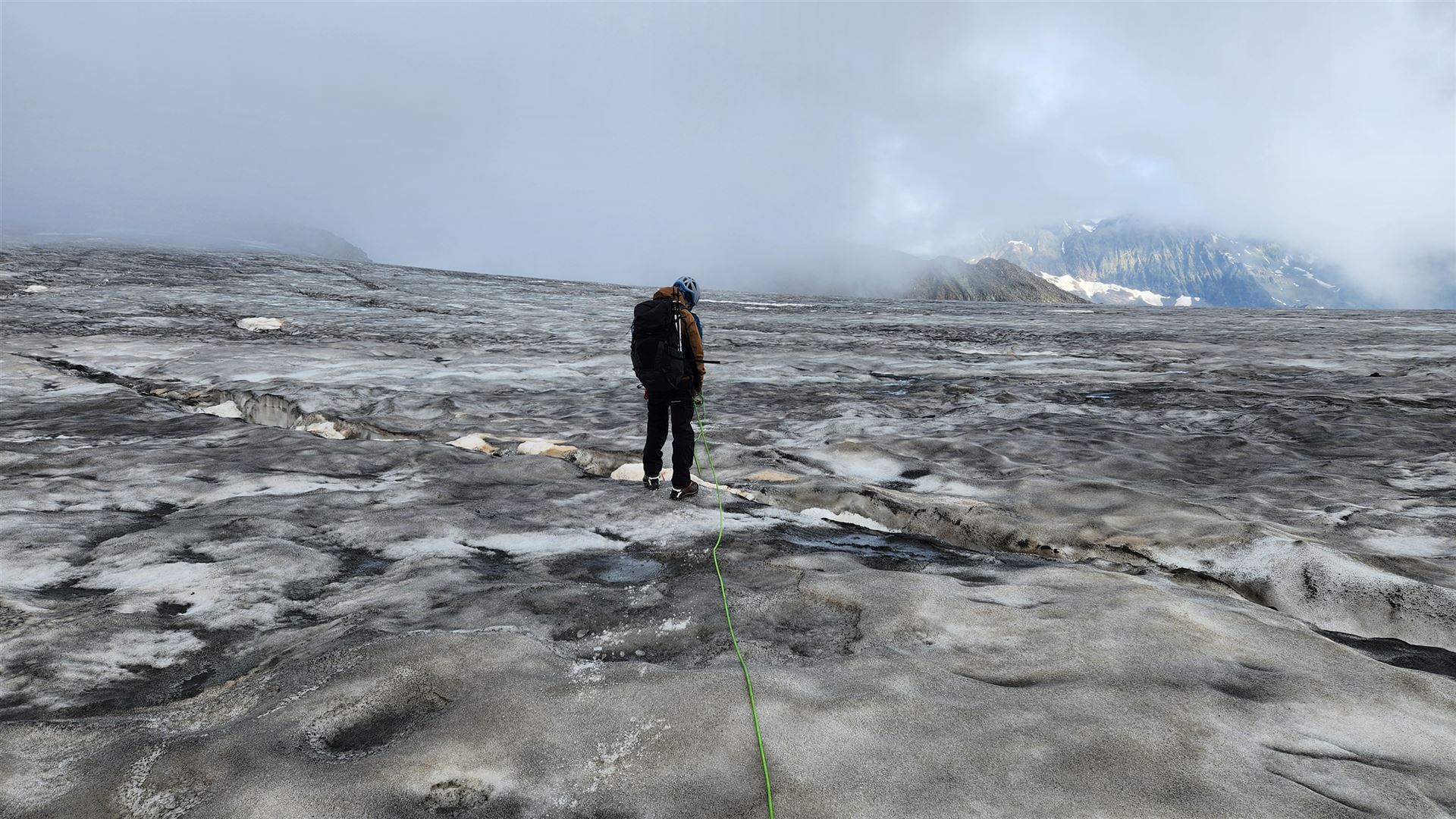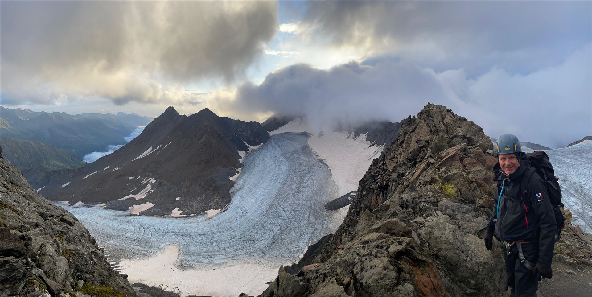 Leider waren die Sicht und vor allem die Fernsicht ziemlich eingeschränkt. Nach wochenlangem Sommerwetter war ausgerechnet an diesem Wochenende schlechteres Wetter angesagt. Aber zwischendurch riss die Wolkendecke immer wieder auf und ermöglichte schöne Ausblicke auf die umliegenden Berge und Gletscher.