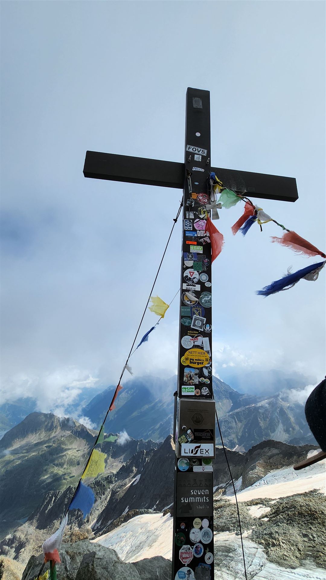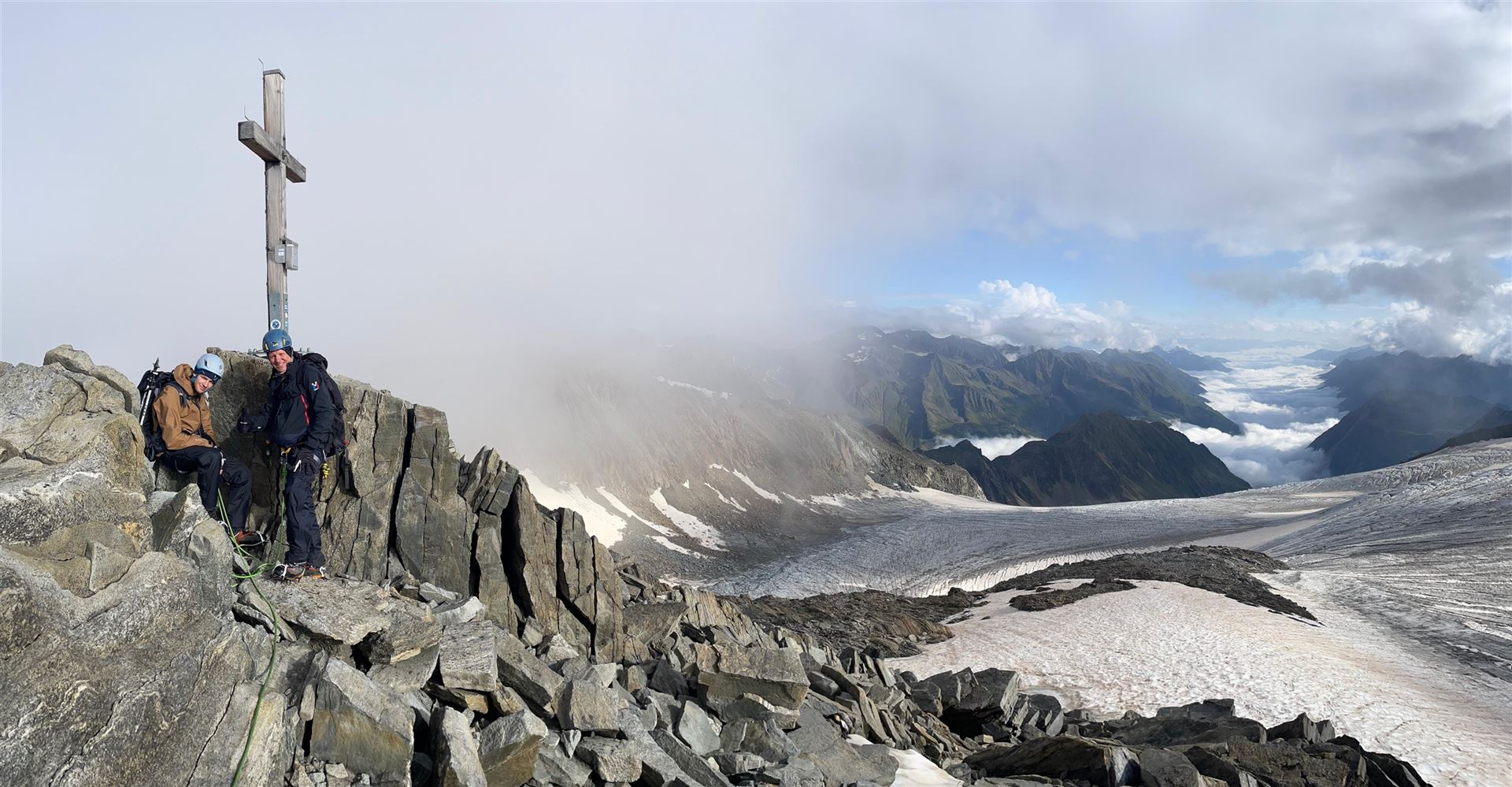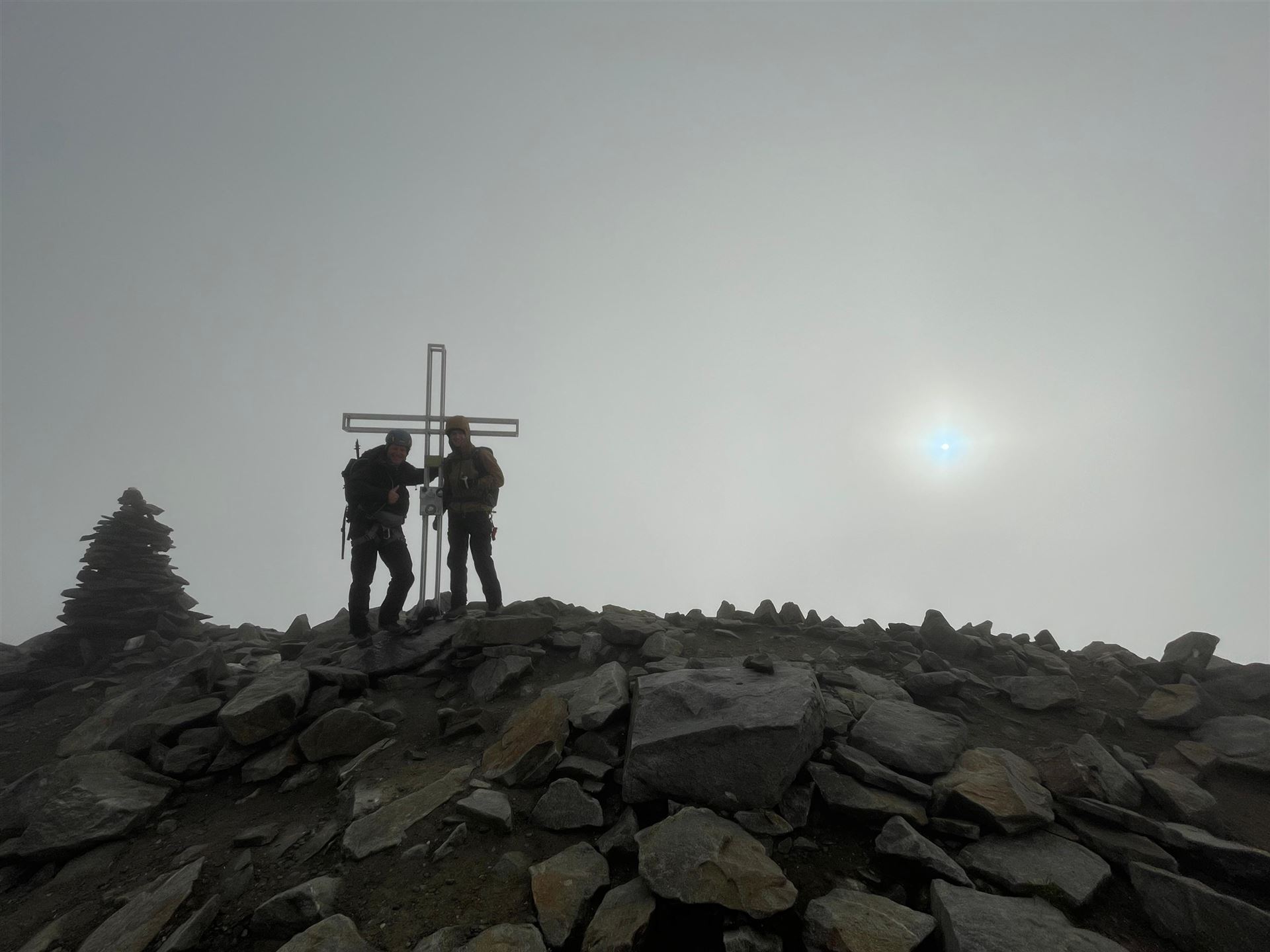 Geschafft: Der Wilde Freiger, sogar kurz mit blauem Himmel -