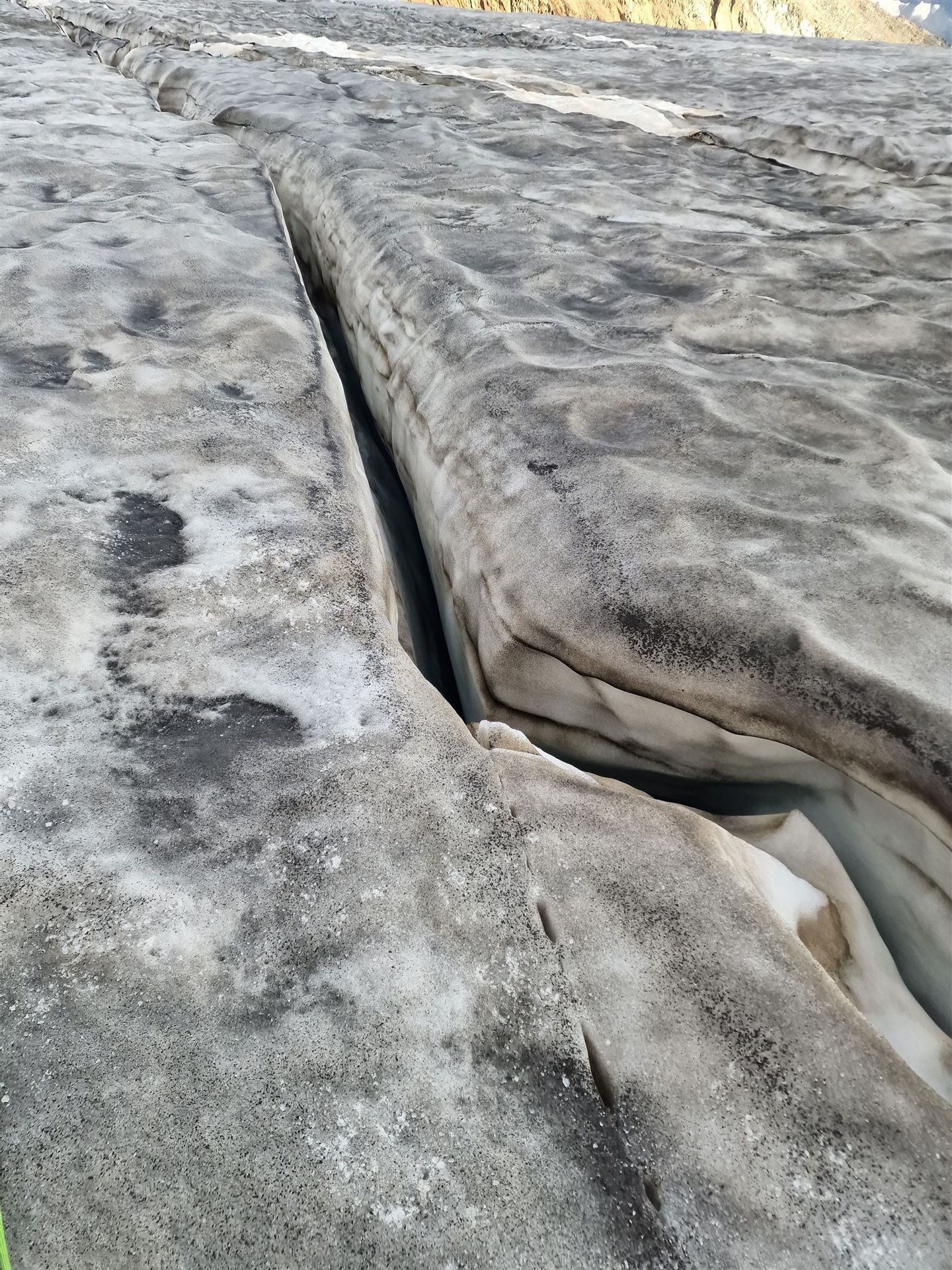 Schließlich querten wir den Übeltalferner, den größten Gletscher von Südtirol, hinüber zur Müllerhütte, unserem Tagesziel, das wir nach ca. 7 Stunden erreichten. Genau für diesen Zweck hatten wir einen Bergführer gebucht, denn eine Gletscherüberquerung erfordert Know-how, Erfahrung und Sicherung. Und der notwendige Gletscherkurs steht noch aus. Mit Bergführer waren wir dritt. Je größer die Seilschaft, desto sicherer. Das ist – unabhängig vom ausstehenden Gletscherkurs – auch mein Problem, weil ich häufig alleine unterwegs bin.