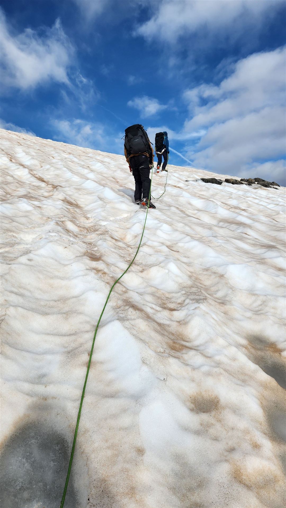 Fazit: Die 48-stündige Tour (Freitagmittag bis Sonntagmittag) war ein kleines Abenteuer, auch weil kein strahlendblauer Himmel herrschte und die Sicht häufig schlecht war. Es hätte aber auch schlimmer kommen können. Unser Bergführer Matthias von der Blue Mountain Spirit Bergschule, seines Zeichens staatlich geprüfter Heeresbergführer, war ein echter Profi, hatte die Wegfindung im auch für ihn unbekannten Terrain sicher im Griff und die Wettervorhersage ständig im Auge. Aufgrund der im Laufe des Tages zunehmenden Gewittergefahr drängte er uns regelmäßig zur Eile. Mangels Sicht hielten wir uns auf den Gipfeln ohnehin nicht lange auf.