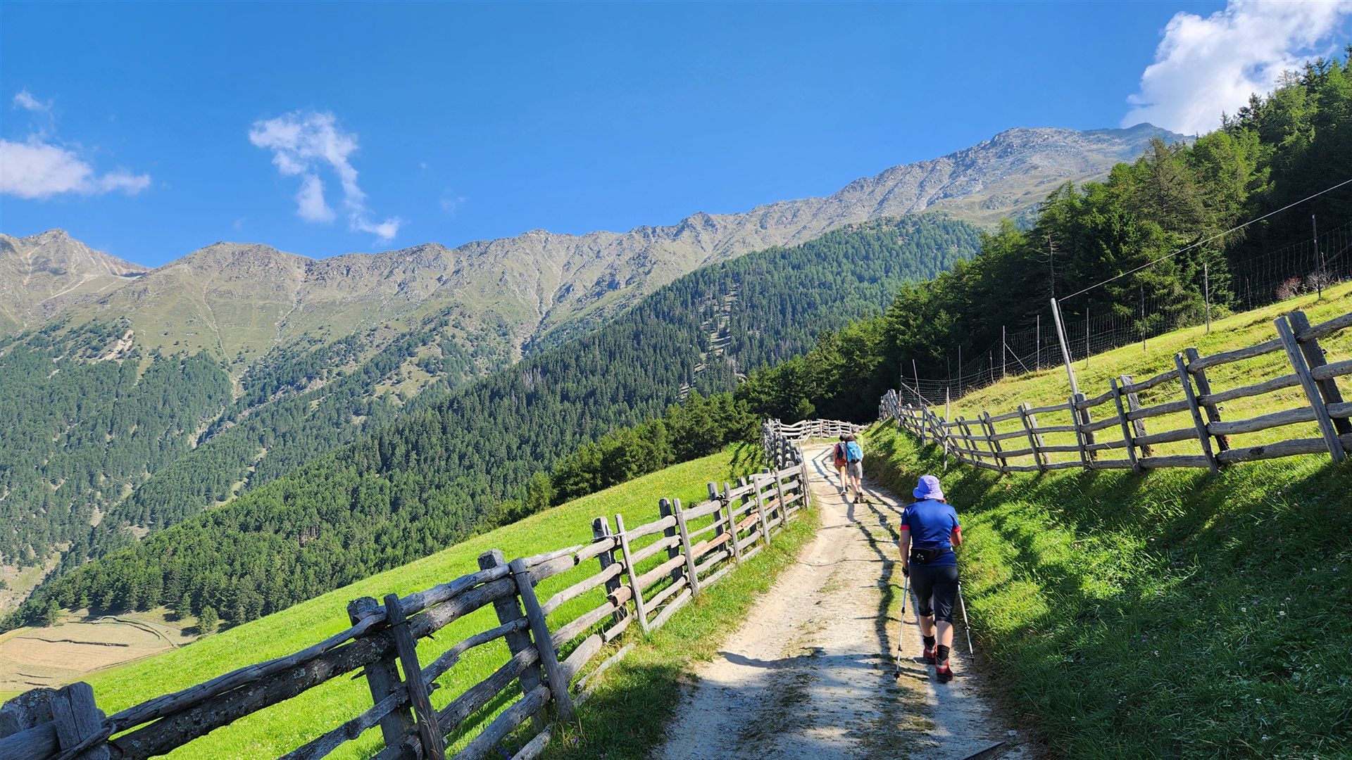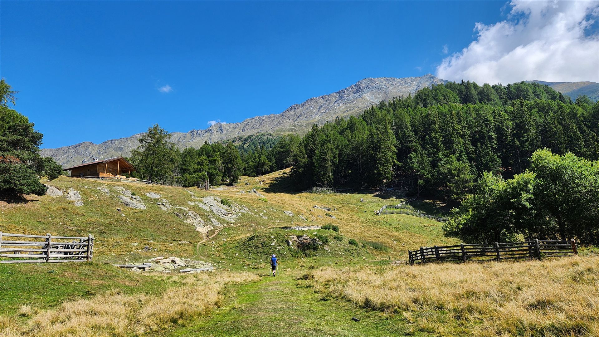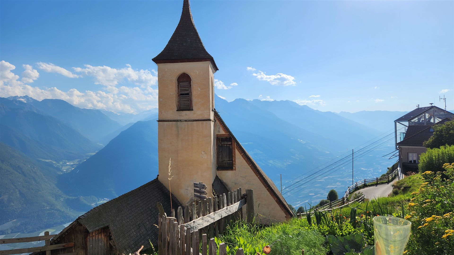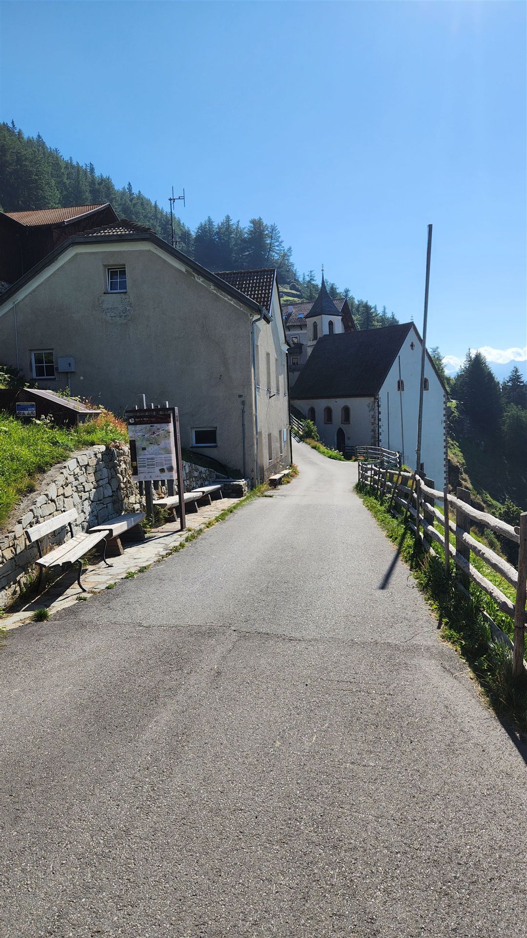 Mit der Gondel spart man sich den ersten, weniger reizvollen Anstieg nach St. Martin im Kofel auf 1740 m mit Wallfahrtskirche und kleiner Grundschule. Aber auch von dort war es noch eine 7-Stunden-Tour plus Pausen.
