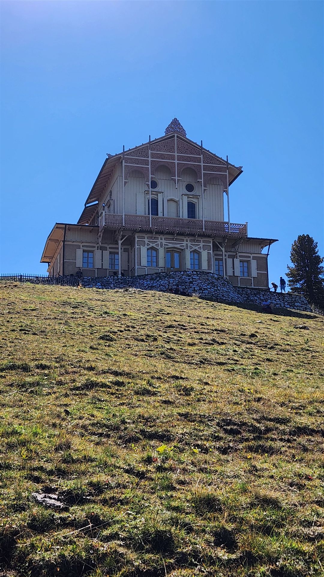 Lange Rede, kurzer Sinn: Um ca. 11:30 Uhr startete ich am Kälbersteig. Das Schachenschloss ist dort mit 4½ Stunden angegeben. Im normalen Tempo benötigte ich allerdings nur 2½ Stunden. Der Kälbersteig zieht sich, bis es irgendwann zum Endspurt auf den Forstweg zum Schachen übergeht. Dort begegnet man dann den Mountainbikern und Wanderern, die von Schloss Elmau heraufkommen. Vor dem Schachenschloss liegt noch der Alpengarten.