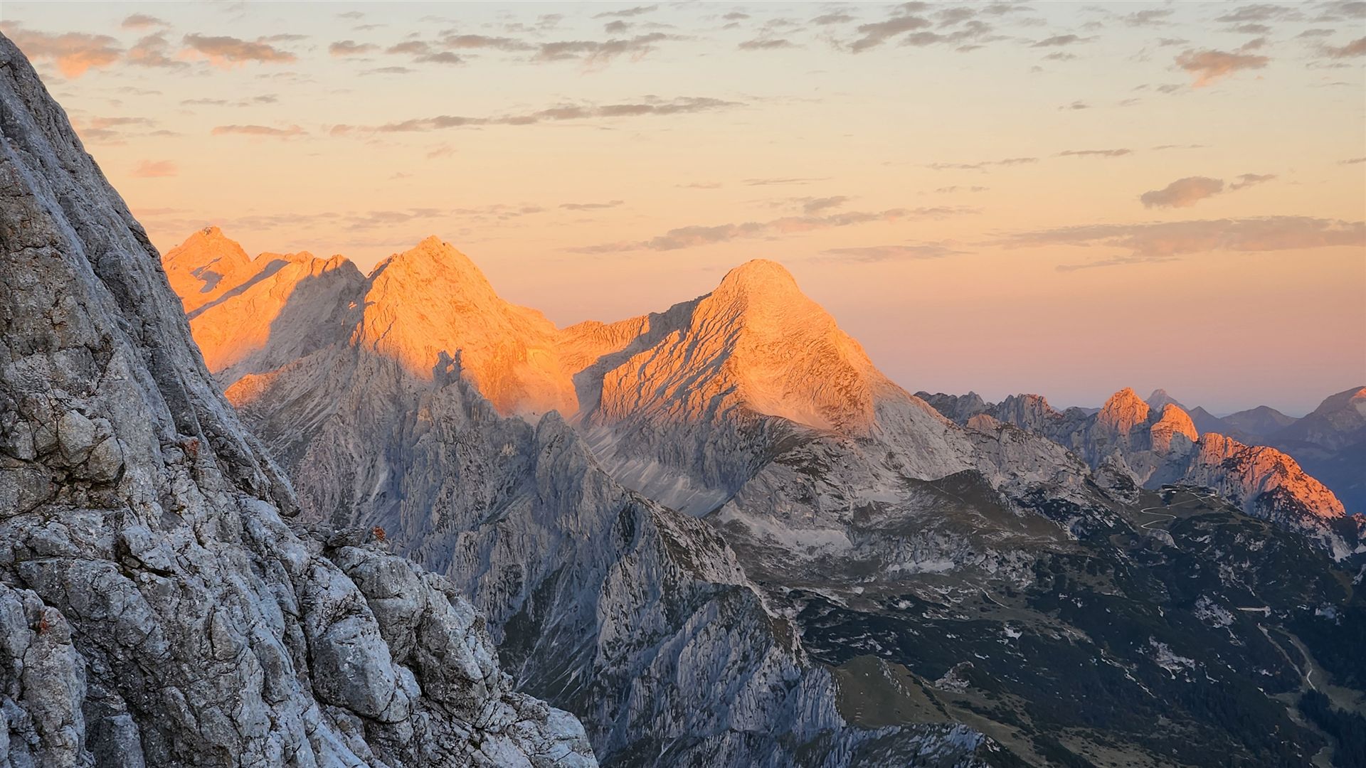Abendsonne über der Zugspitze, Alpspitze und Waxensteinen -
