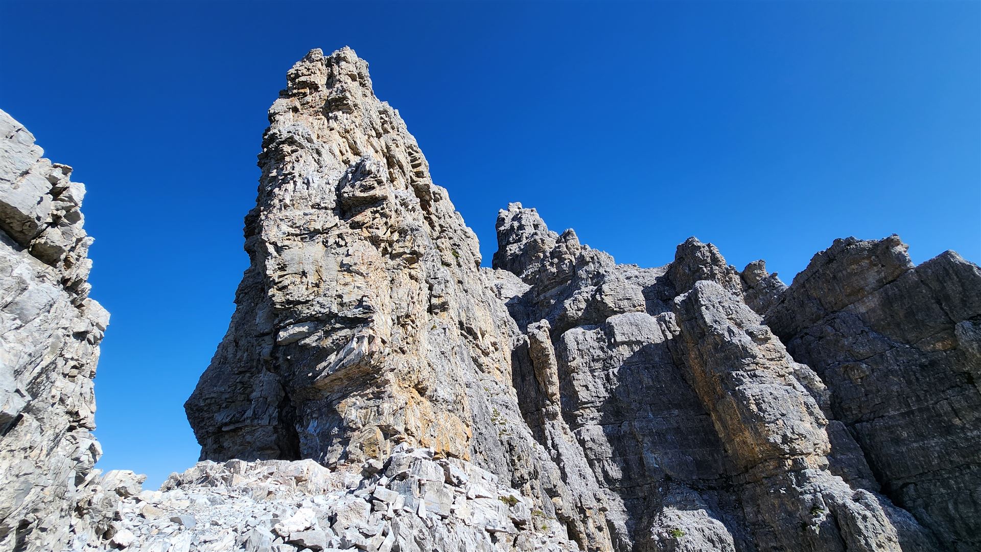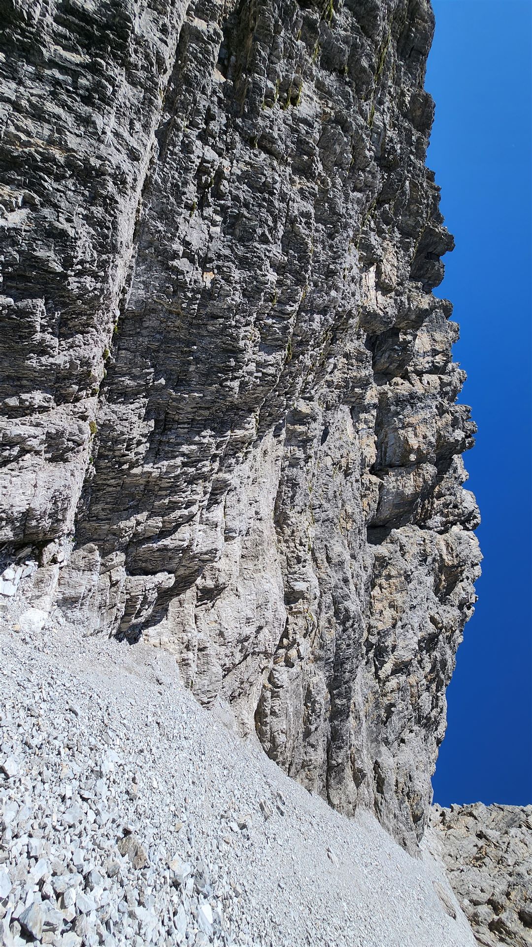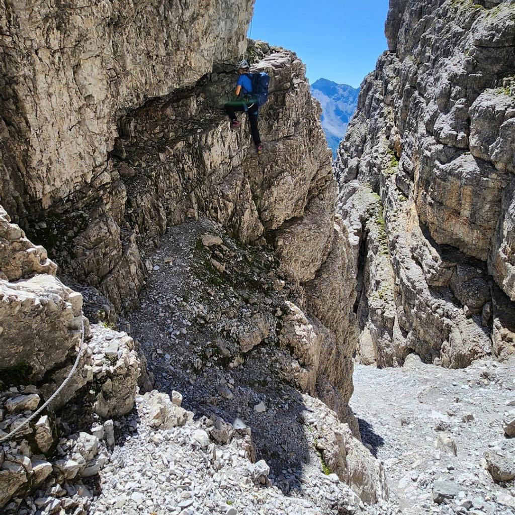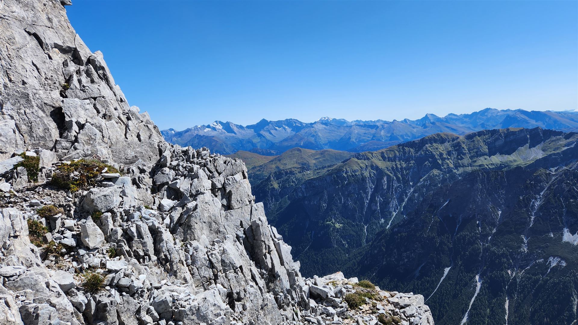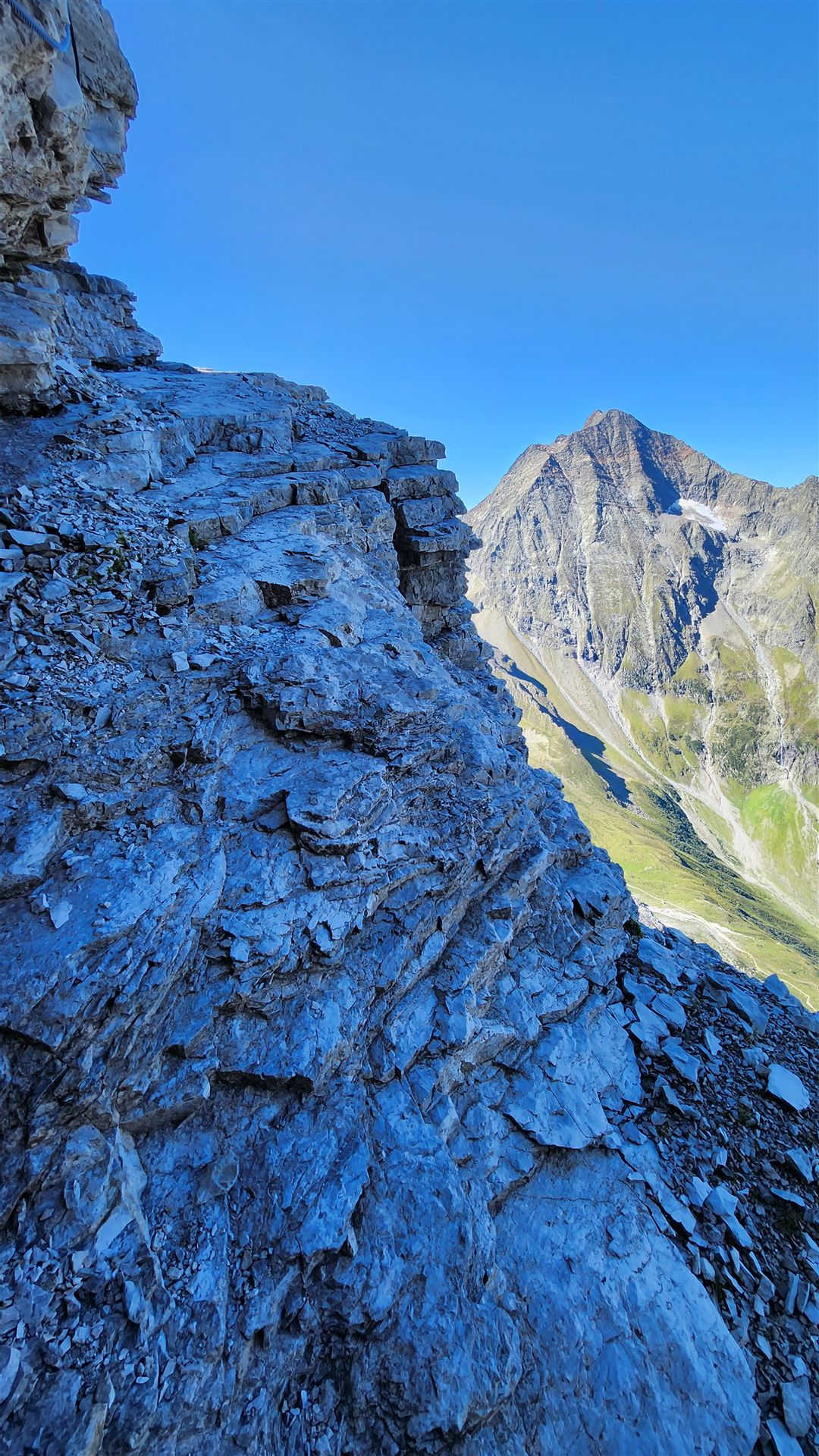Der Klettersteig erfordert ca. 3,5 Stunden, mit Anmarsch und Gipfelpause ca. 6 Stunden. Der Klettersteig ist nichts für Anfänger, für geübte Klettersteiger jedoch problemlos machbar und sehr abwechslungsreich. Ich würde sagen Schwierigkeitsgrad C mit leichtem D. Am interessantesten fand ich den Spreizschritt über einen tiefen Felsspalt. Beim Abstieg (Rundtour) geht es über versicherte Schuttabhänge.
