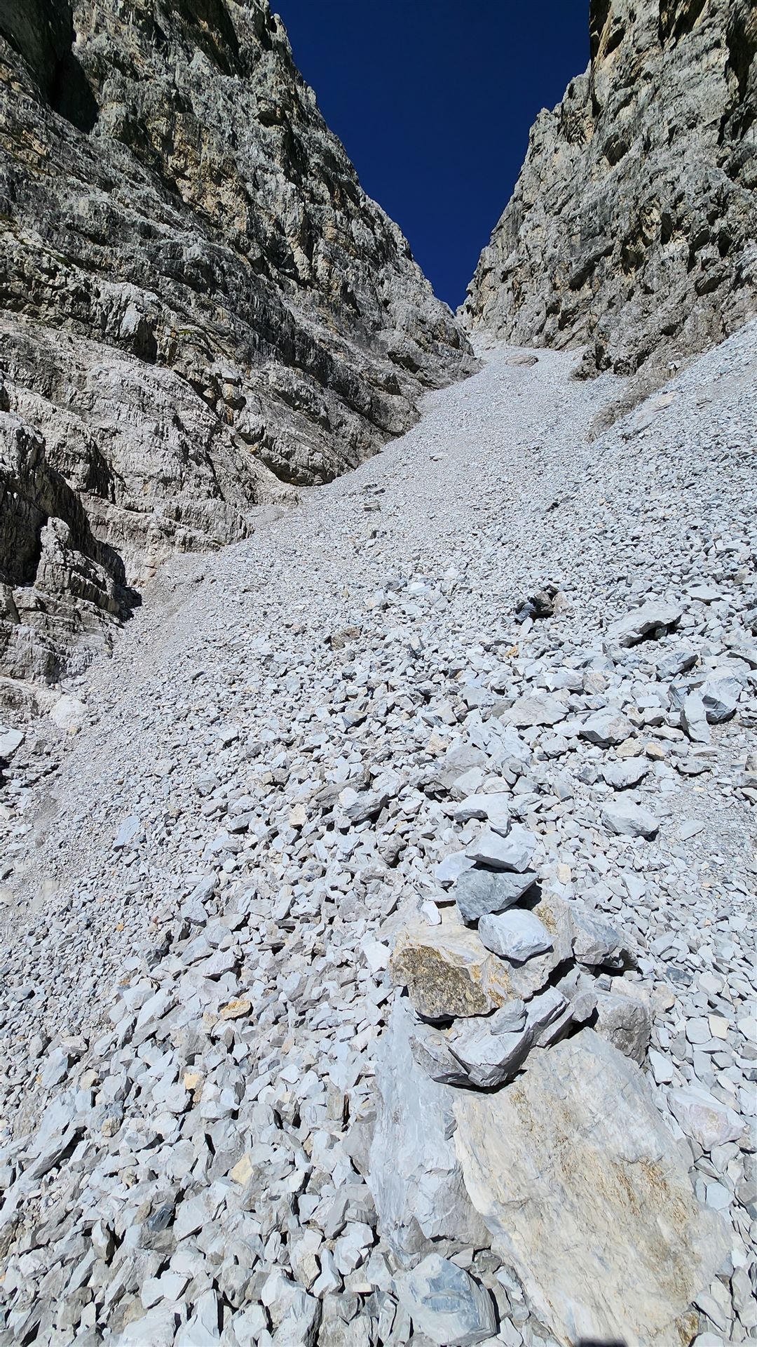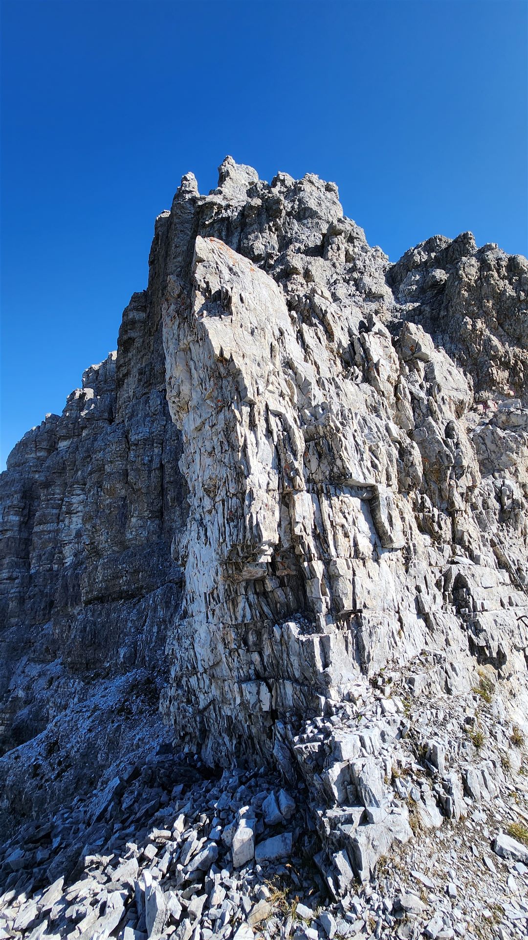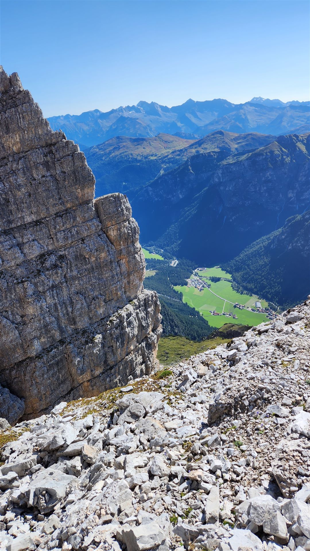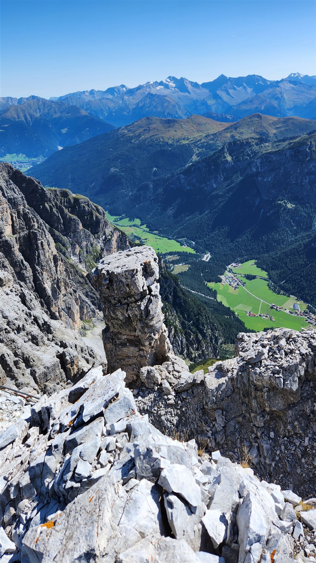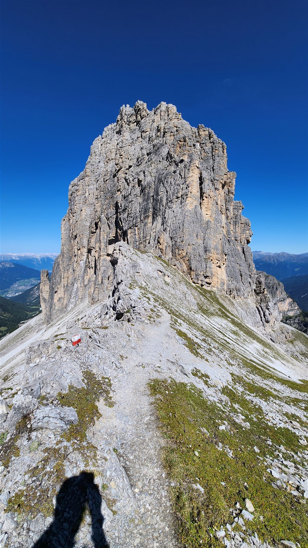 Der Klettersteig erfordert ca. 3,5 Stunden, mit Anmarsch und Gipfelpause ca. 6 Stunden. Der Klettersteig ist nichts für Anfänger, für geübte Klettersteiger jedoch problemlos machbar und sehr abwechslungsreich. Ich würde sagen Schwierigkeitsgrad C mit leichtem D. Am interessantesten fand ich den Spreizschritt über einen tiefen Felsspalt. Beim Abstieg (Rundtour) geht es über versicherte Schuttabhänge.
