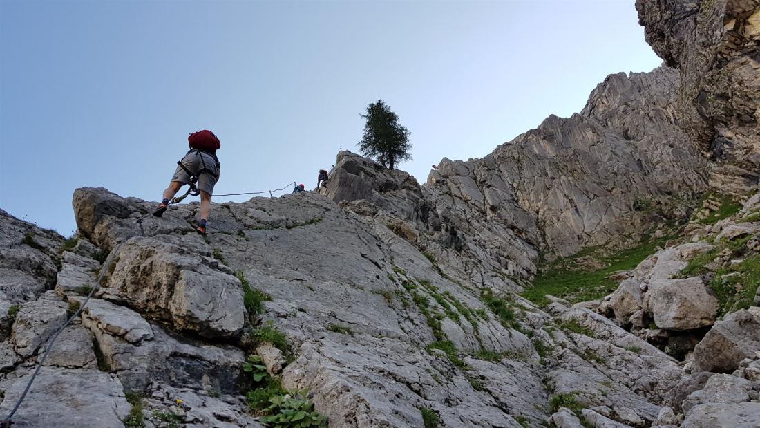 Das war mein bisher schwierigster Klettersteig. Dieser ist nicht nur lang, es waren circa vier Stunden ohne den vorherigen Anmarsch von Ehrwald. Der Steig enthält auch Passagen im Bereich D/E. Am Gipfel angekommen war ich völlig ausgepumpt. Der Abstieg erfolgt dann über die Coburger Hütte. Ein langer Tag.