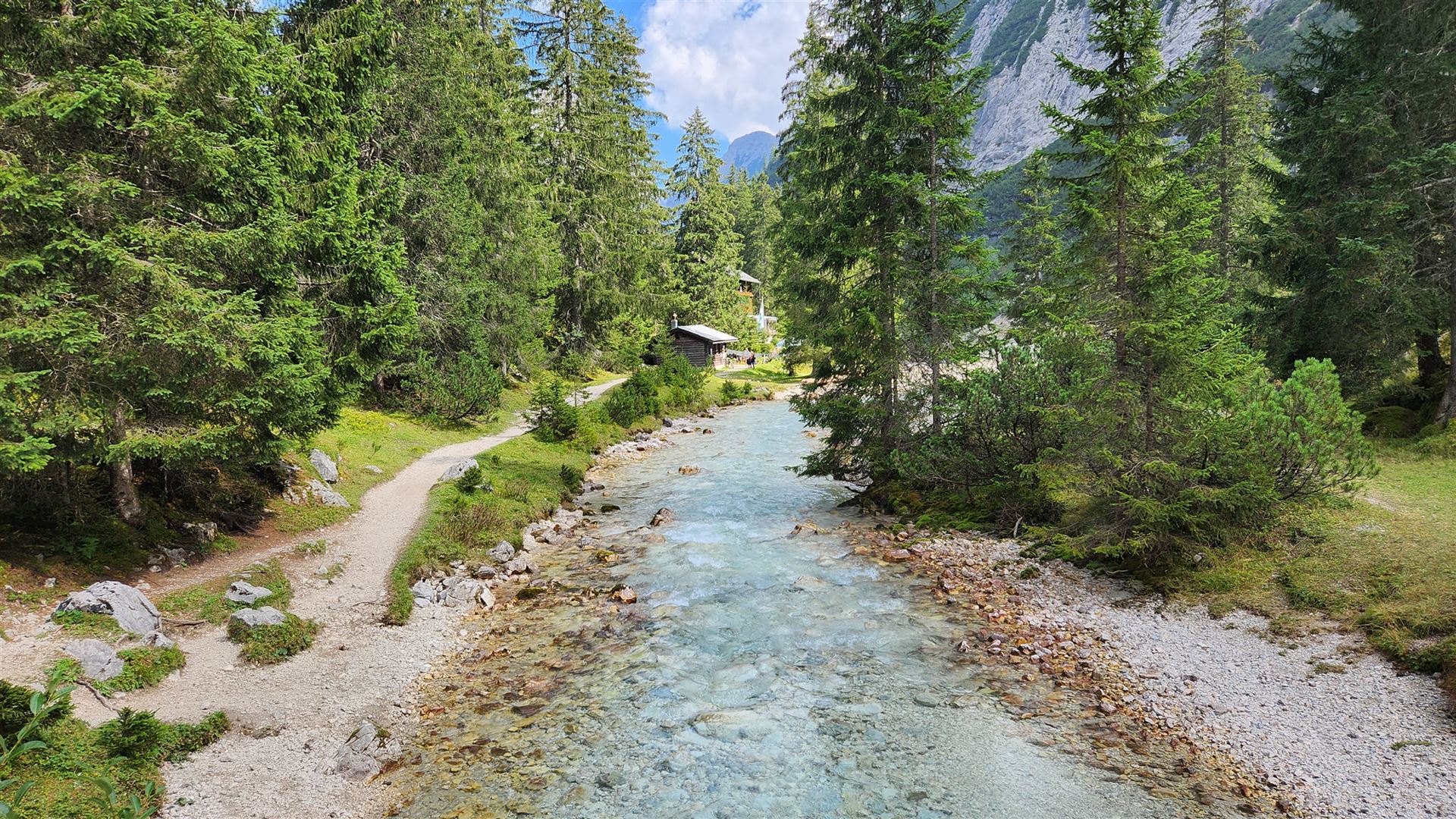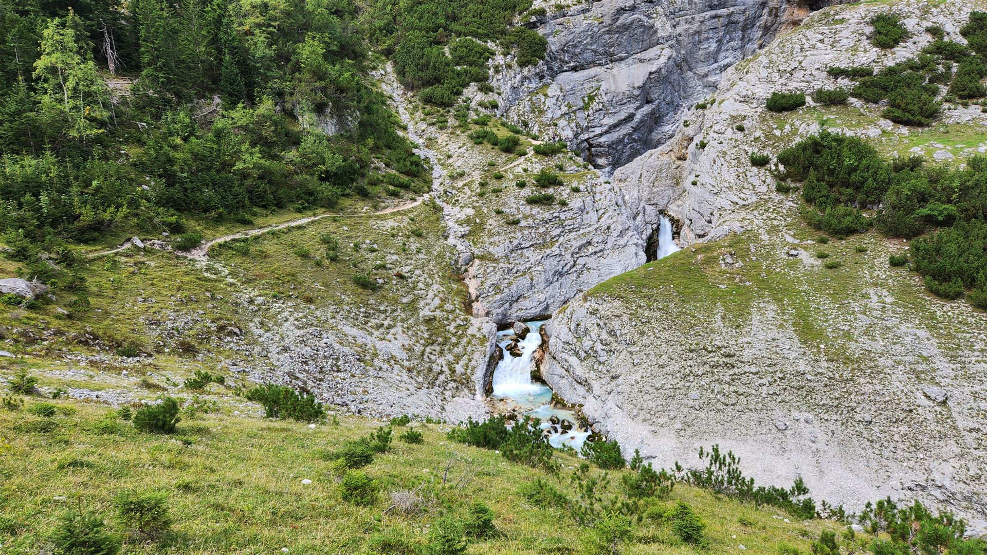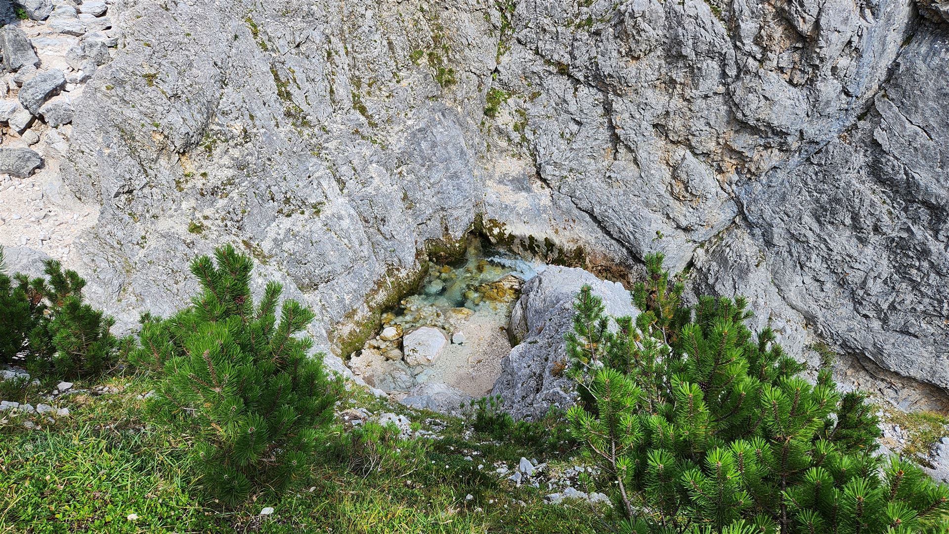 Von der Reintalangerhütte sind es nur noch 15 Minuten zu Fuß zum Partnach-Ursprung. Es ist erstaunlich, welche Wassermassen dort aus dem Fels fließen.