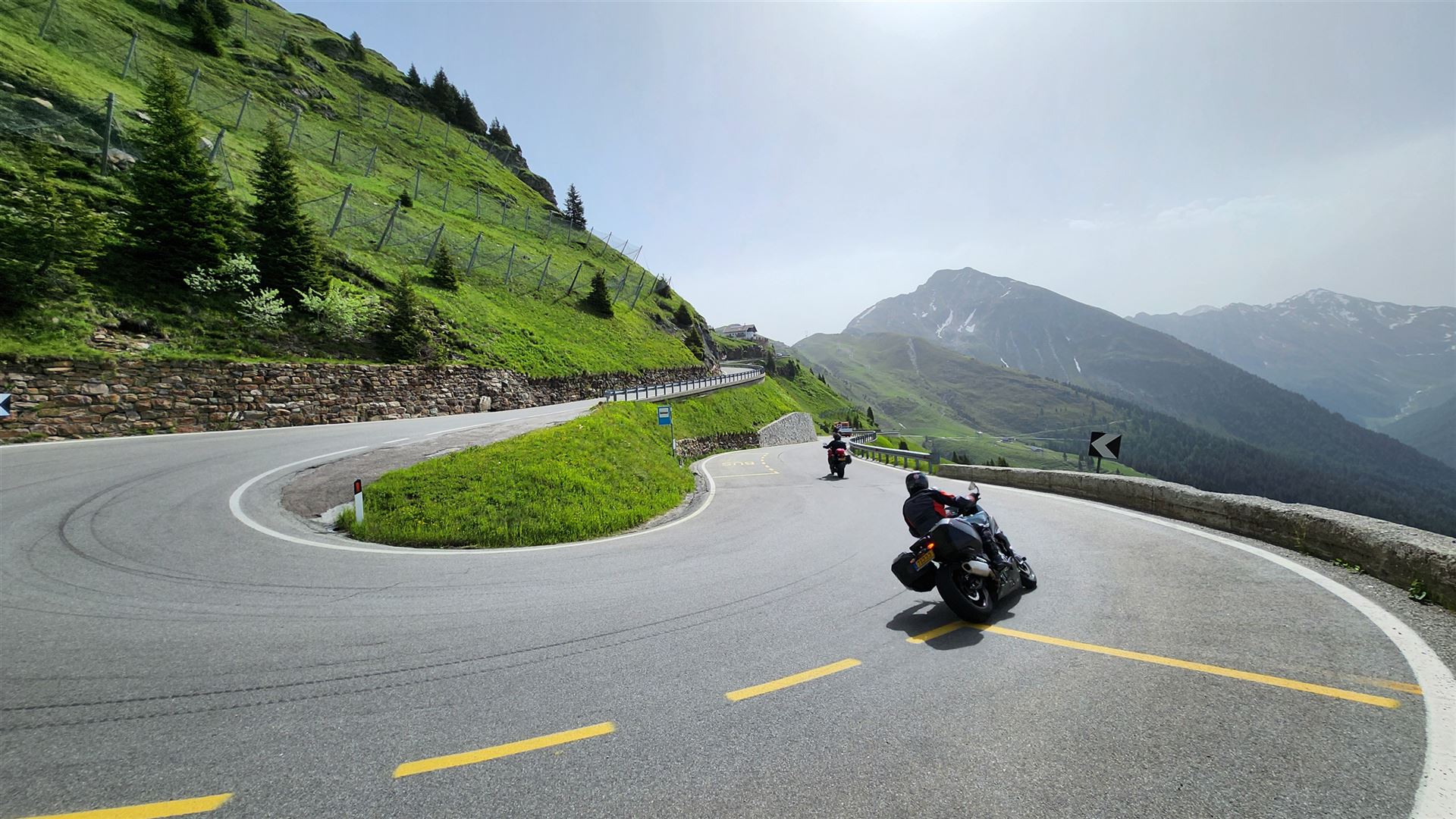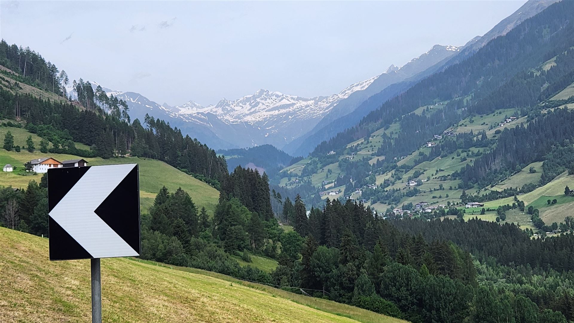 Nach dem Frühstück fuhr ich die kurze Strecke hinunter zur Römerkehre an der Jaufenpass-Straße und dann die lange Abfahrt nach St. Leonhard in Passeier. Sage und schreibe 17 Kilometer ging es bergab.