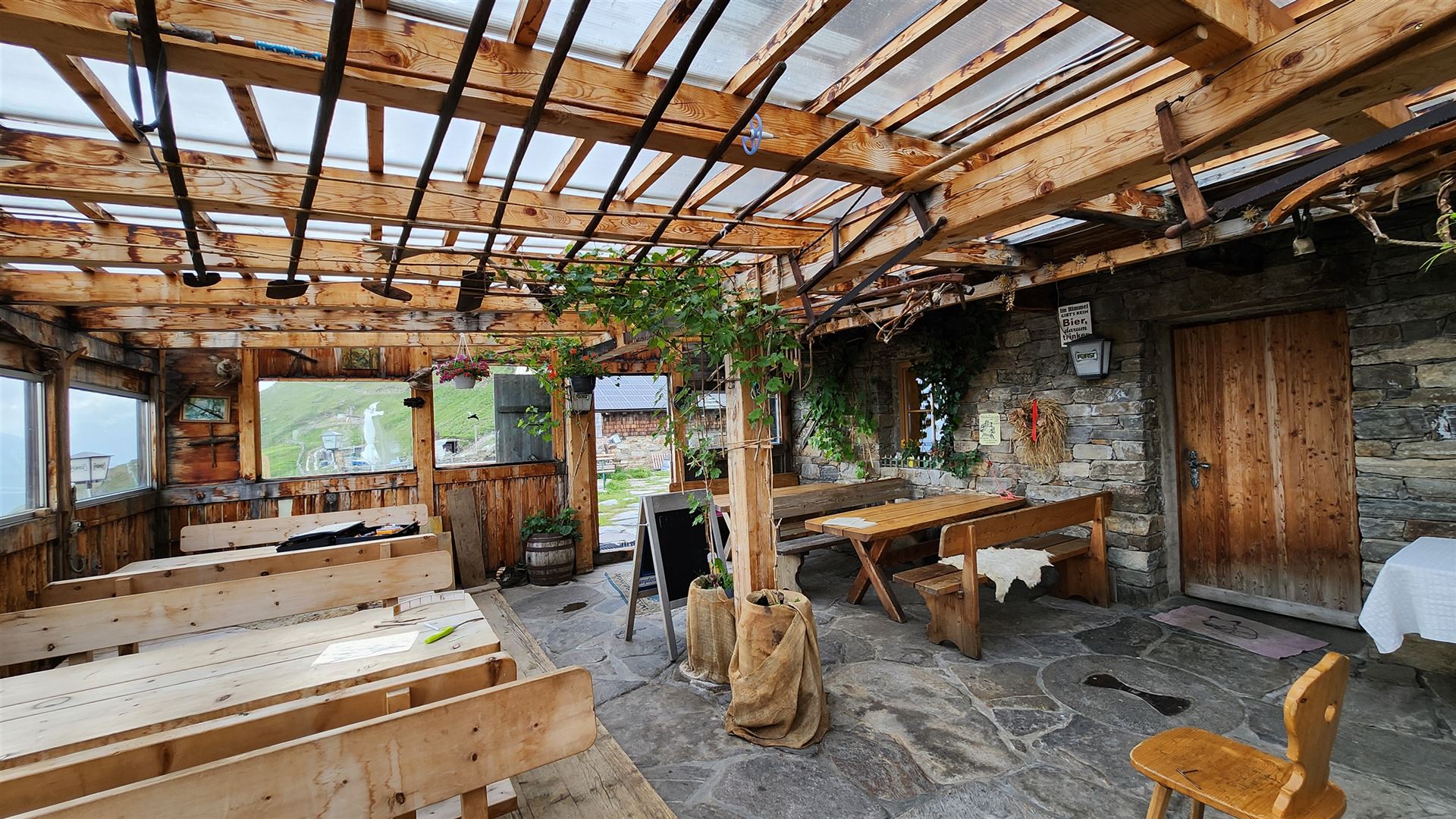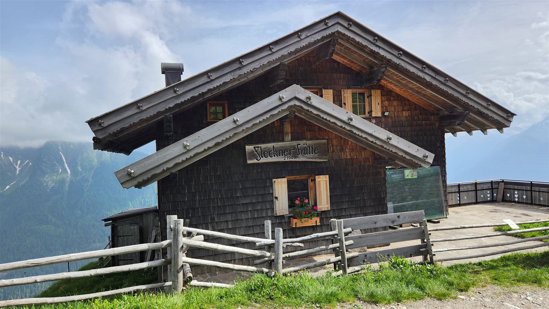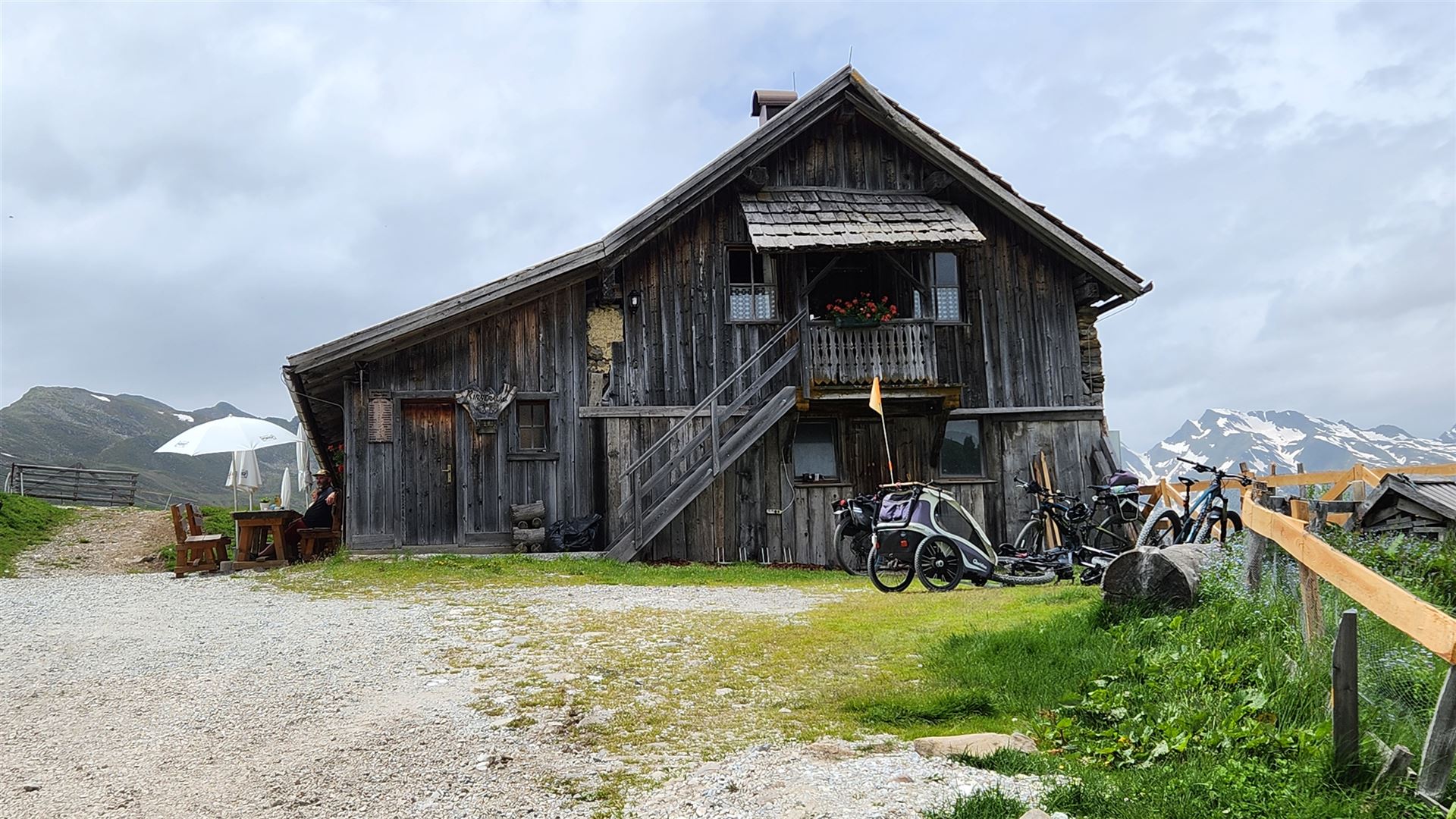 Die Fleckner-Hütte ist wunderschön, besonders die von Roland und seinem Sohn Ivan urig gestaltete Laube, wo ich mir leckere Hüttenmakkaroni gönnte. Und so fand dieser Tag einen wunderbaren Abschluss. Was gibt es Schöneres, als auf einer Berghütte zu übernachten. Ich kann jedem, der über den Rinner Sattel fährt, nur empfehlen, auf der Fleckner-Hütte zu übernachten. Roland und Ivan sind sehr um ihre Gäste bemüht. Ich durfte mein Fahrrad über Nacht sogar in der Laube unterstellen.