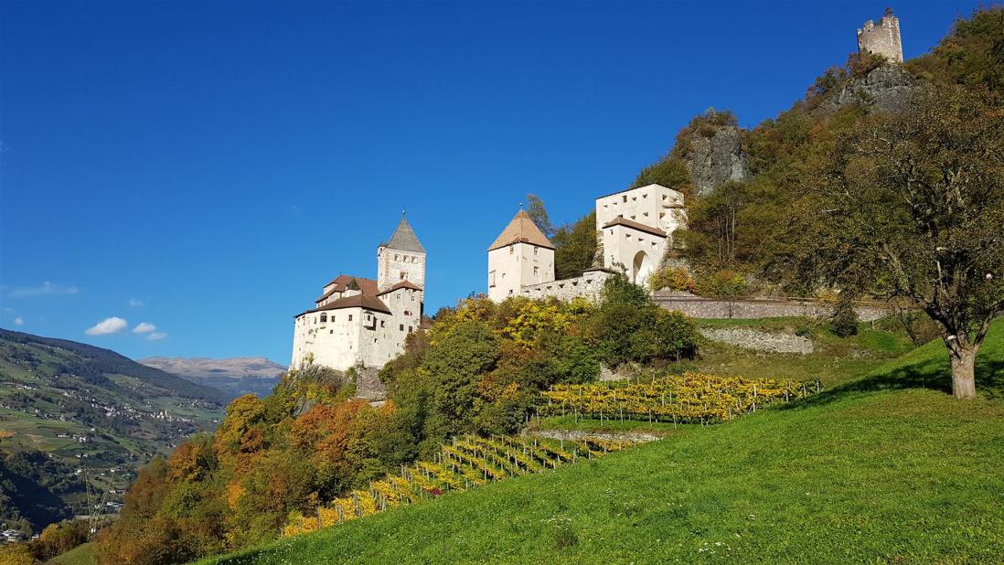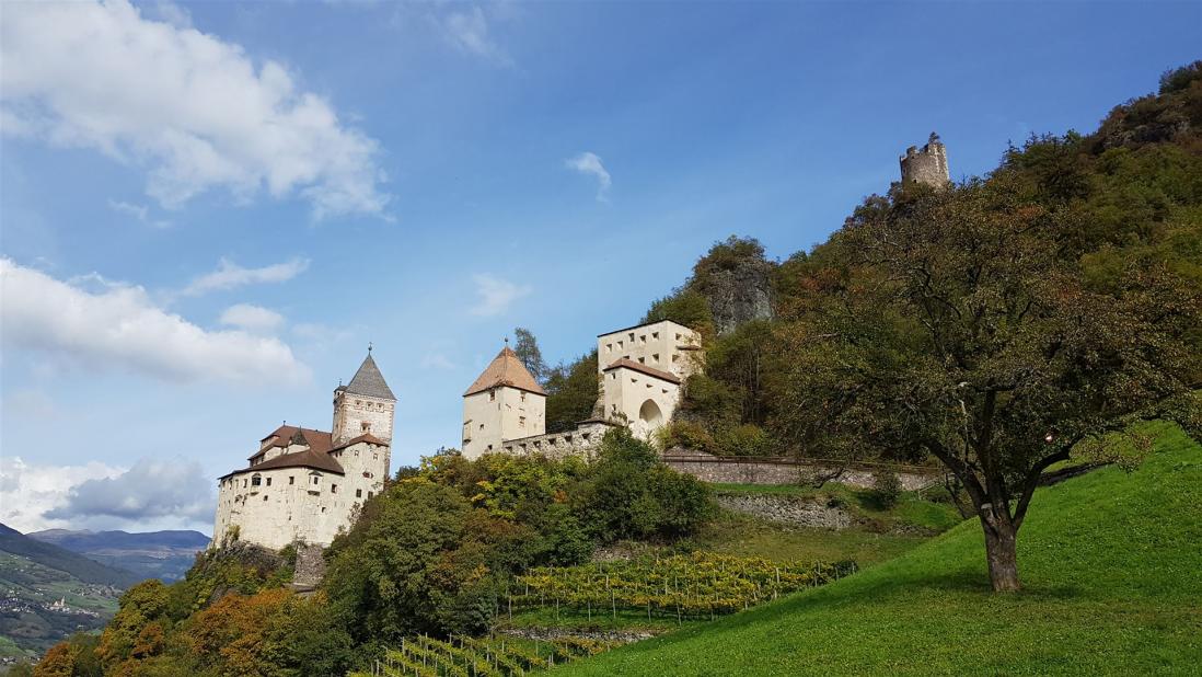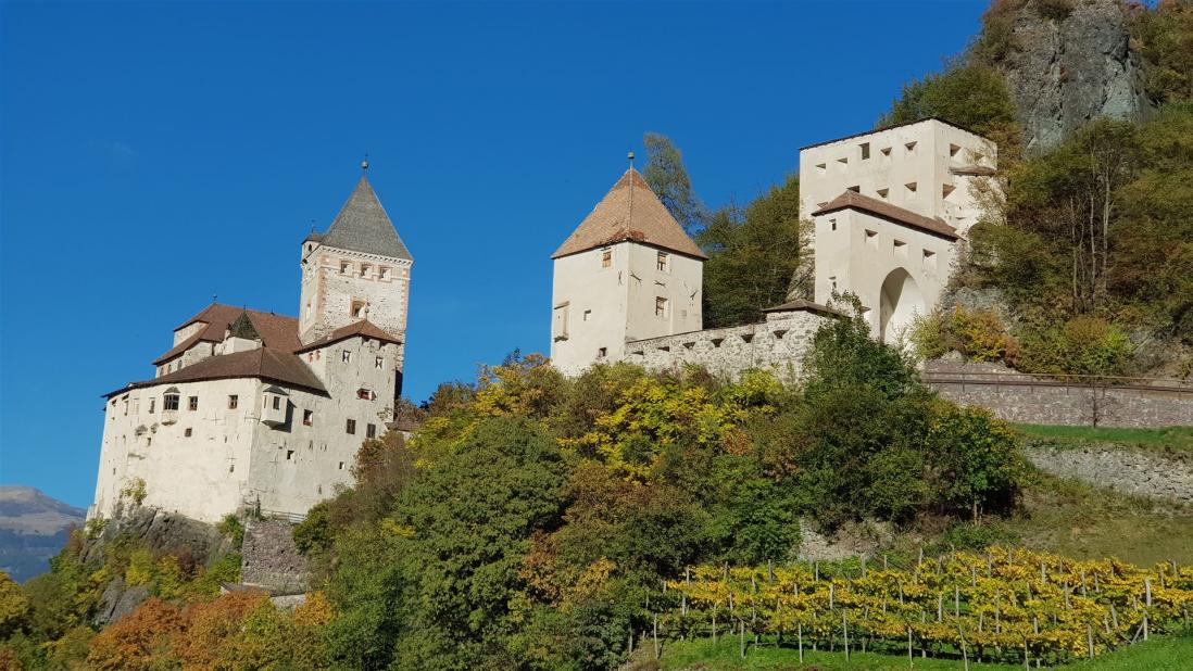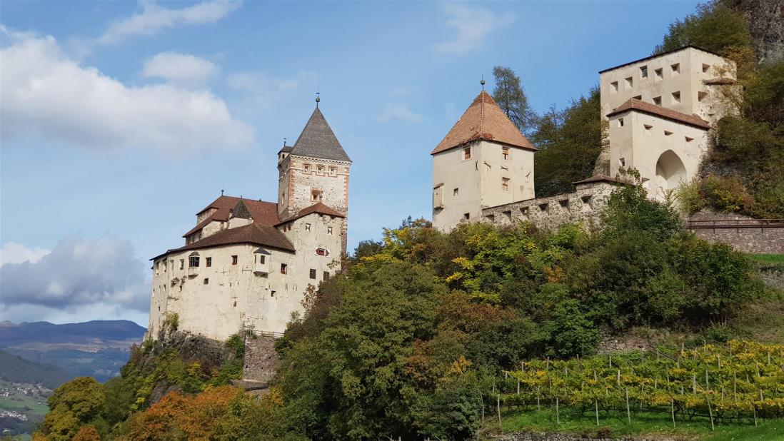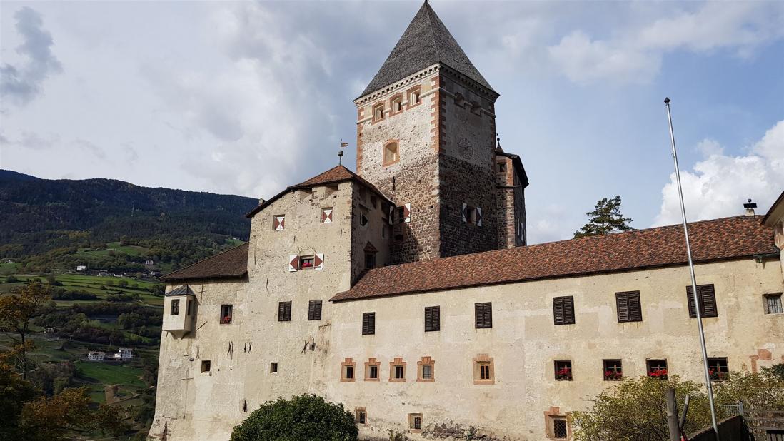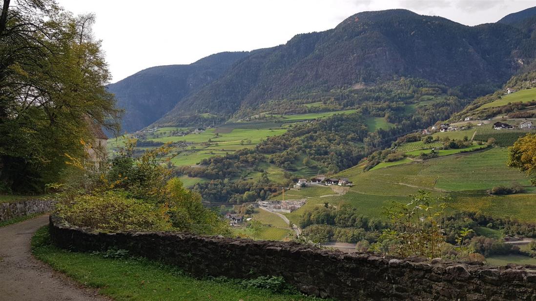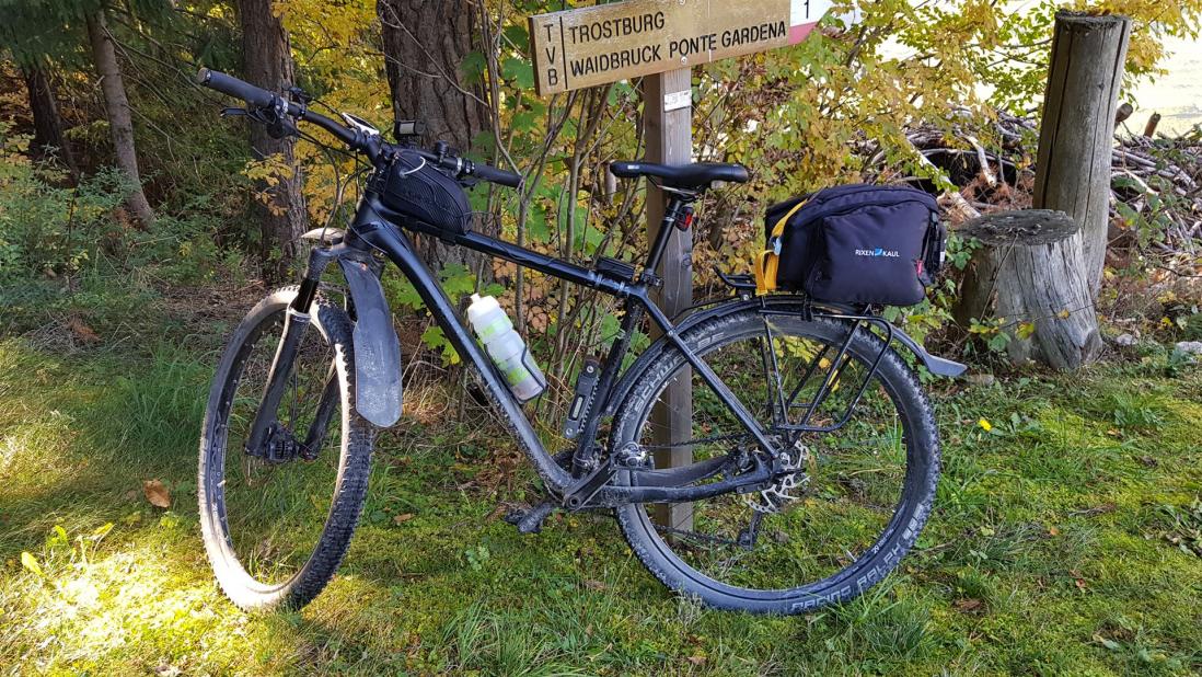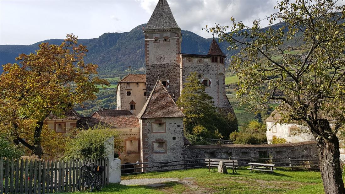 Direkt oberhalb von Waidbruck liegt die Trostburg. Da habe ich gleich mal kräftig hinaufgeschoben. Denn der steile Fußweg war unmöglich fahrbar. An der Trostburg habe ich dann den weiteren Weg gesehen, etwas recherchiert und danach die Entscheidung getroffen, die Straße von der Trostburg abzufahren, um auf der Straße nach Kastelruth zu fahren. Das war eine gute Entscheidung. Denn am letzten Tag bin ich von Kastelruth zur Trostburg abgefahren. Und sogar Downhill musste ich viel schieben, weil es einfach zu schwierig zum Fahren war. Bergauf wäre es eine Tortur gewesen.