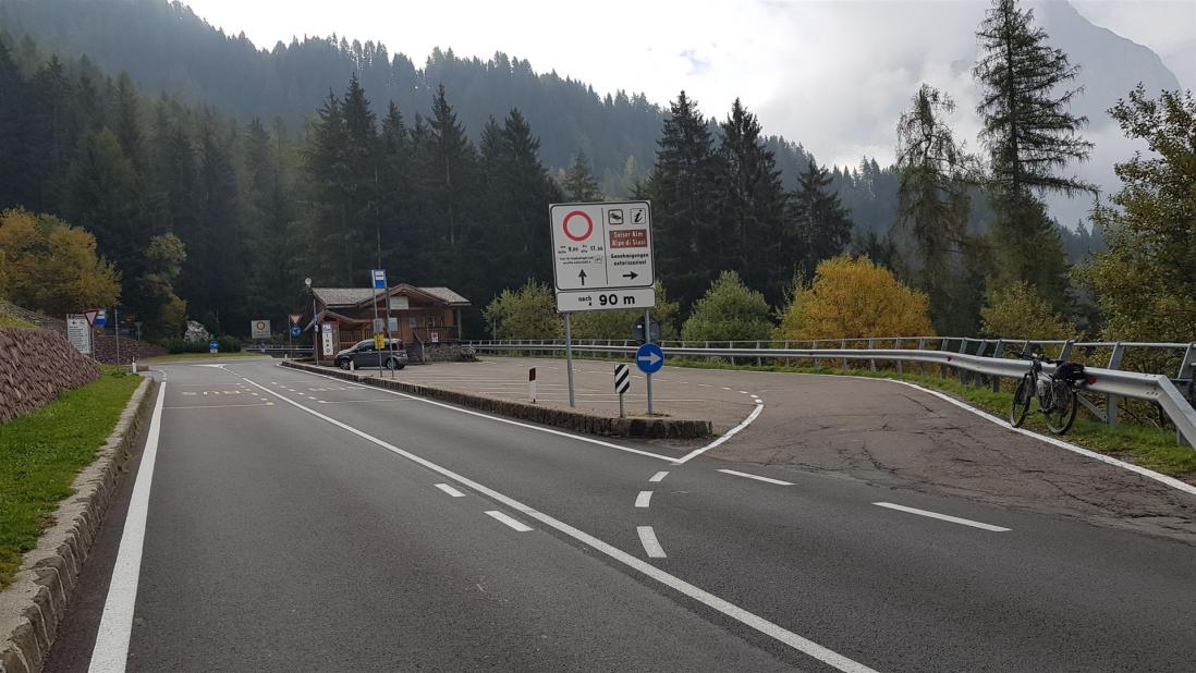 Nach dem Frühstück in einer Bar in Campitello di Fassa fuhr ich den Radweg durchs Fassatal bis Moena. Der Radweg ist dort gut ausgebaut. Es hatte jedoch Nachtfrost und im Schatten war es ziemlich kalt. Ich war froh, als die Berge endlich die Sonne nicht mehr verdeckten.
