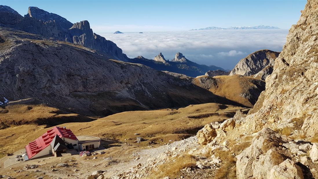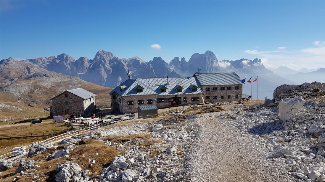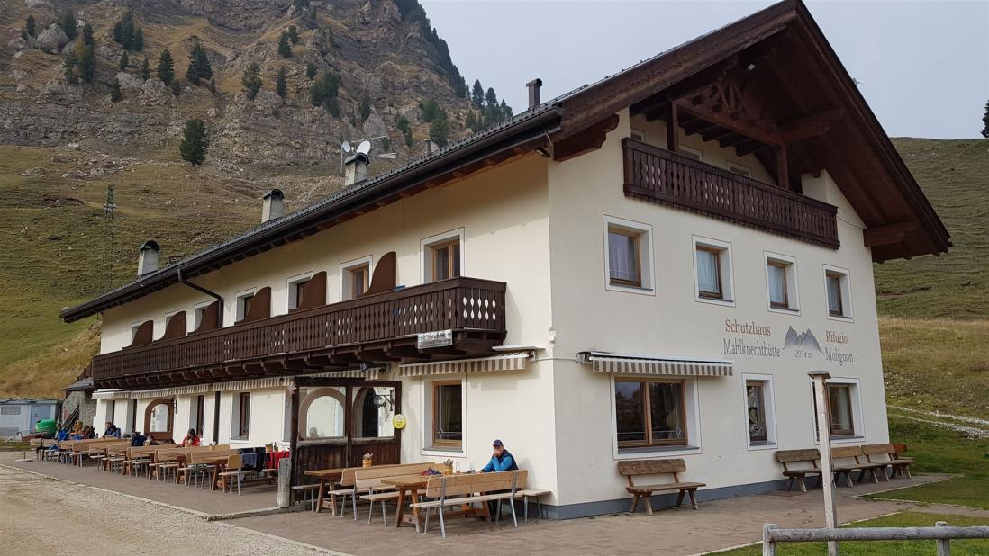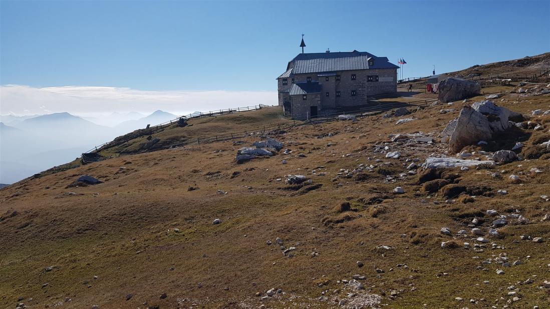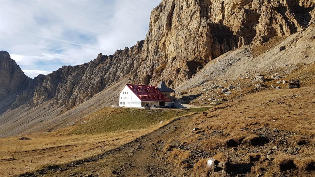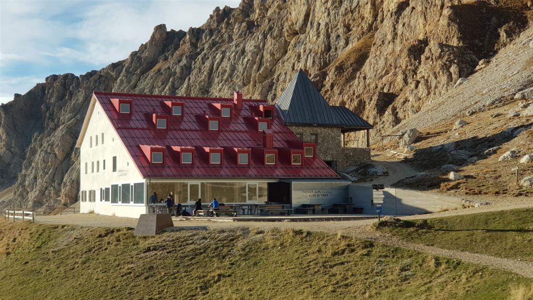 Die Tierser Alpl Hütte liegt auf 2440 m Höhe an der Grenze zum Trentino, gerade noch in Südtirol.