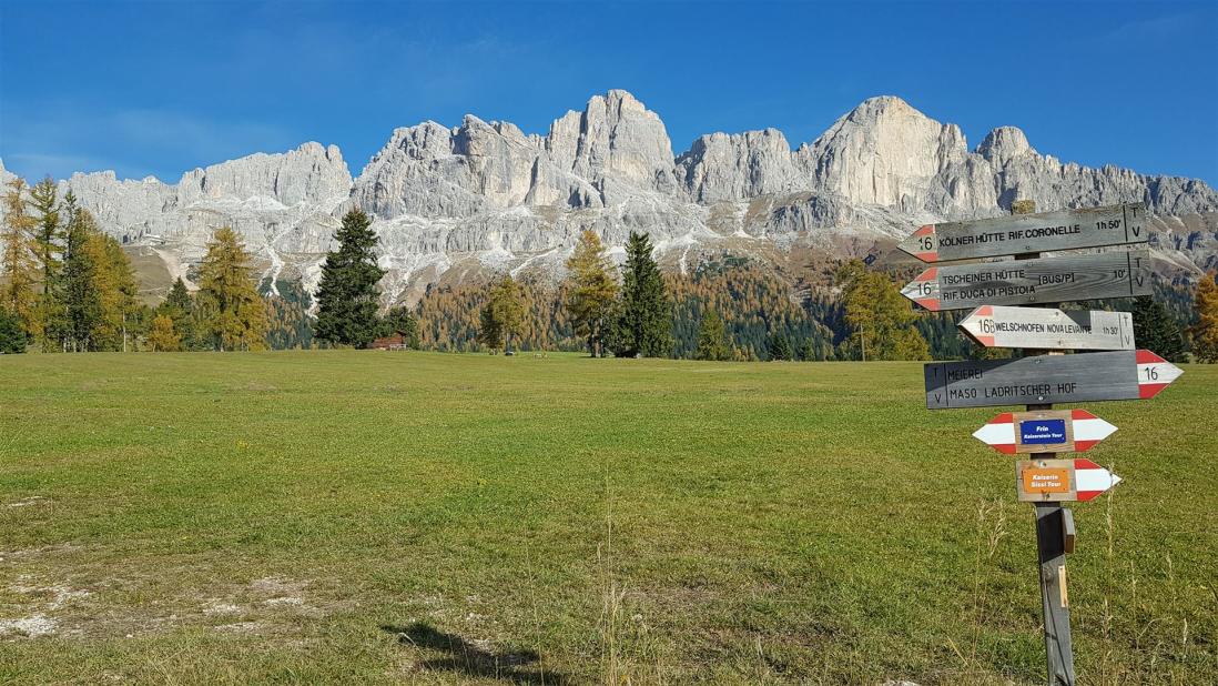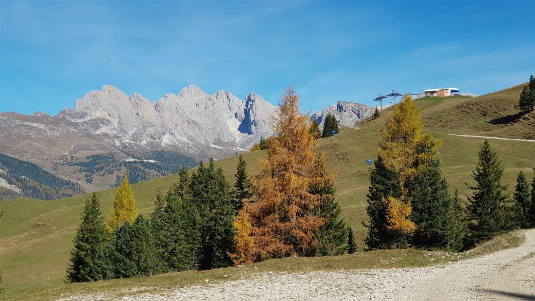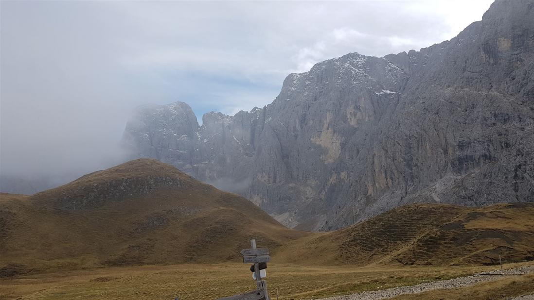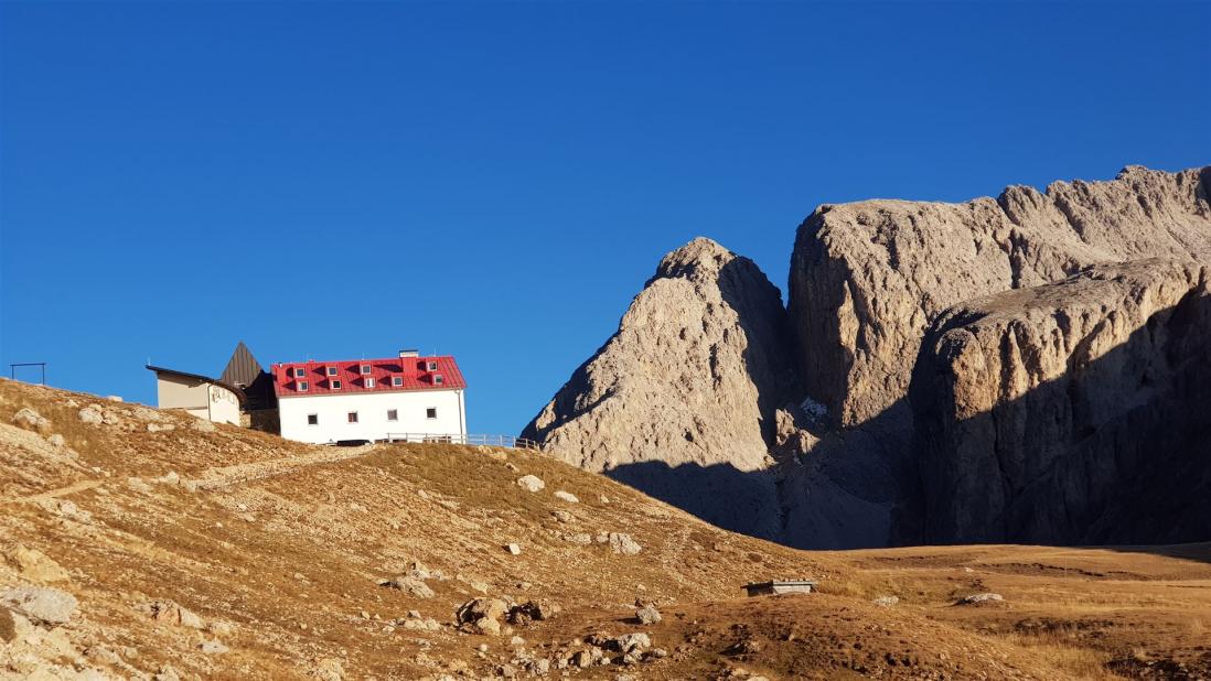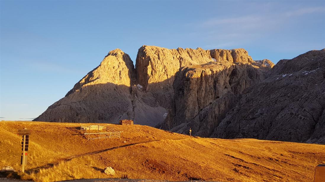 In Campitello im Fassatal hatte ich allerdings Glück, dass ich eine Unterkunft gefunden habe. Die Hotels hatten im Oktober die Rolläden bereits heruntergelassen und gerade eine einzige Pizzeria hatte noch geöffnet. Ich habe in einer Bar gefragt und die Inhaberin von drei Zimmern hat sich erbarmt und mich mitgenommen. Viel Zeit blieb ja nicht. Die Sonne ging früh unter und dann wird es im Oktober schon recht kalt. Ohne Übernachtungsmöglichkeit hätte ich mir eine Notlösung einfallen lassen müssen. Nur hatte ich ja keinen Schlafsack dabei.