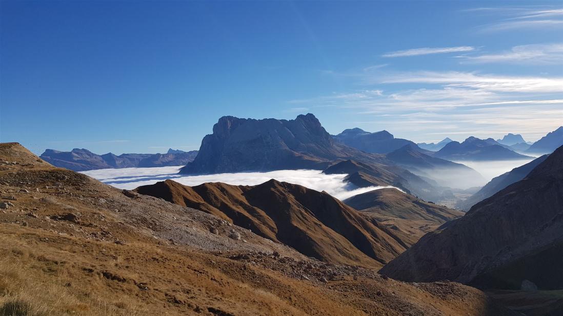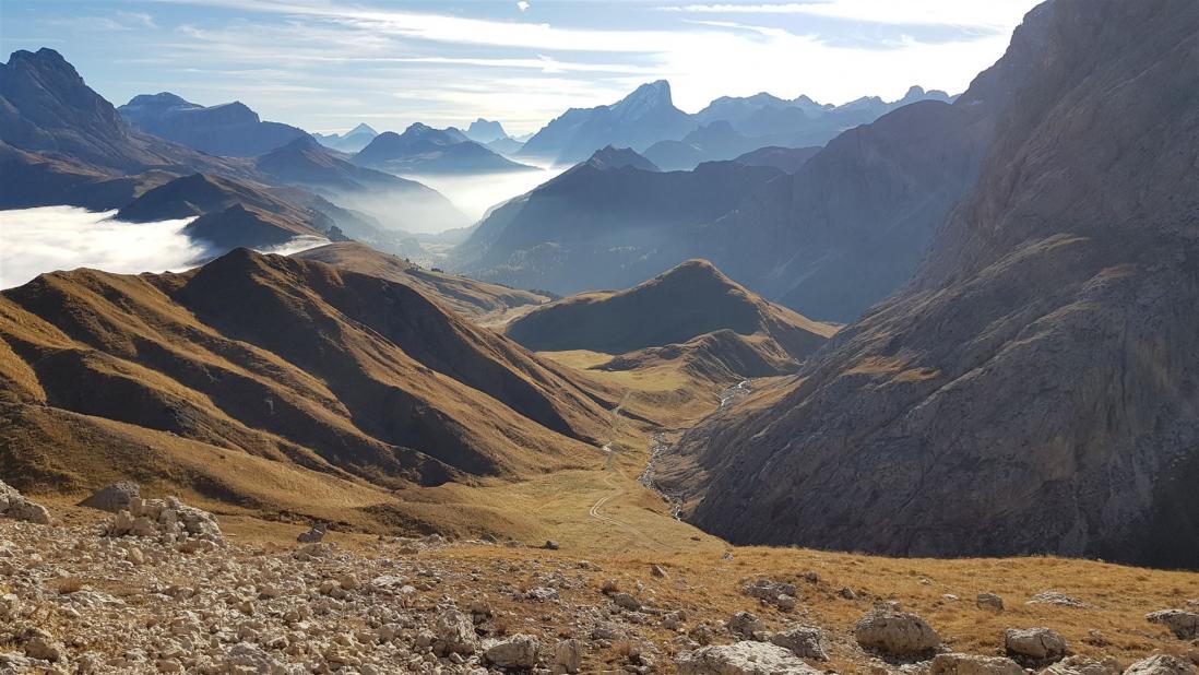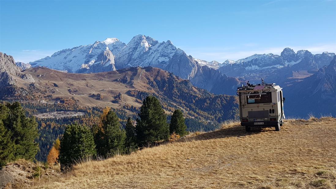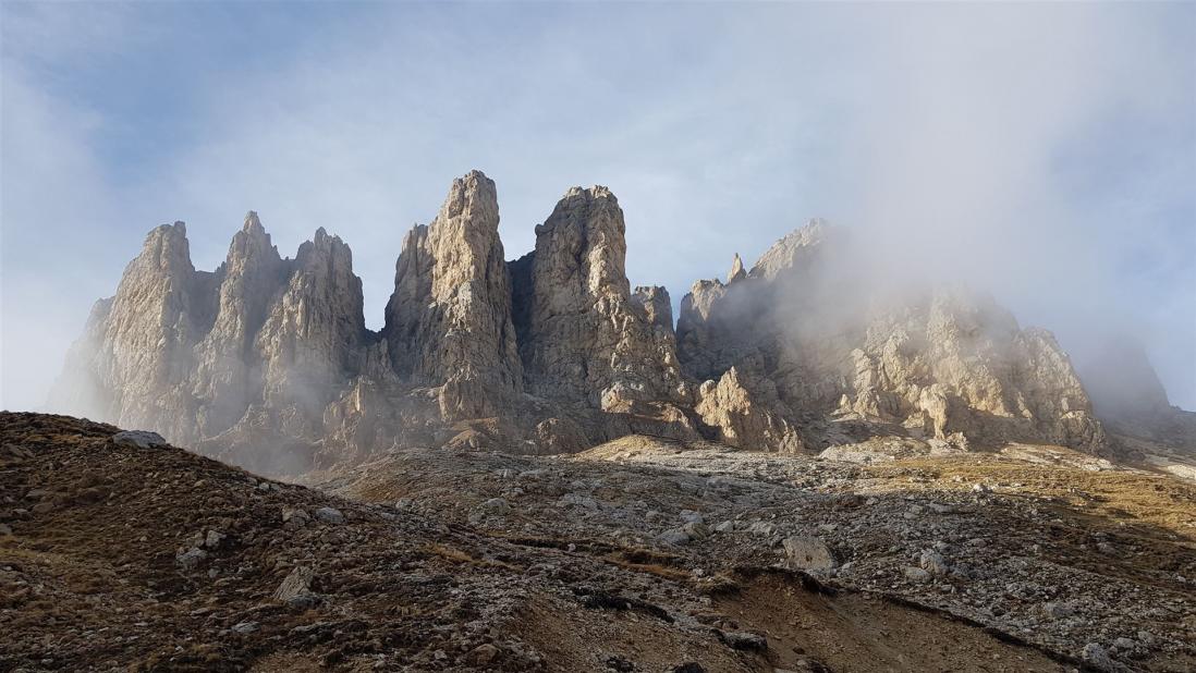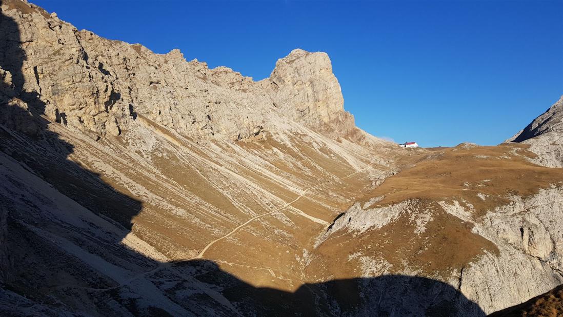 In Campitello im Fassatal hatte ich allerdings Glück, dass ich eine Unterkunft gefunden habe. Die Hotels hatten im Oktober die Rolläden bereits heruntergelassen und gerade eine einzige Pizzeria hatte noch geöffnet. Ich habe in einer Bar gefragt und die Inhaberin von drei Zimmern hat sich erbarmt und mich mitgenommen. Viel Zeit blieb ja nicht. Die Sonne ging früh unter und dann wird es im Oktober schon recht kalt. Ohne Übernachtungsmöglichkeit hätte ich mir eine Notlösung einfallen lassen müssen. Nur hatte ich ja keinen Schlafsack dabei.