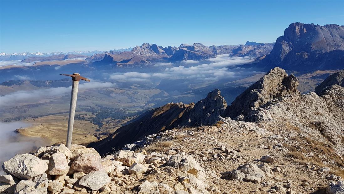 Heute war Wandertag angesagt: Auf der Tierser Alpl Hütte lieh ich mich ein Klettersteig-Set aus. Der Maximilian-Klettersteig beginnt gleich hinter der Hütte. Für den Klettersteig benötigte ich die angesagten 3,5 Stunden. Der 360-Grad-Rundumblick auf den Zwischengipfeln Großer Rosszahn und Roterdspitze war sensationell. Danach wanderte ich weiter bis zum Schlernhaus und von dort noch wenige Minuten auf den Monte Pez. Der Rückweg führte vorbei an der Roterdspitze und unterhalb des Klettersteigs auf dem Wanderweg zur Tierser Alpl Hütte.