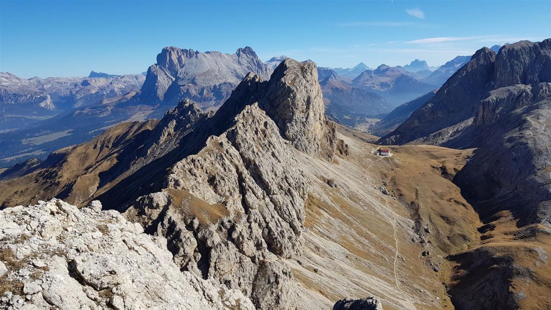 Tag 3: Tierser Alpl Hütte > Berghaus Zallinger > nach Norden rund um den Langkofel > Bergstation Monte Pana > Rifugio Emilio Comici > Steinerne Stadt > Sellajoch > Canazei > Campitello di Fassa