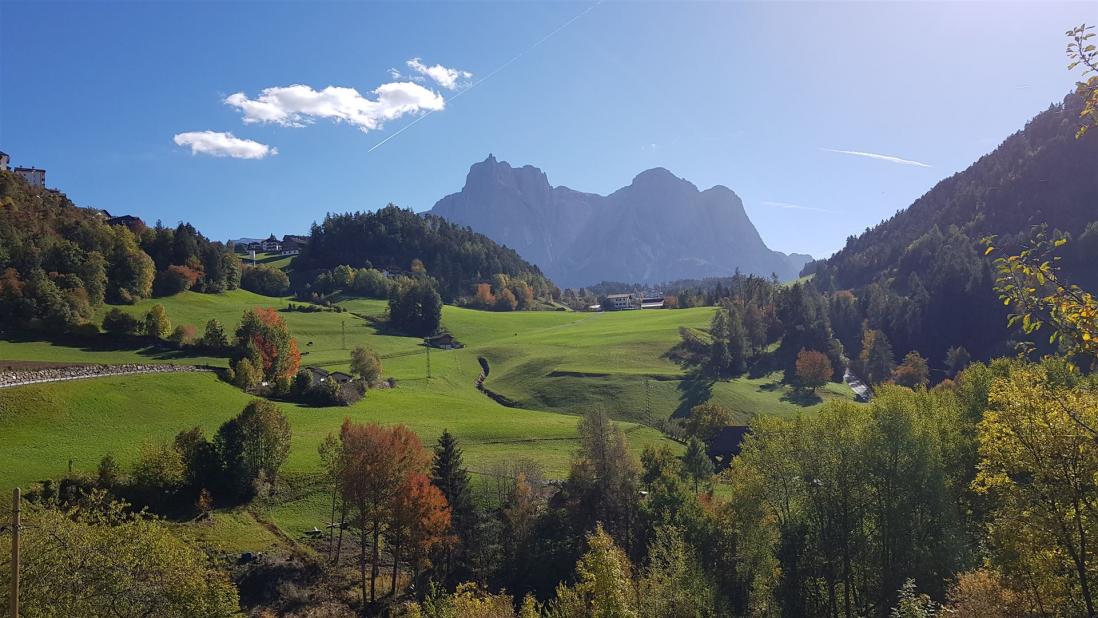 Bei der Ankunft in Kastelruth war es eh Nachmittag und nachdem ich ein Zimmer gefunden hatte, habe ich mich mit dem Rad noch etwas in der Umgebung umgeschaut. Der Blick auf den Schlern und die Spitzen des Santner steigerte die Vorfreude auf die nächsten Tage.