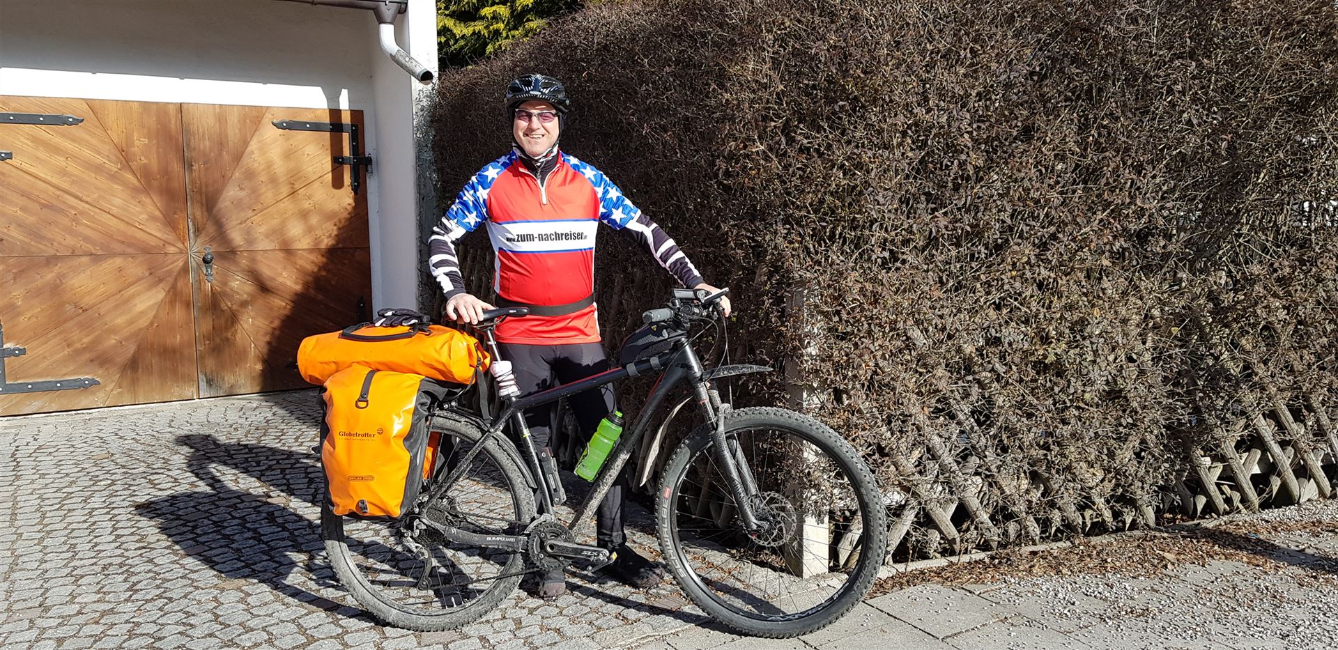 In Bad Tölz fuhr ich hinauf zum Kalvarienberg und dann weiter zum Bibisee bei Königsdorf. Auf dem Rückweg hatte ich einen schönen Blick über die bereits grünen Wiesen bis zur Zugspitze. Über Bad Heilbrunn, das Kloster Benediktbeuern und das Loisachtal fuhr ich zurück nach Garmisch-Partenkirchen. Insgesamt waren es an diesem Tag 105 km. Die 13 kg schweren Satteltaschen mit Zelt sorgten dafür, dass der Heimweg ganz schön in die Knochen ging.