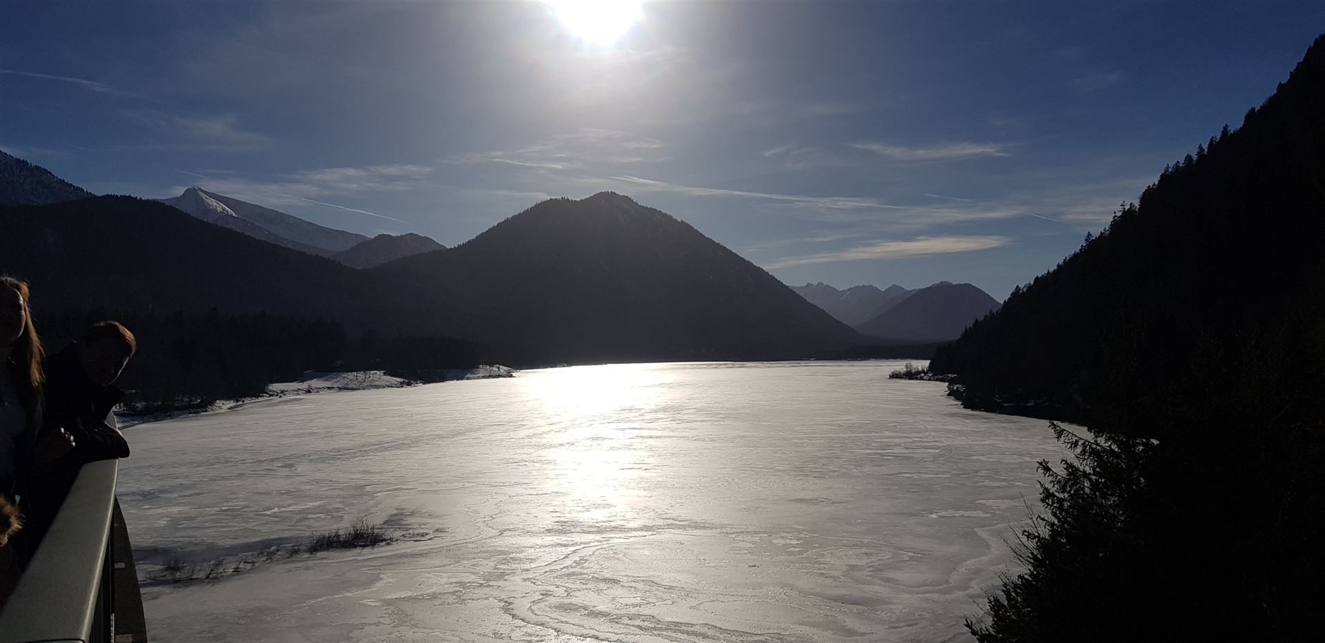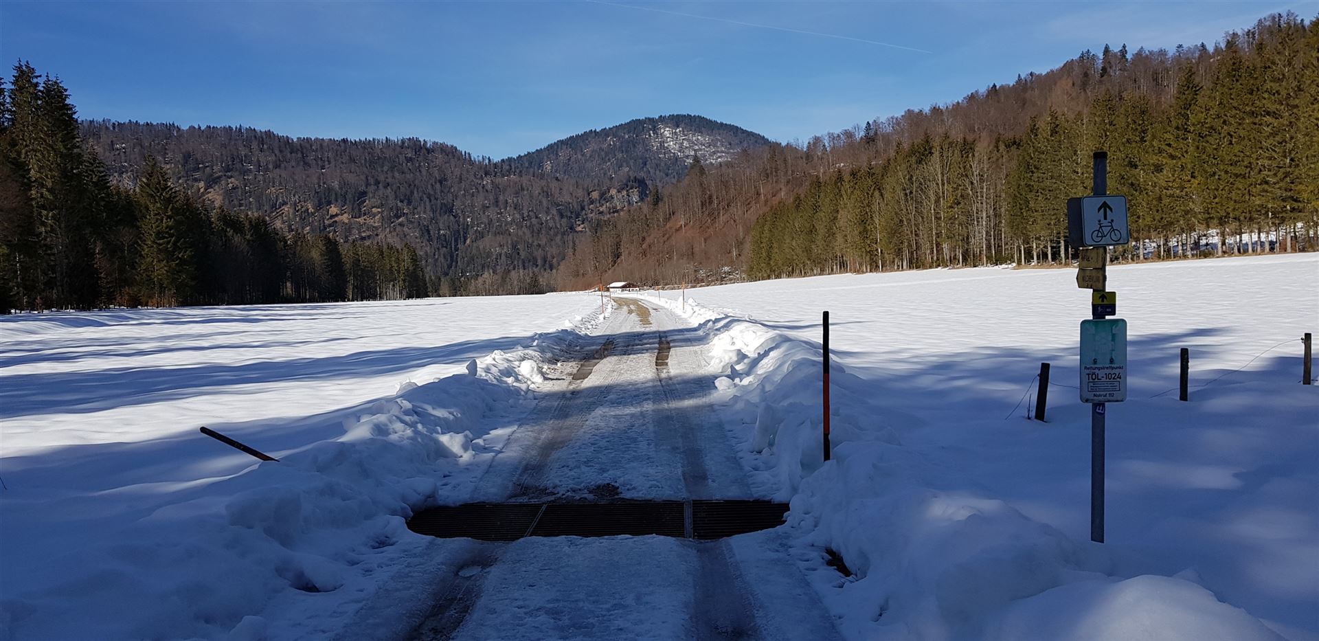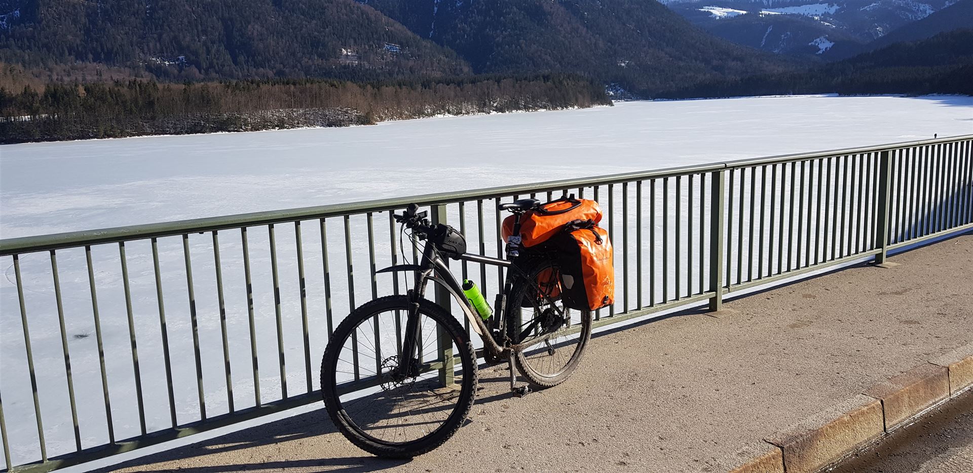 Am Sylvensteinspeicher habe ich versucht, bei Fall rechts um den See herum zu fahren. Kurz bevor ich die B307 erreichen konnte, blieb ich jedoch im hohen Schnee stecken und musste komplett um den See herum zurück zur Faller-Klamm-Brücke fahren, um dann auf der Nordseite des Sees die wenigen Kilometer bis zur Staumauer und weiter nach Lenggries zu fahren. Das hat viel Zeit gekostet. Im Video 1 ist der anstrengende Abstecher sehr schön nachvollziehbar. Aber es war auch sehenswert.