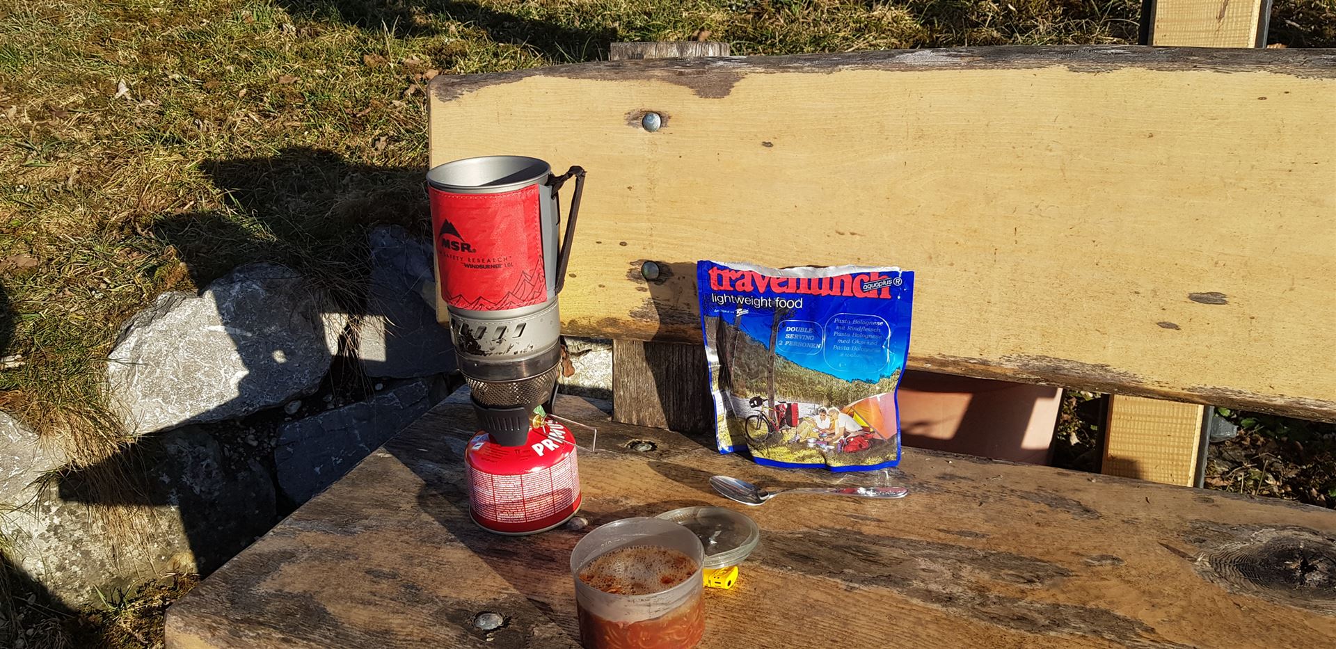 Vor Lenggries habe ich mir dann erst einmal eine warme Mahlzeit vom Gaskocher gegönnt. Pasta Bolognese aus der Tüte. Danach habe ich mir einen Übernachtungsplatz an der Isar gesucht. Gar nicht so einfach, einen geeigneten Platz zu finden. Ich wollte ja auch nicht auf dem Präsentierteller sein.
