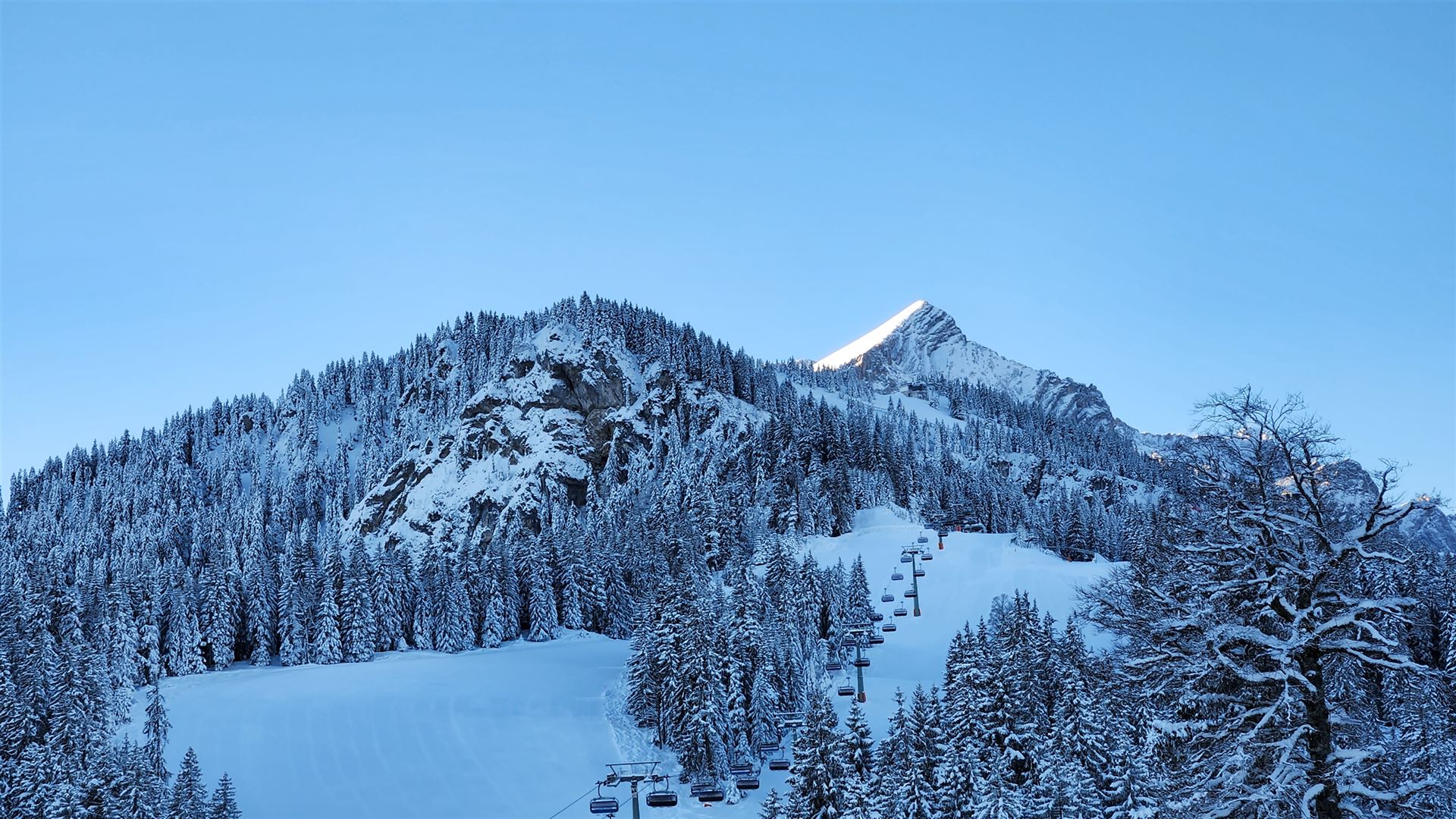 Im weiteren Verlauf führt die Aufstiegsroute entlang der Piste zur Tröglhütte und zum Tröglhang, durch den für Fußgänger und Skitourengeher ein Tunnel führt. Der darüberliegende Tröglhang wäre zum Queren auch viel zu steil. Hier stürzen sich beim Skiweltcup die Abfahrtsprofis auf der Kandahar-Strecke hinunter.