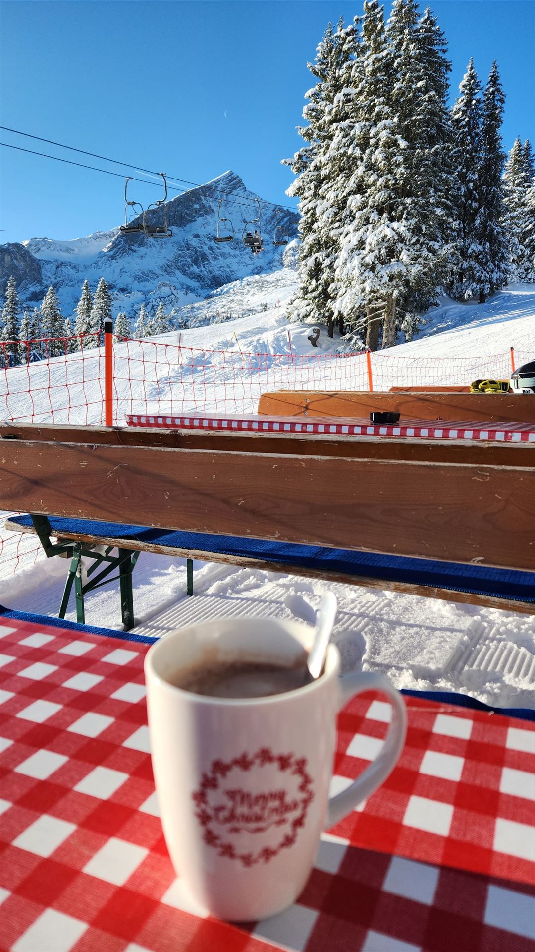Bis zum Hexenkessel unterhalb der Kreuzeck Bergstation ist es dann nicht mehr weit. An der Hexenkesselbar machte ich eine Pause und gönnte mir eine heiße Schokolade. Dort sitzt man sehr gemütlich und kann den Blick auf die Alpspitze genießen.