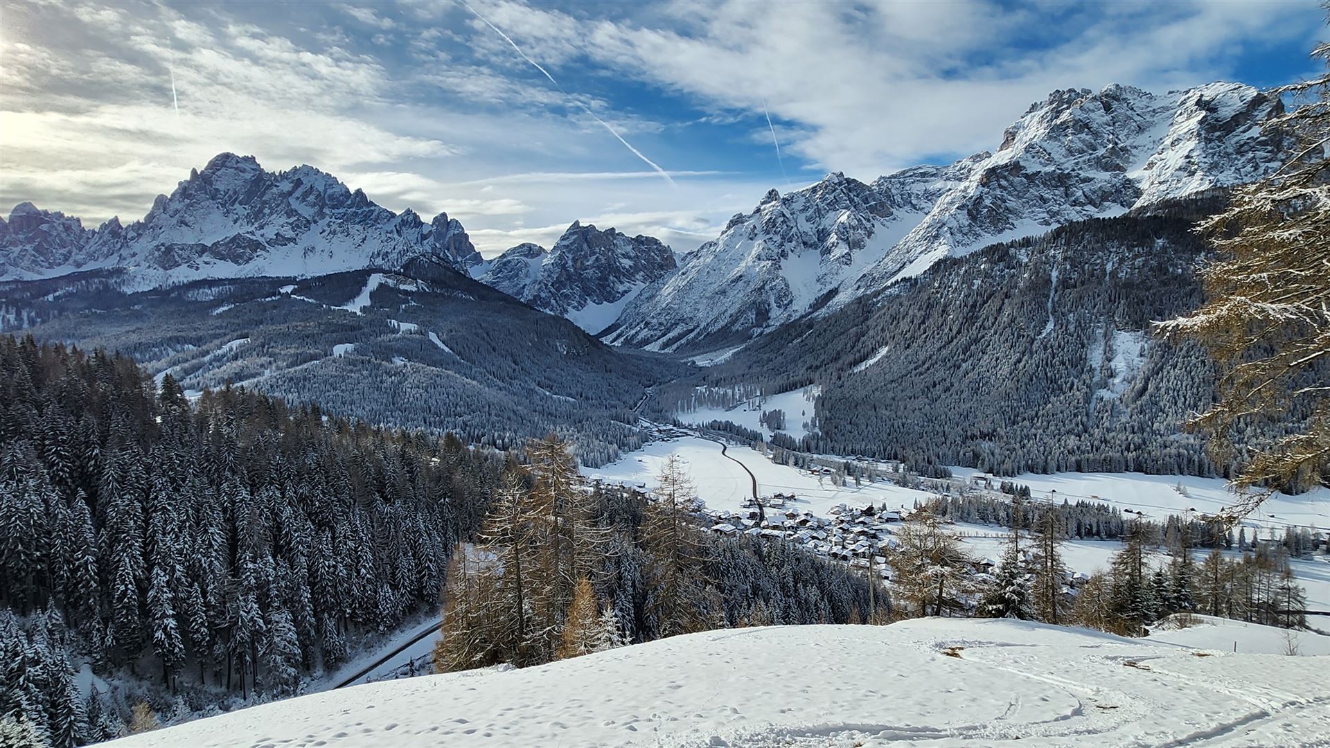 Schließlich fuhren wir die Piste hinunter nach Sexten. Jetzt lagen die Lärchenhütte und die Helmhanghütte auf dem Weg.