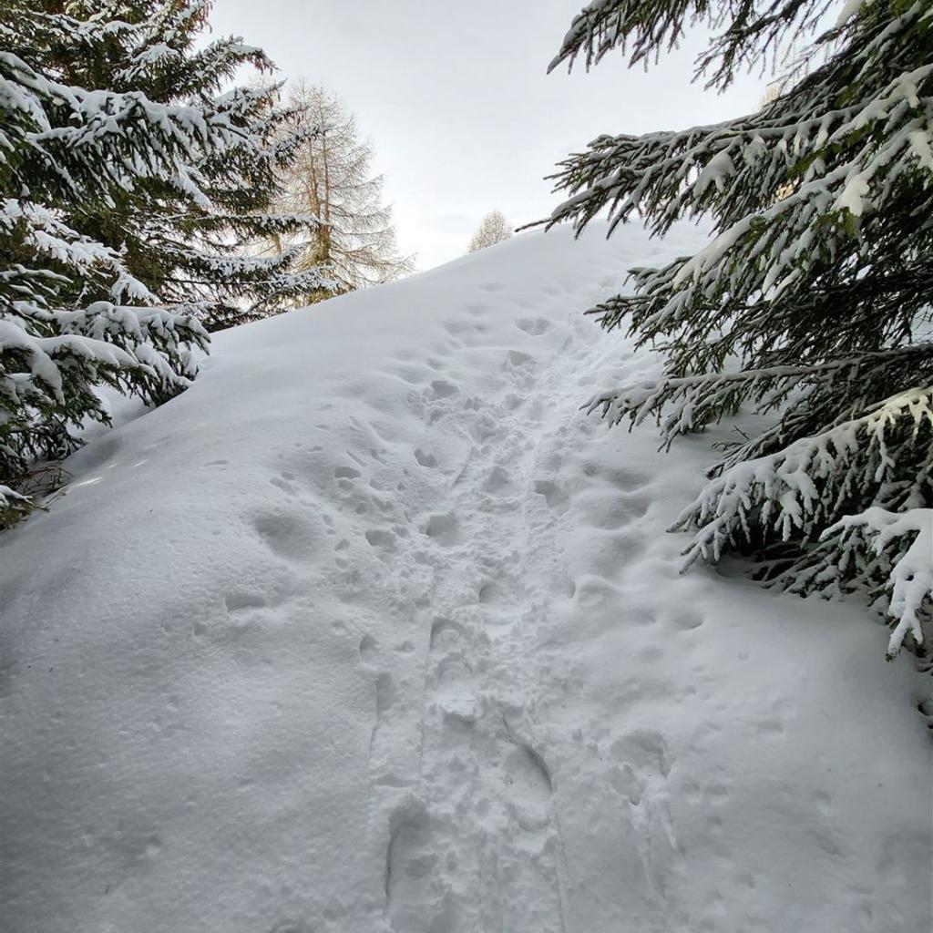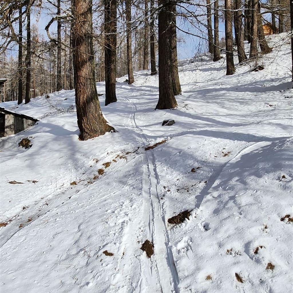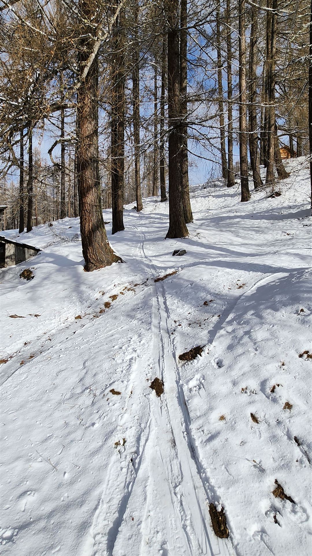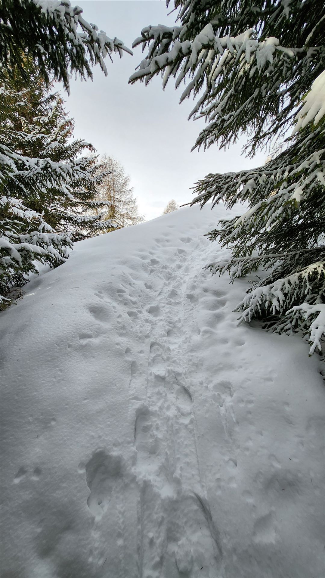 Im Skiverleih empfahl man mir, rechts von der Talstation entlang von Höfen durch den Wald aufzusteigen, Richtung Negerdorf (ja, so heißt das tatsächlich). Ich habe mir also einfach einen Weg gesucht.