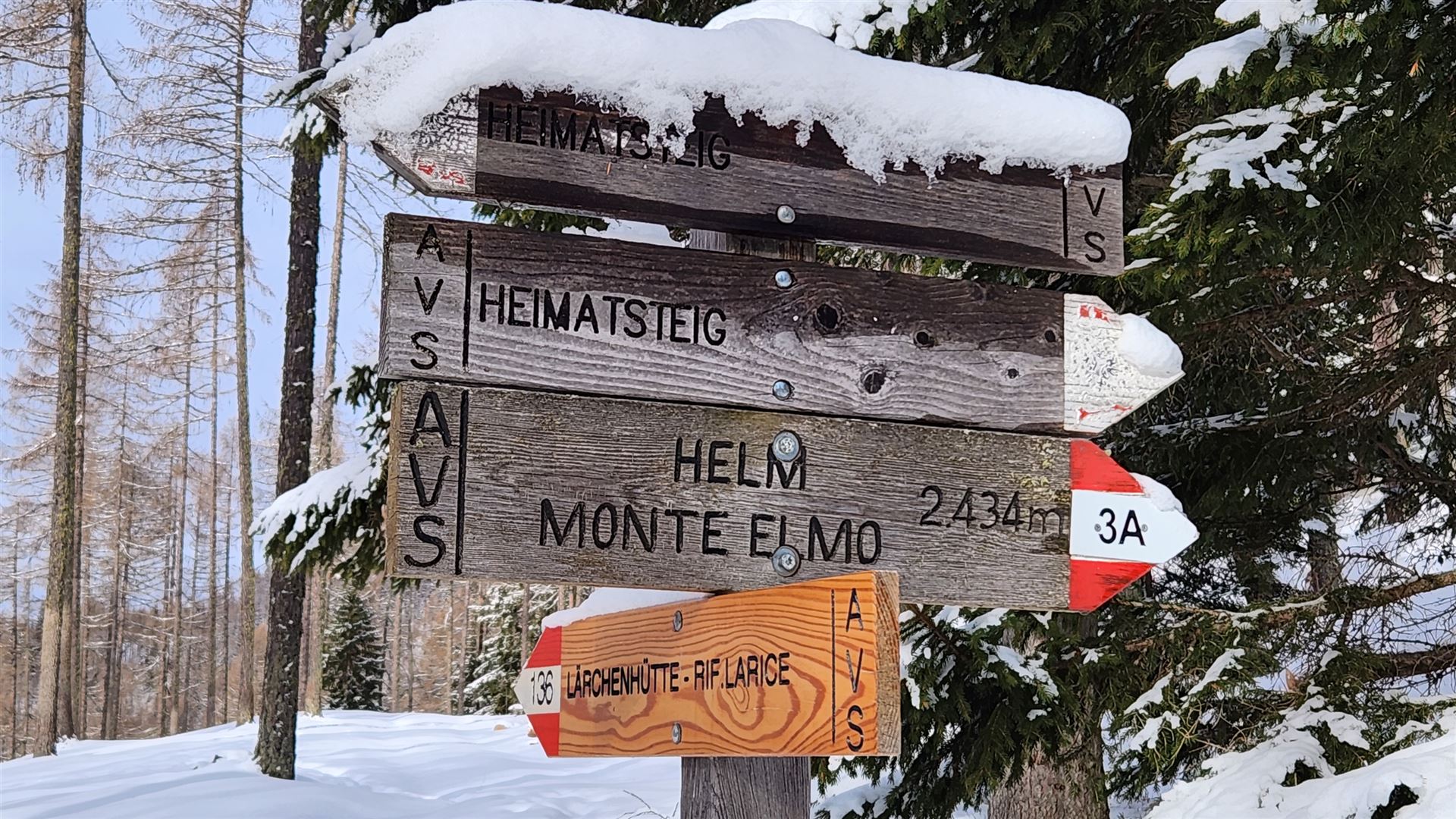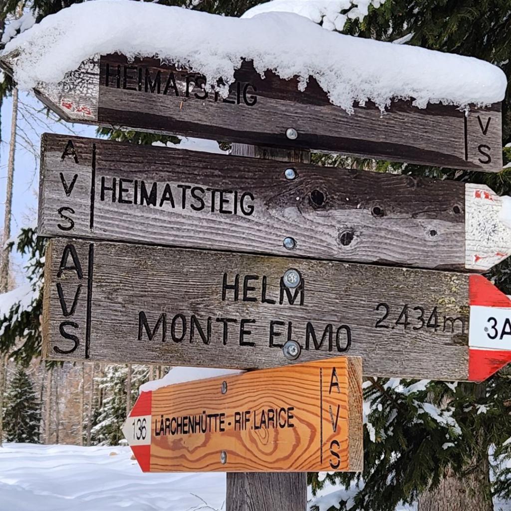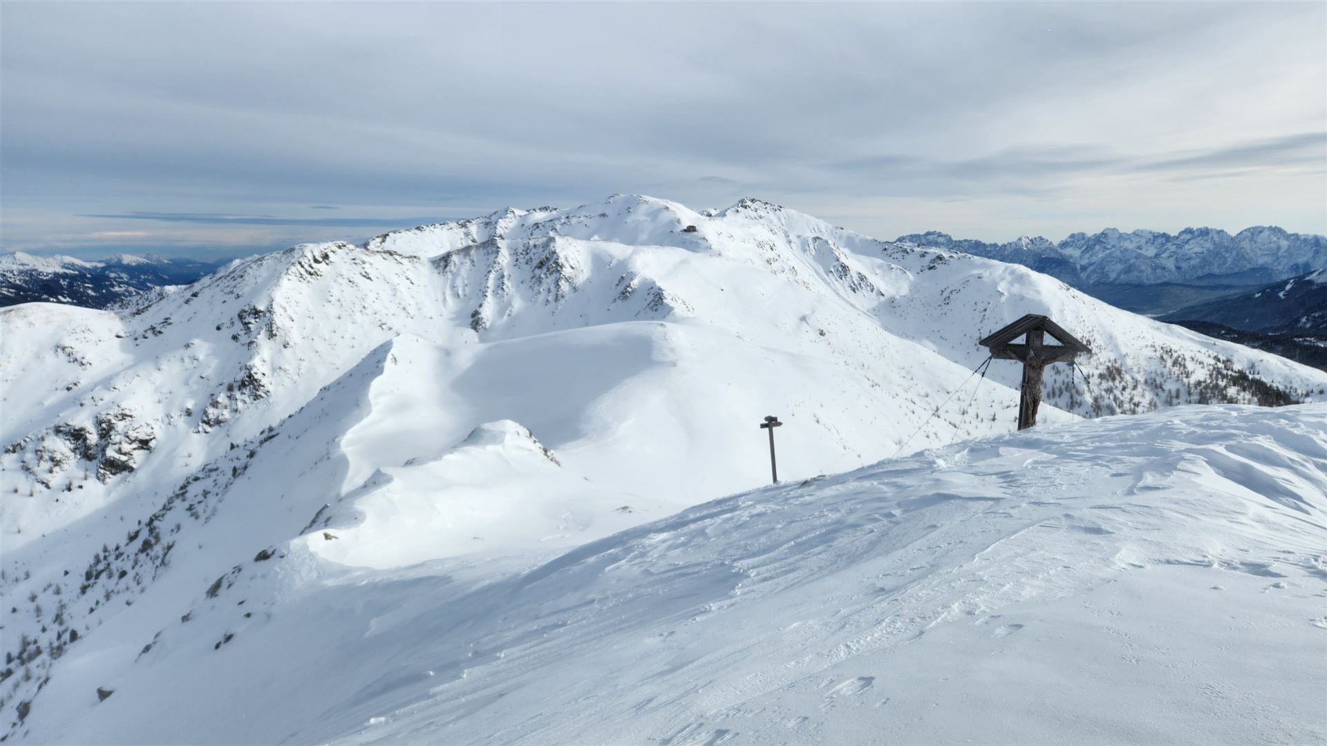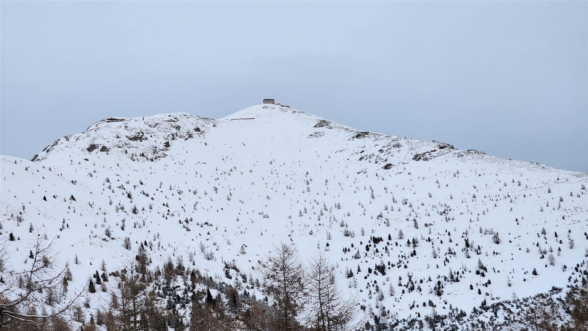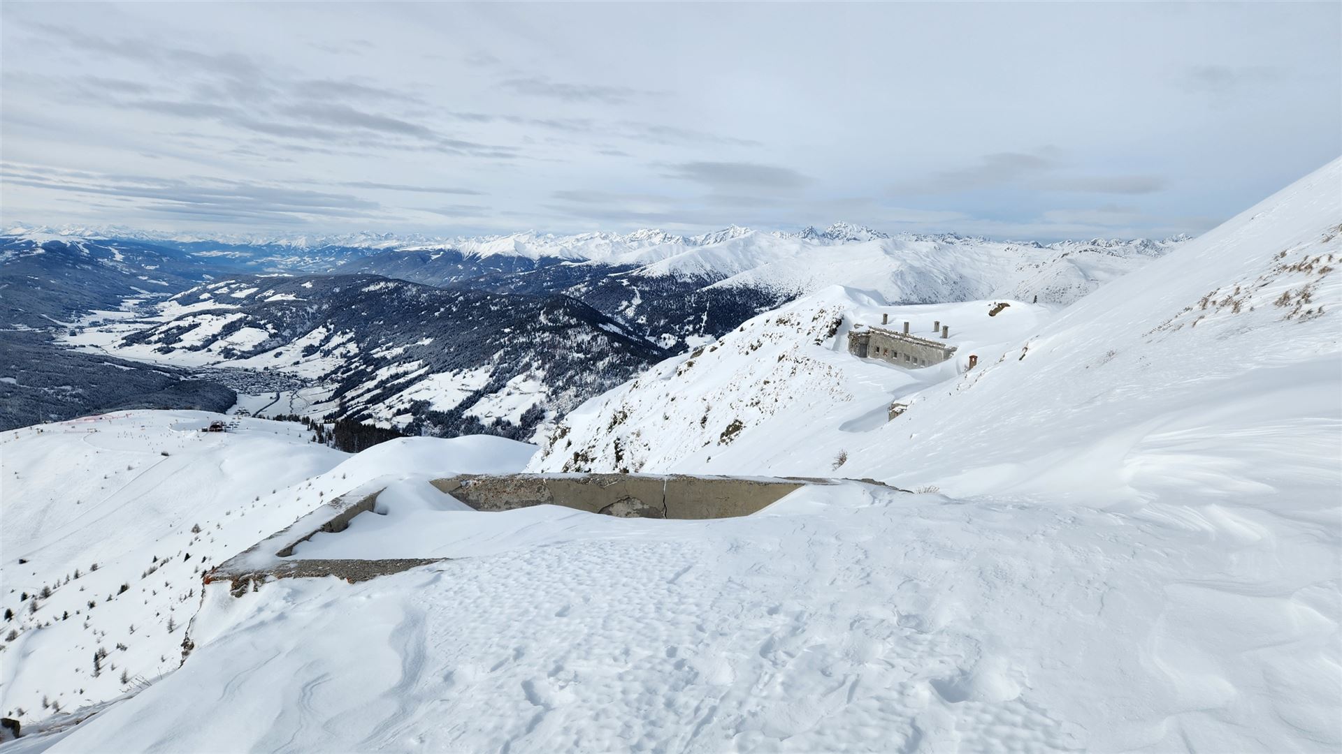 Der Gipfel des Monte Elmo liegt auf der Grenze zu Osttirol. Hier wütete der Gebirgskampf im 1. Weltkrieg. Unterhalb des Gipfels erinnert ein Militärbau daran.