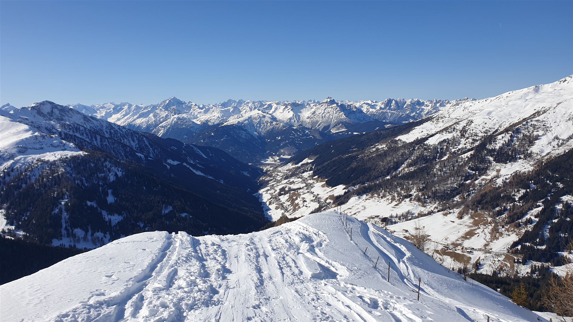 Während des Aufstiegs hat man ständig einen herrlichen Blick auf das Naviser Tal und dahinter die Stubaier Alpen mit dem Habicht und der Serles. Ab dem Gipfelgrad liegt im Süden das Schmirntal zu Füßen und dahinter der Olperer mit der Schoberspitz davor. Zur Linken ist ein Wegkreuz (am sog. Weirichegg) auszumachen. Vom Gipfel sind die Zillertaler Alpen gut zu überblicken.